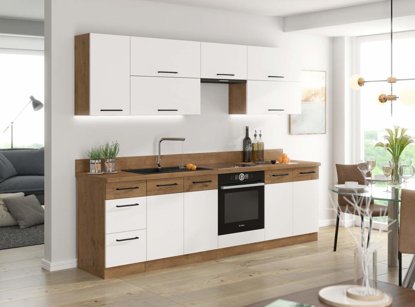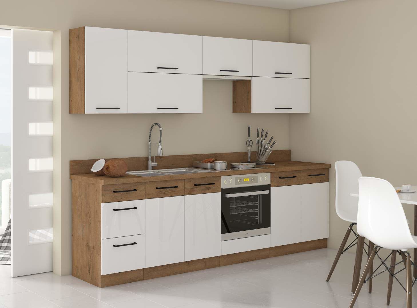 Kuchyňská linka VIGGO - vaření je radost, zábava a společné vzpomínky. Kvalitní kuchyňská linka z MDF s dvířky v lesku vám zpříjemní chvilky strávené ve vaší kuchyni.