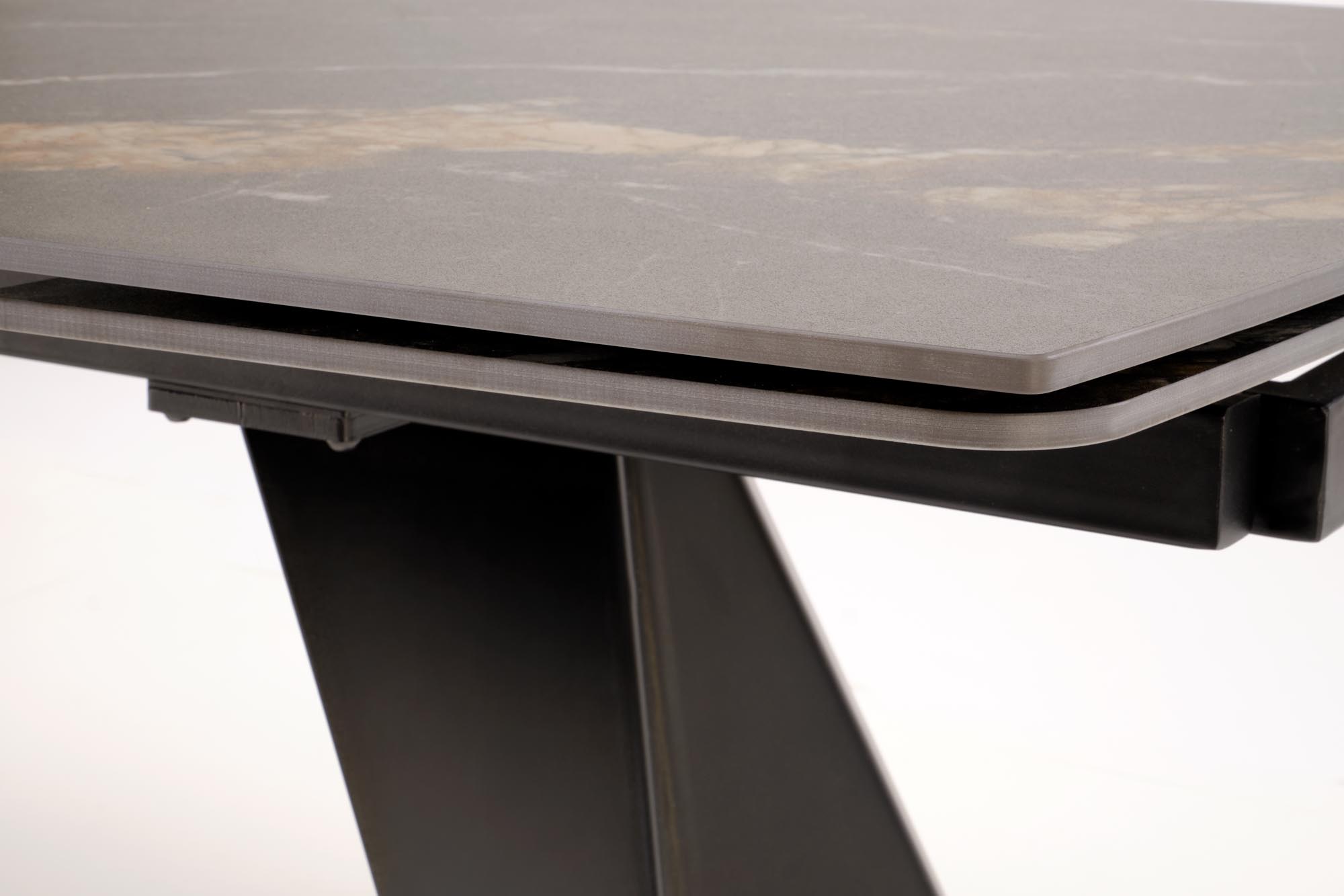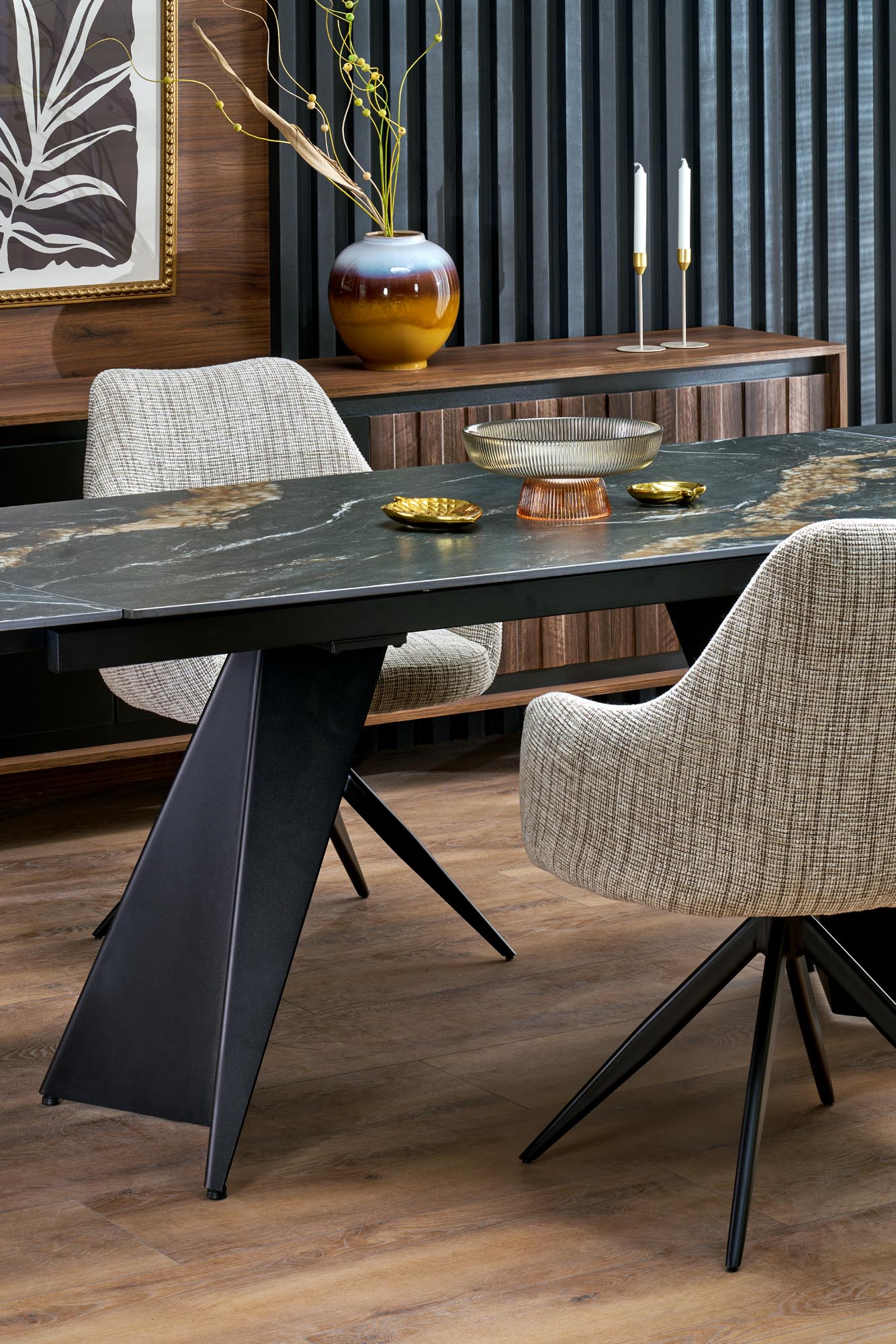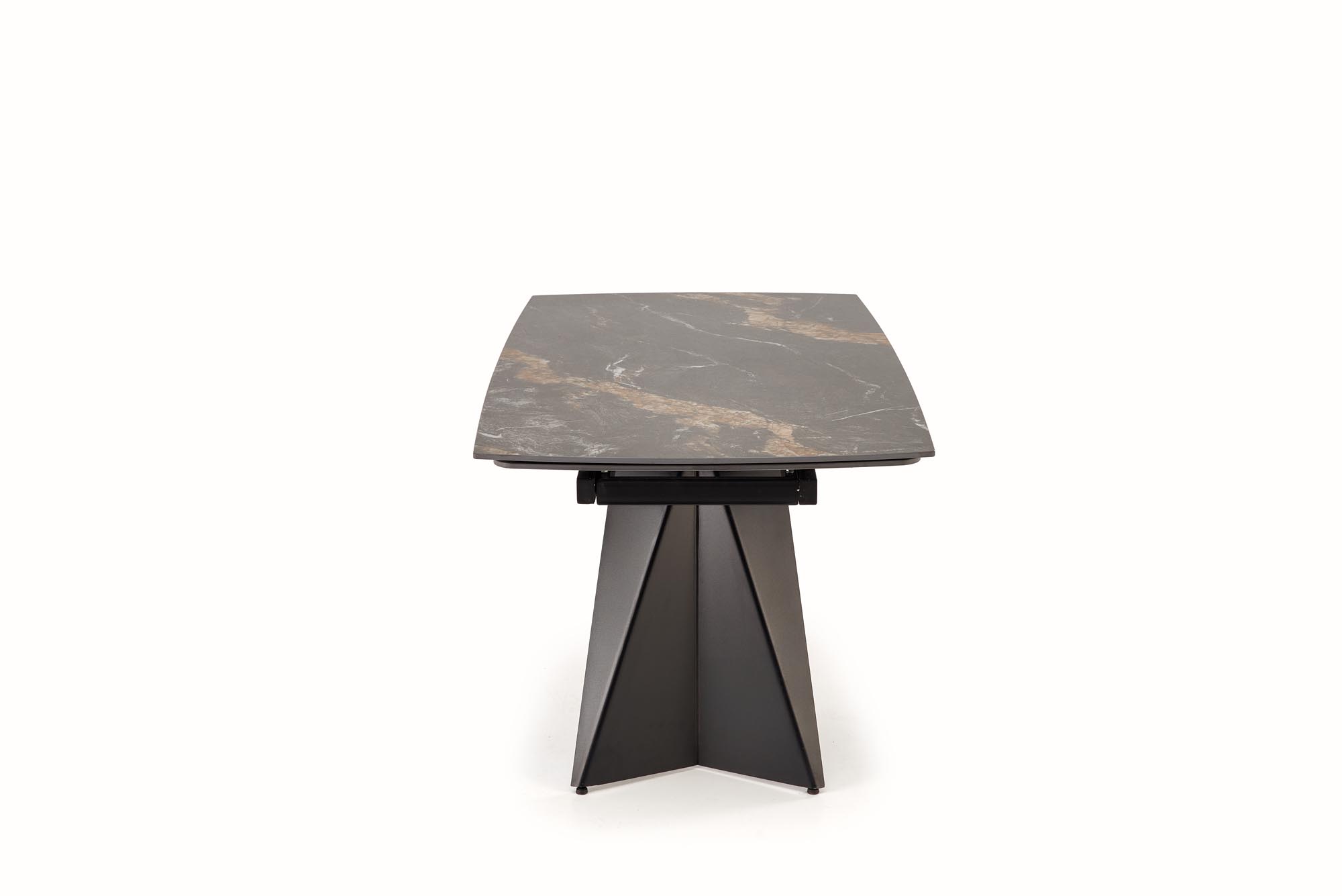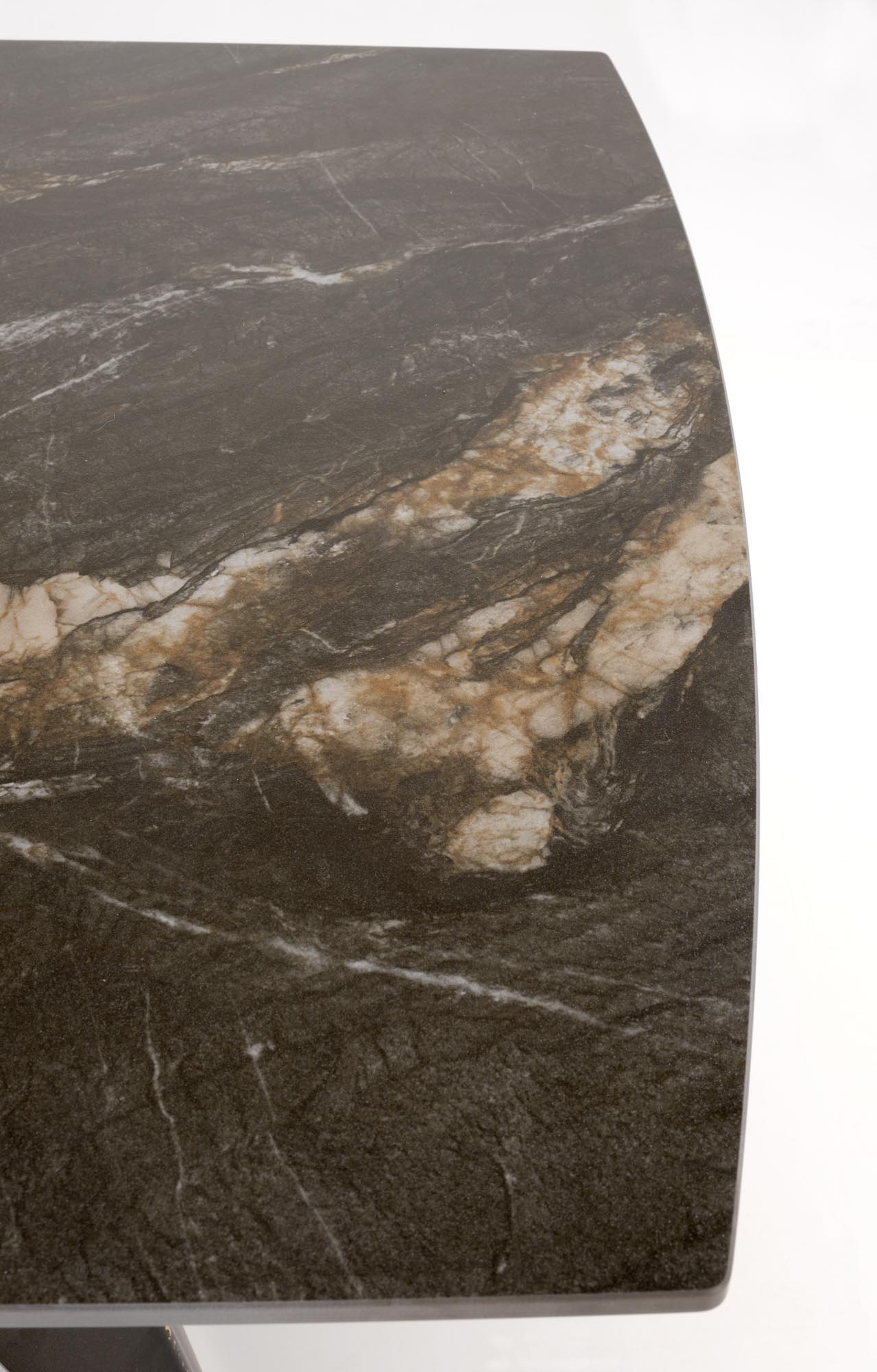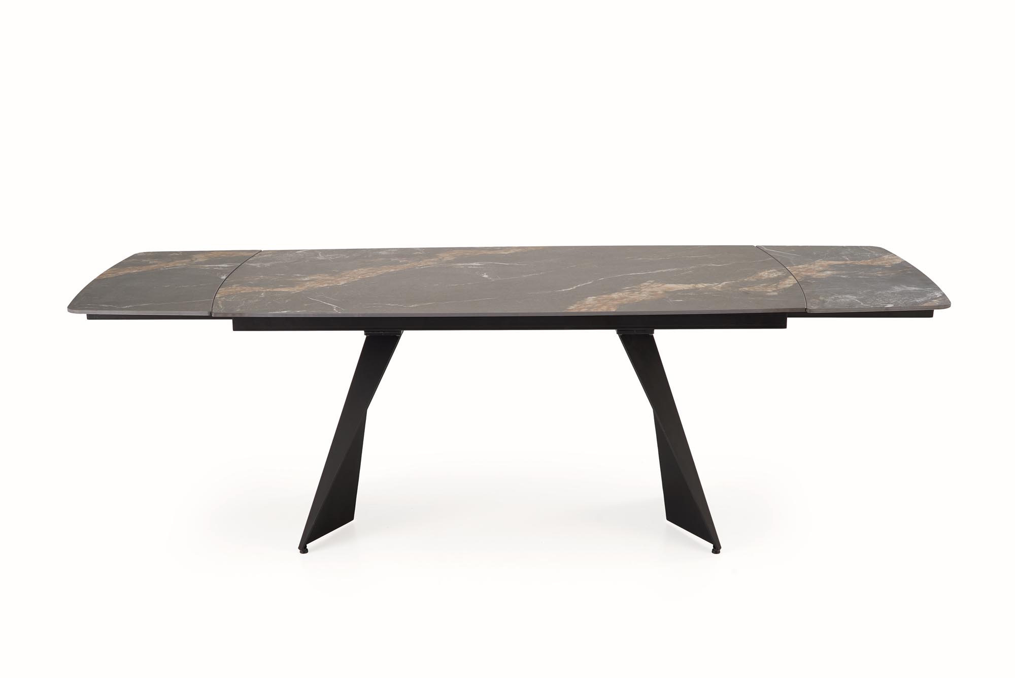 Jídelní stůl ARMANI - je robustní rozkládací stůl vyroben ze slinutého kamene v barvě černého mramoru s moderní podnoží z černě lakované práškové oceli.