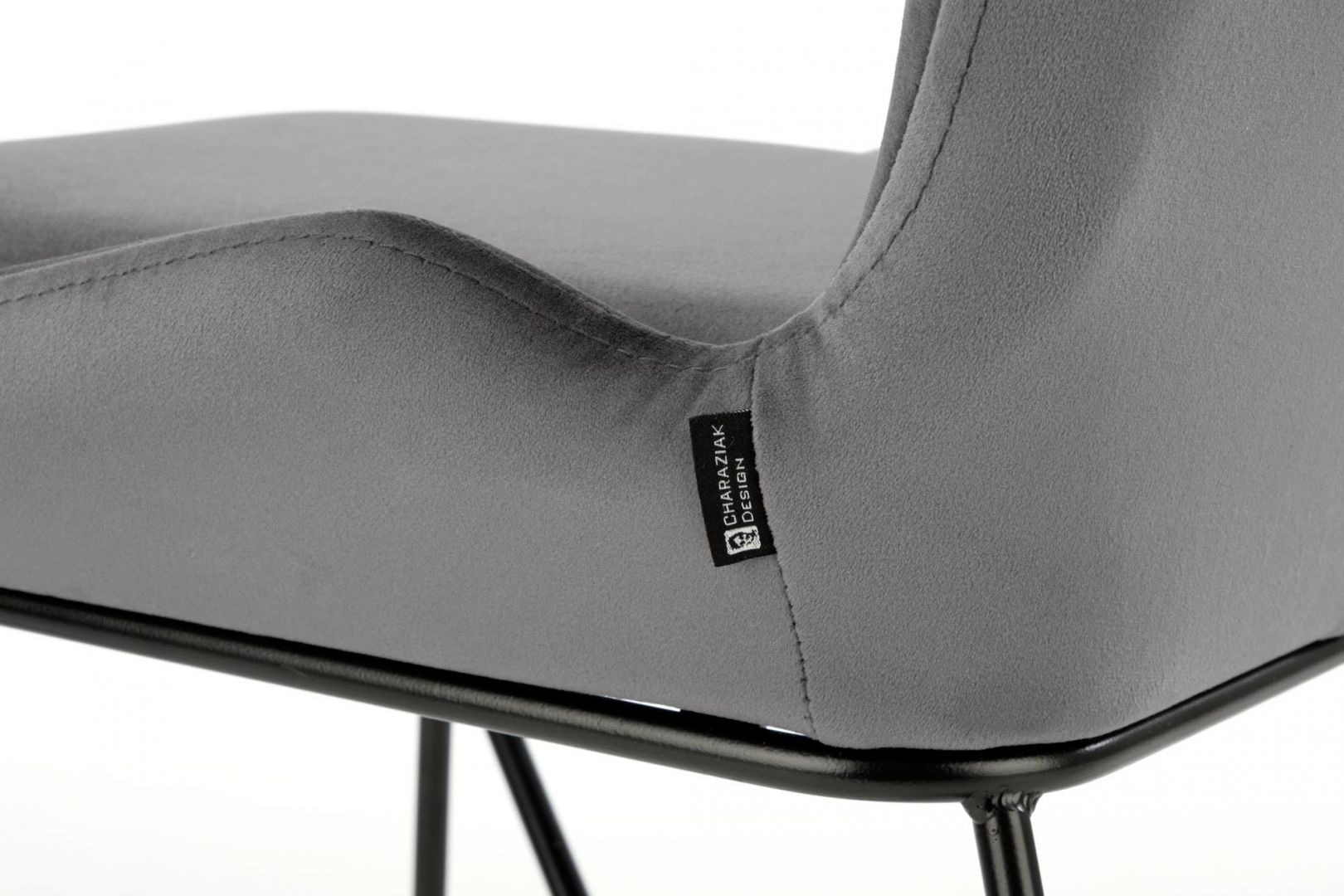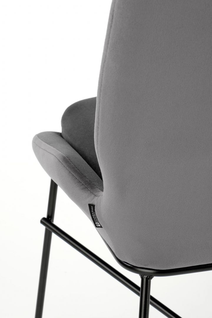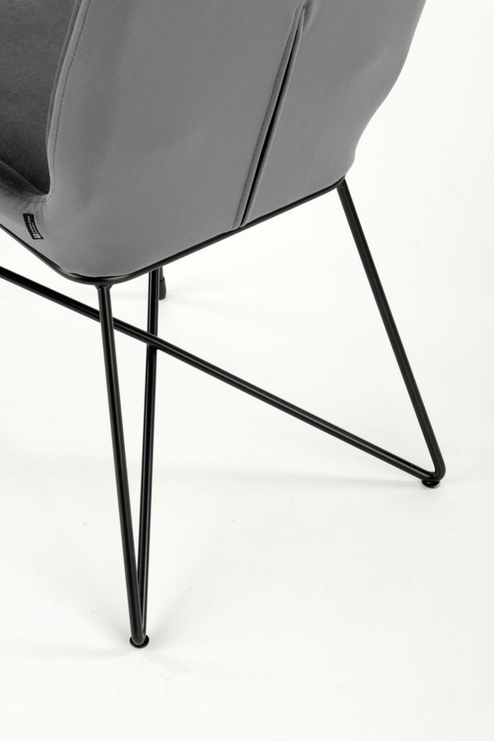 Jídelní židle K454 - je pohodlná jídelní židle vyrobena z lakované oceli a čalouněného sedáku v barevném provedení z šedé a zelené sametové látky.