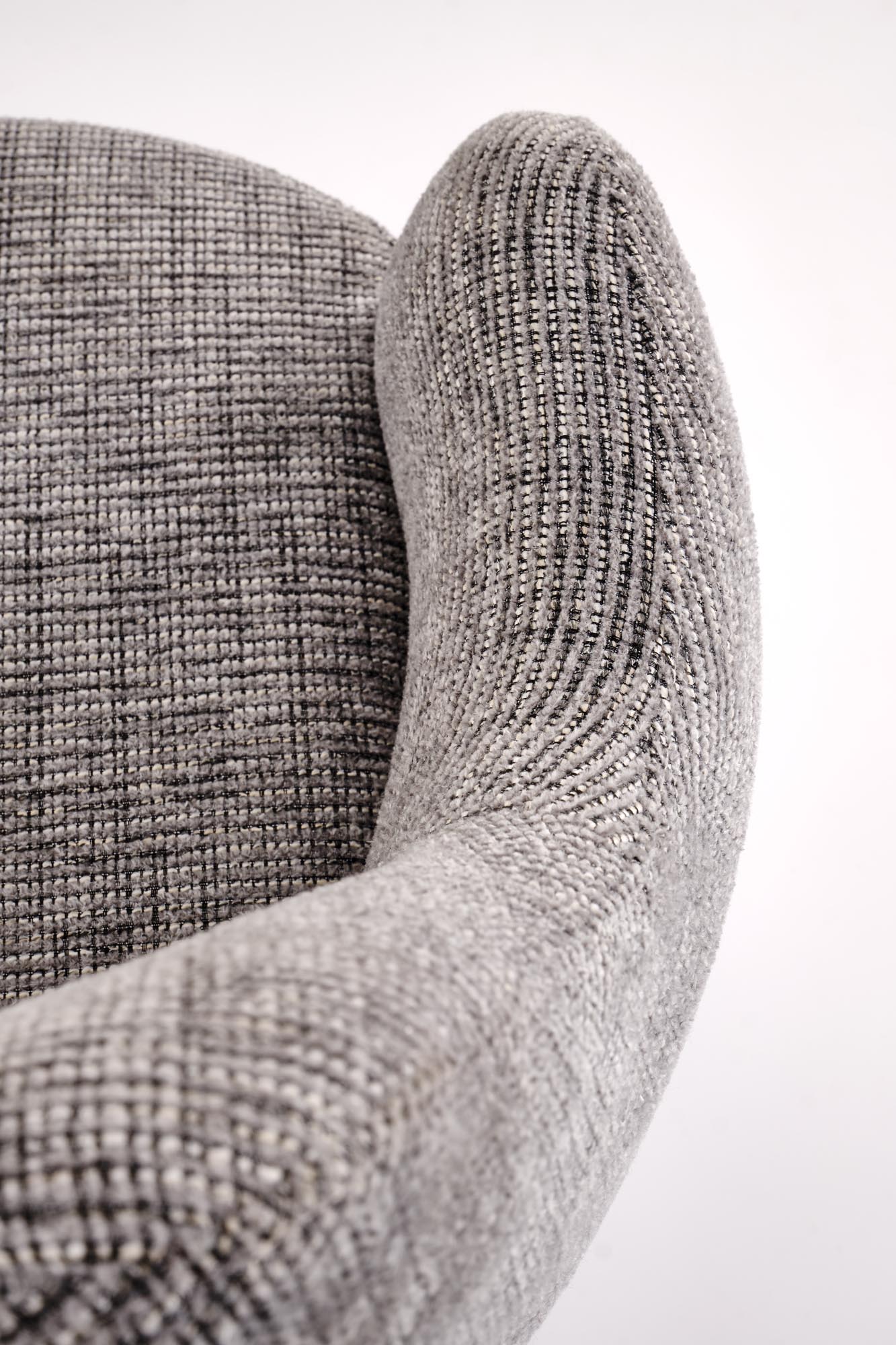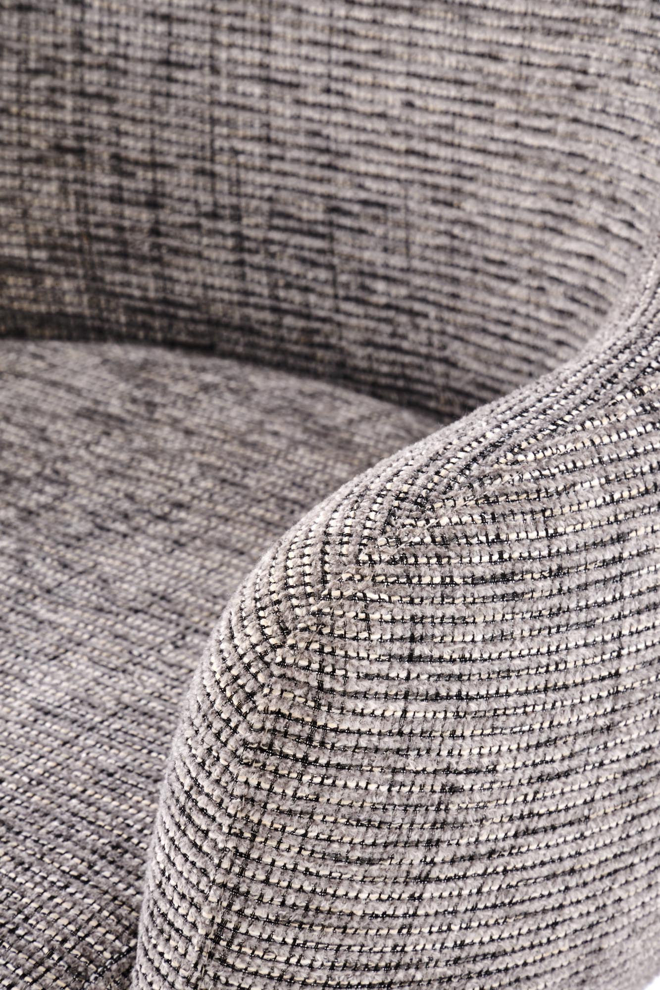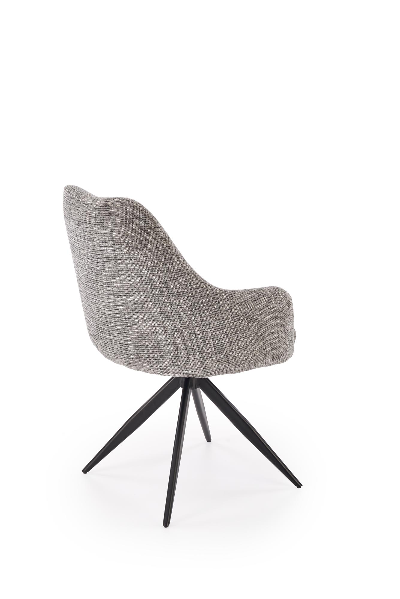 Jídelní židle K564 - je elegantní otočná židle vyrobena v kombinaci práškově lakované oceli a sedáku čalouněném v šedé, potahové látce.