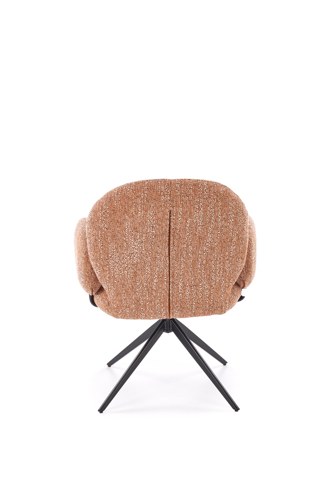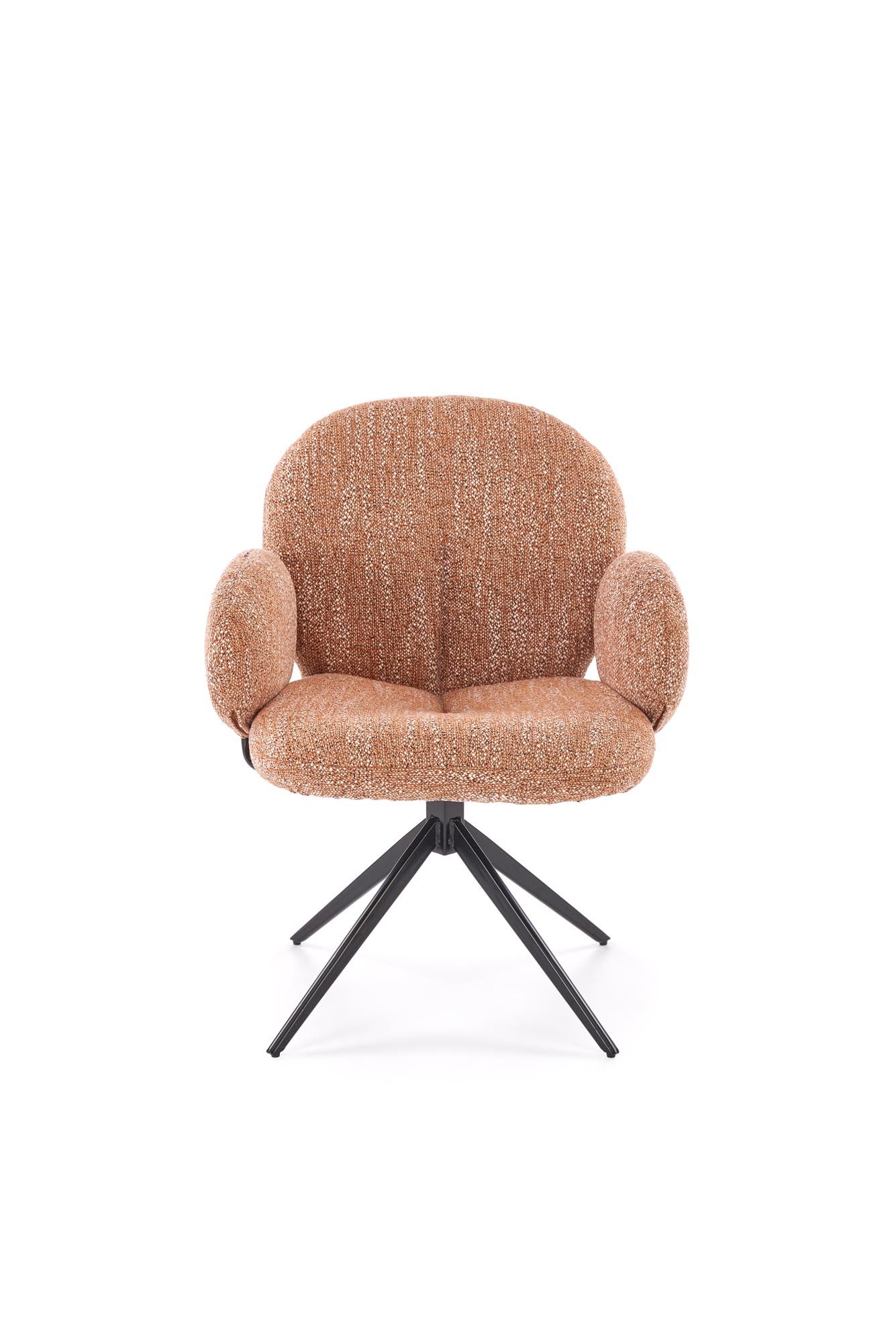 Jídelní židle K568 - je elegantní otočná židle vyrobena v kombinaci lakované oceli a sedáku čalouněném měkkou a příjemnou tkaninou skořicové barvy.