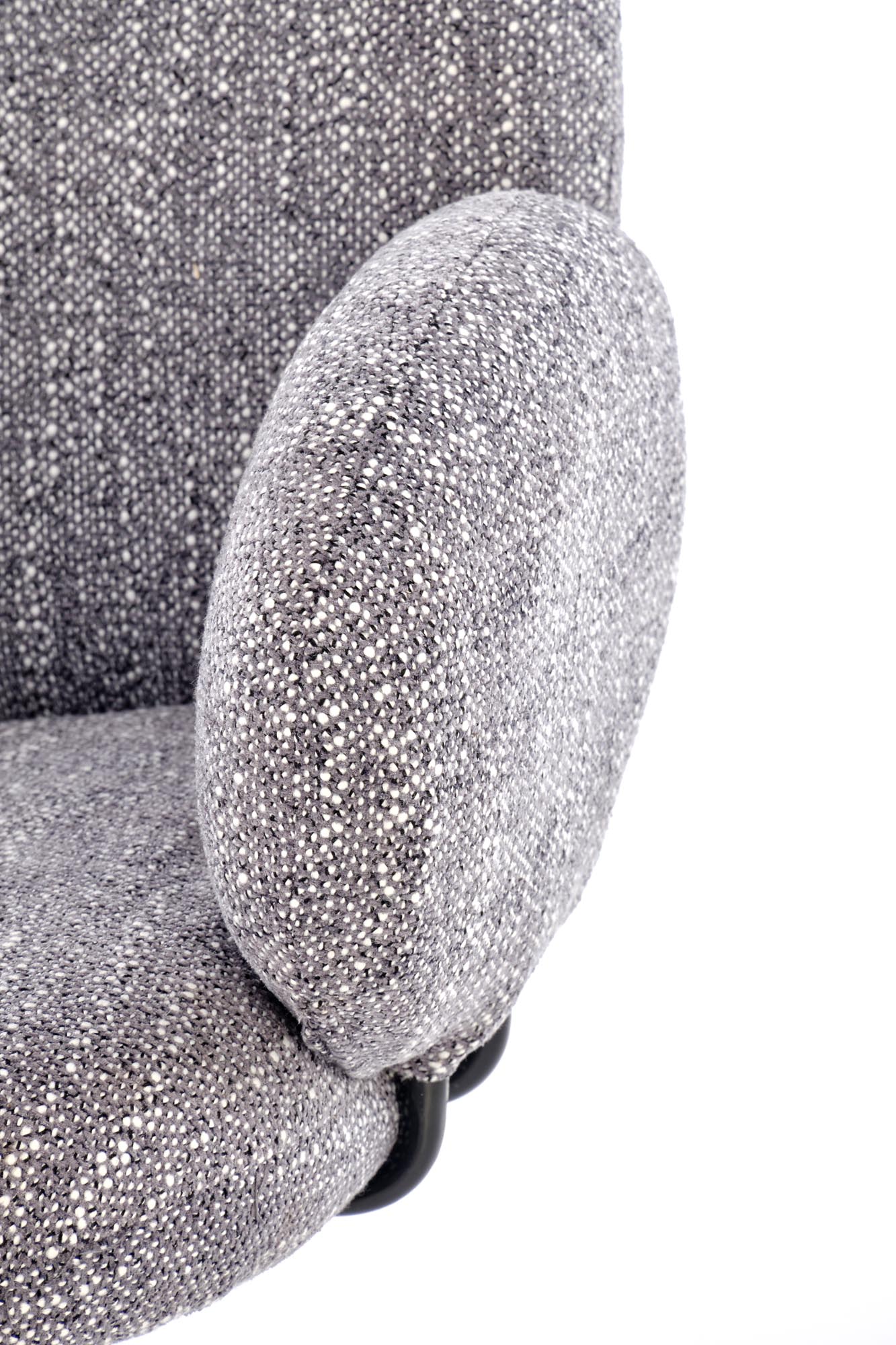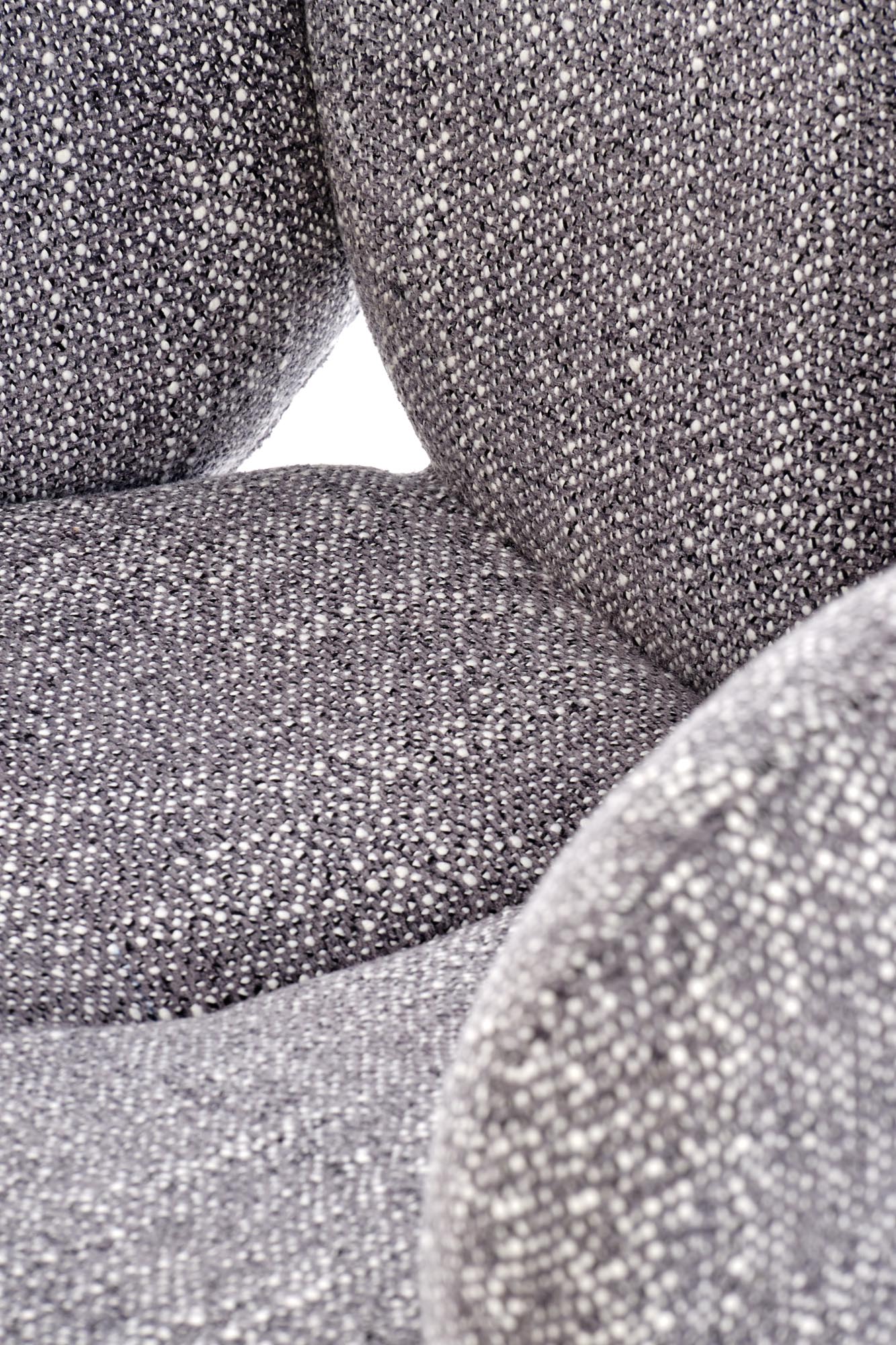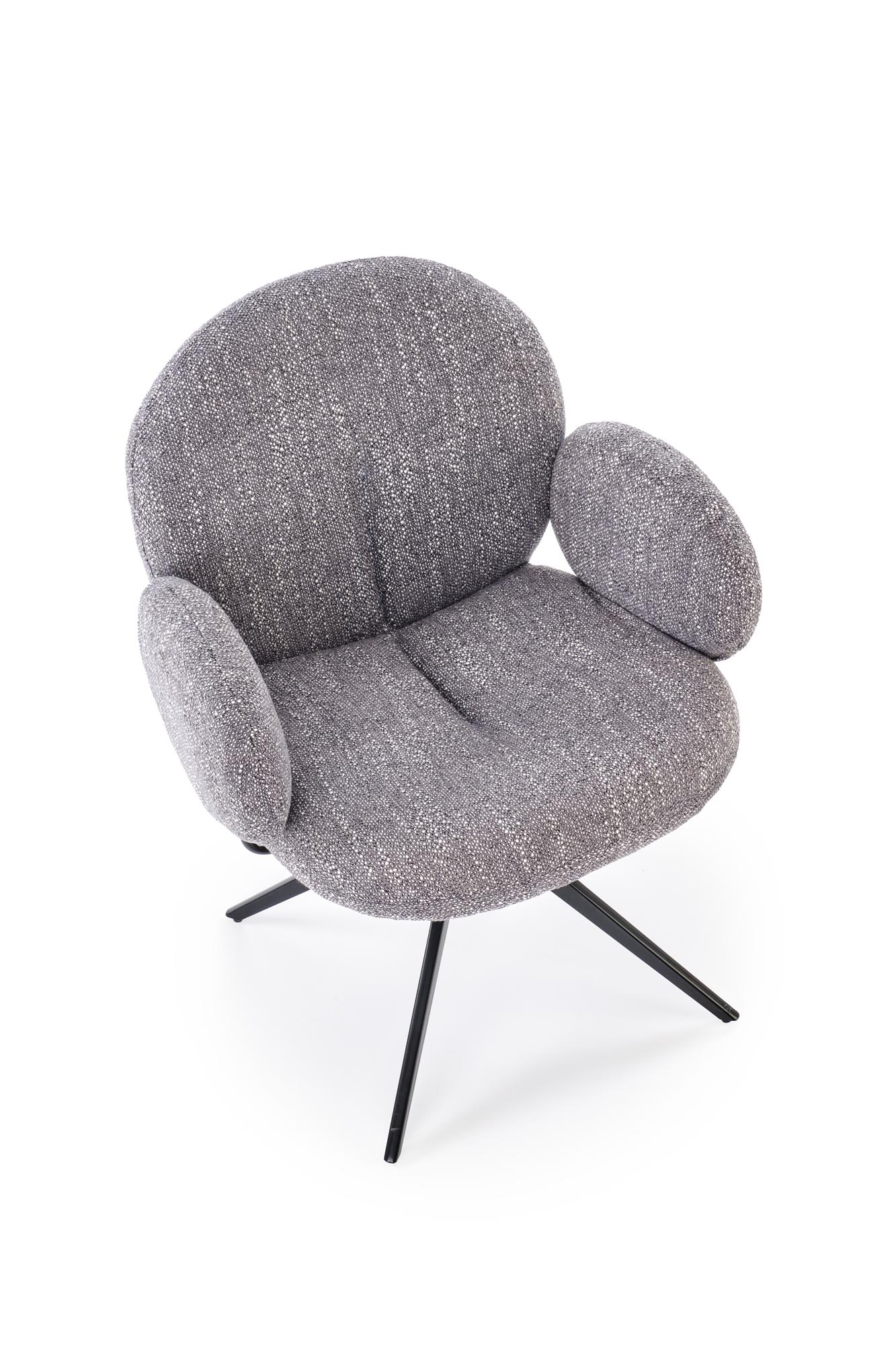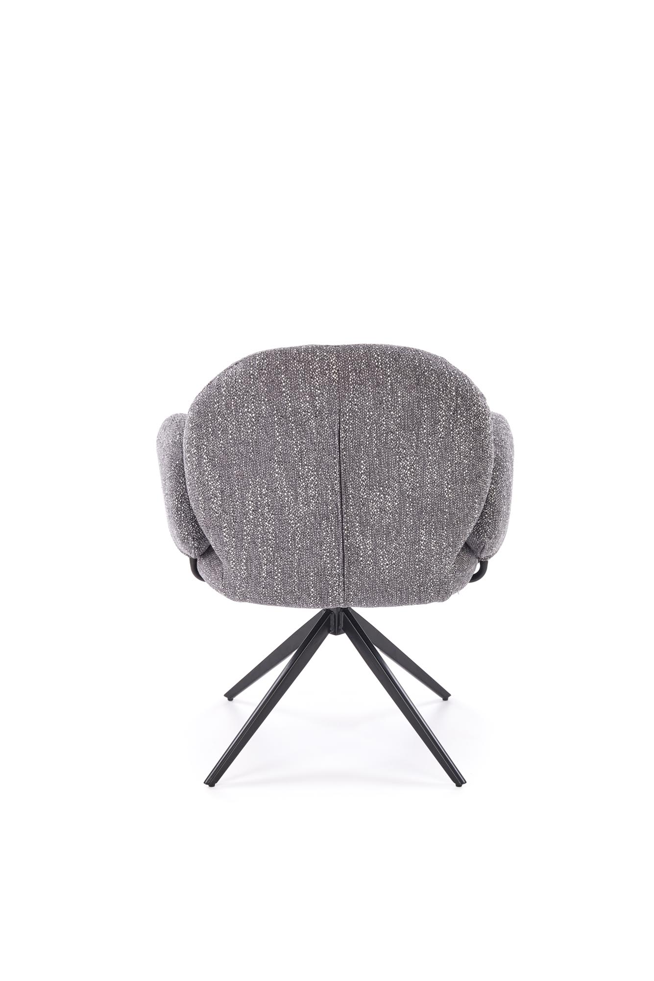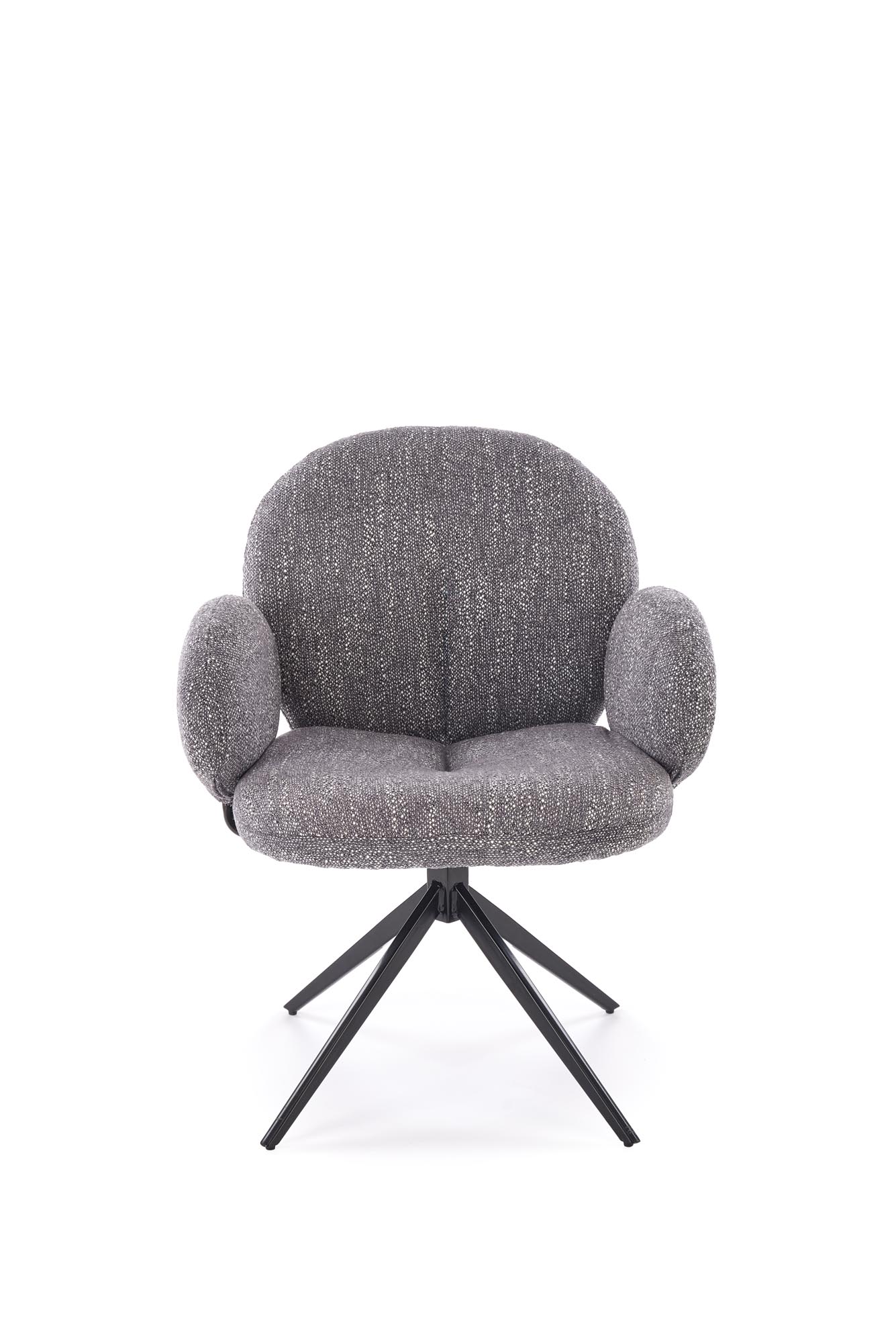 Jídelní židle K568 - je elegantní otočná židle vyrobena v kombinaci lakované oceli a sedáku čalouněném měkkou a příjemnou tkaninou šedé barvy.