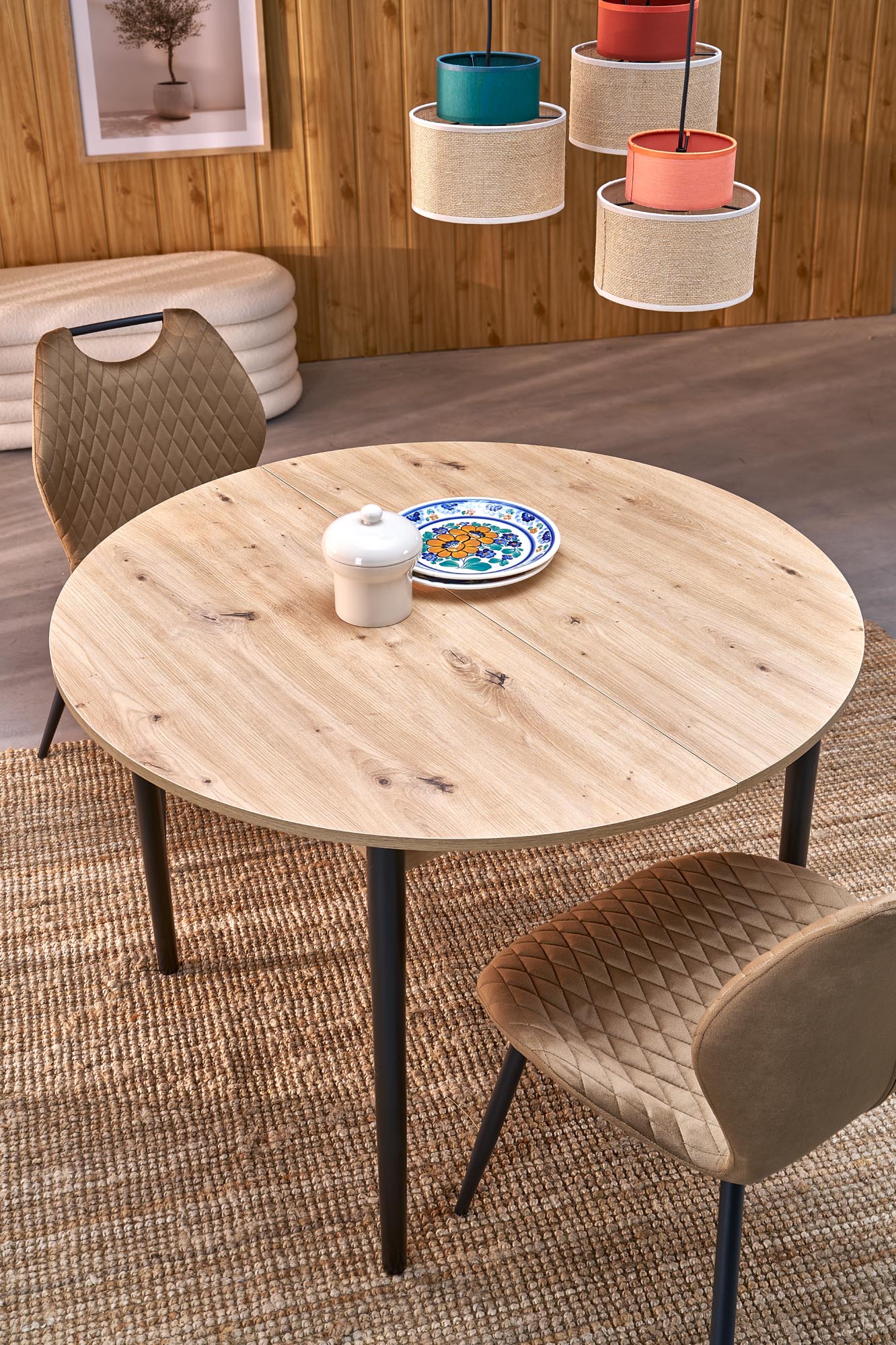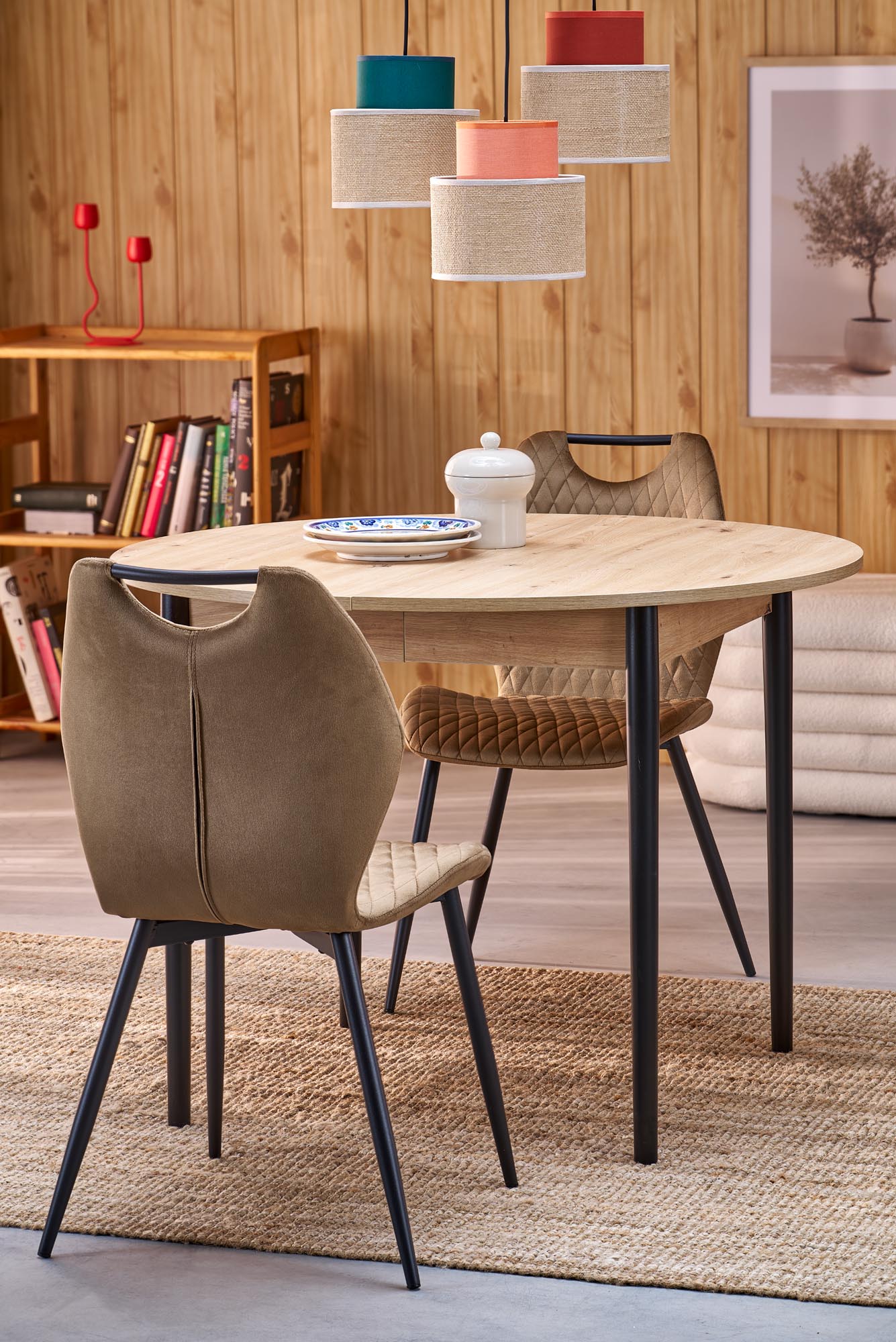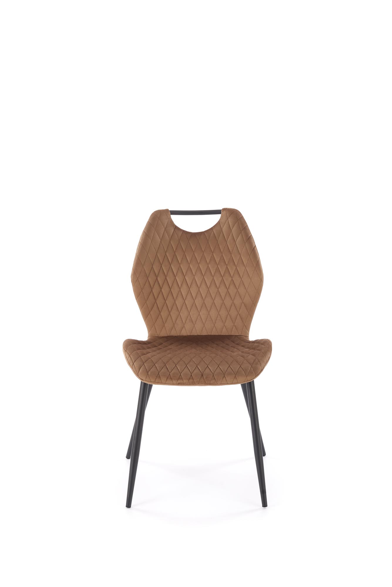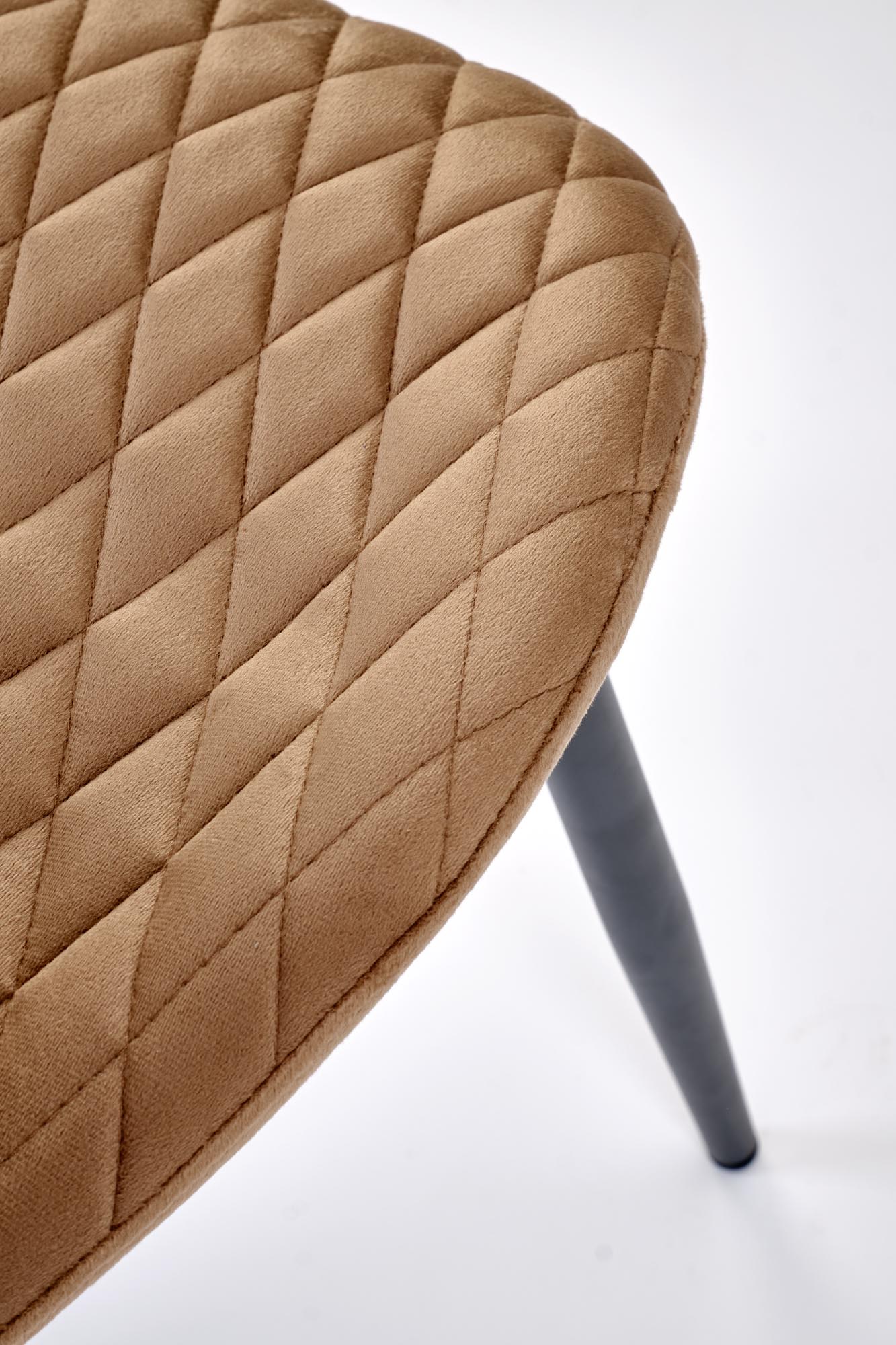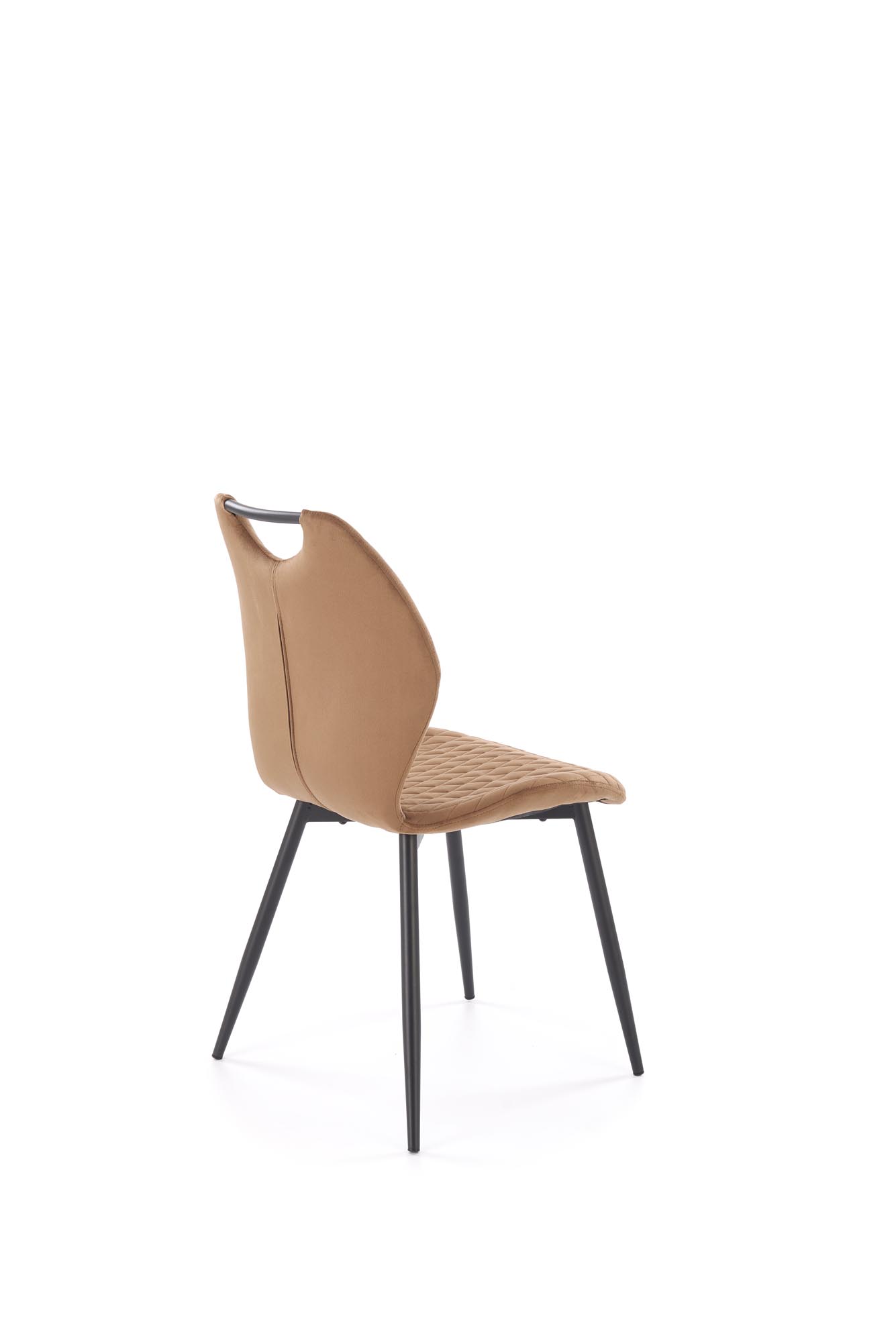 Jídelní židle K569 - je elegantní židle vyrobena v kombinaci lakované oceli v černé barvě a pohodlného sedáku a opěráku čalouněným v béžové, na dotek sametové látky HLR 11.