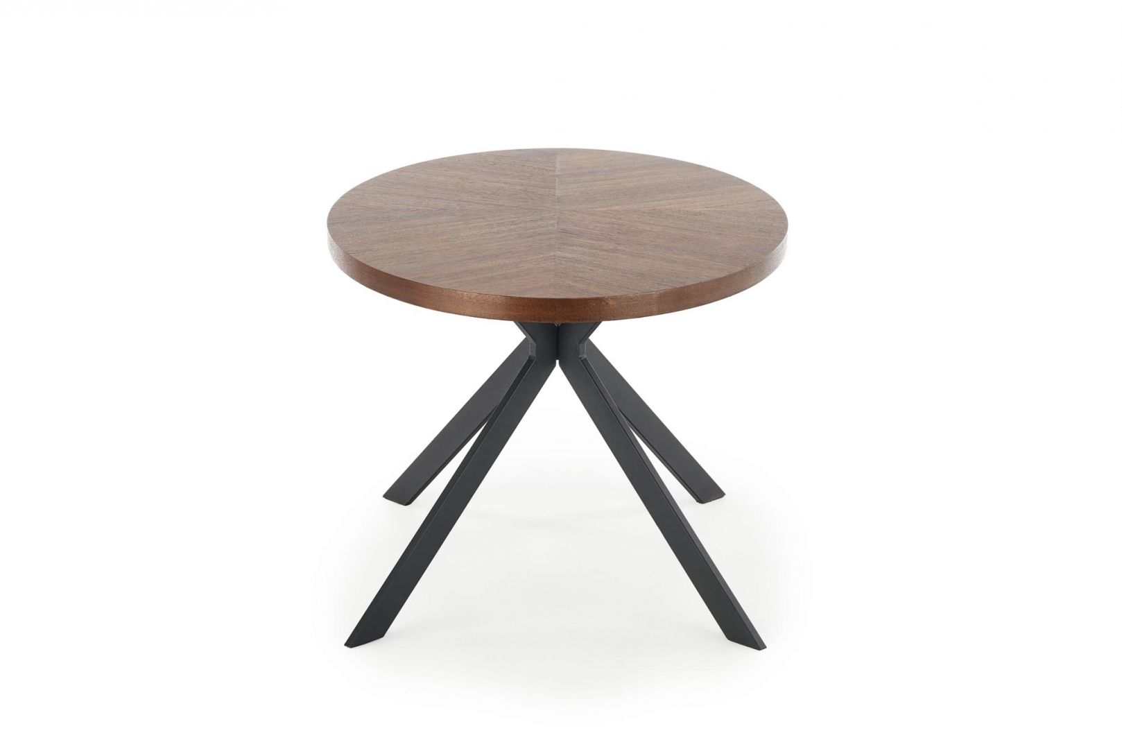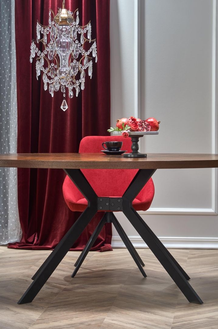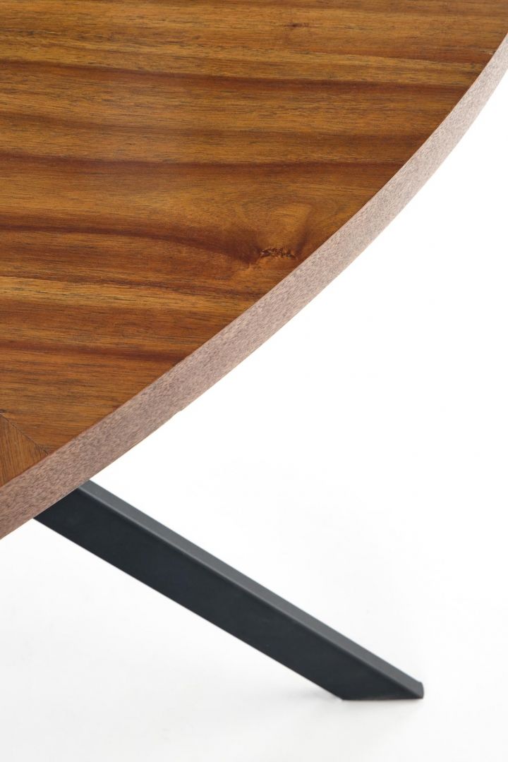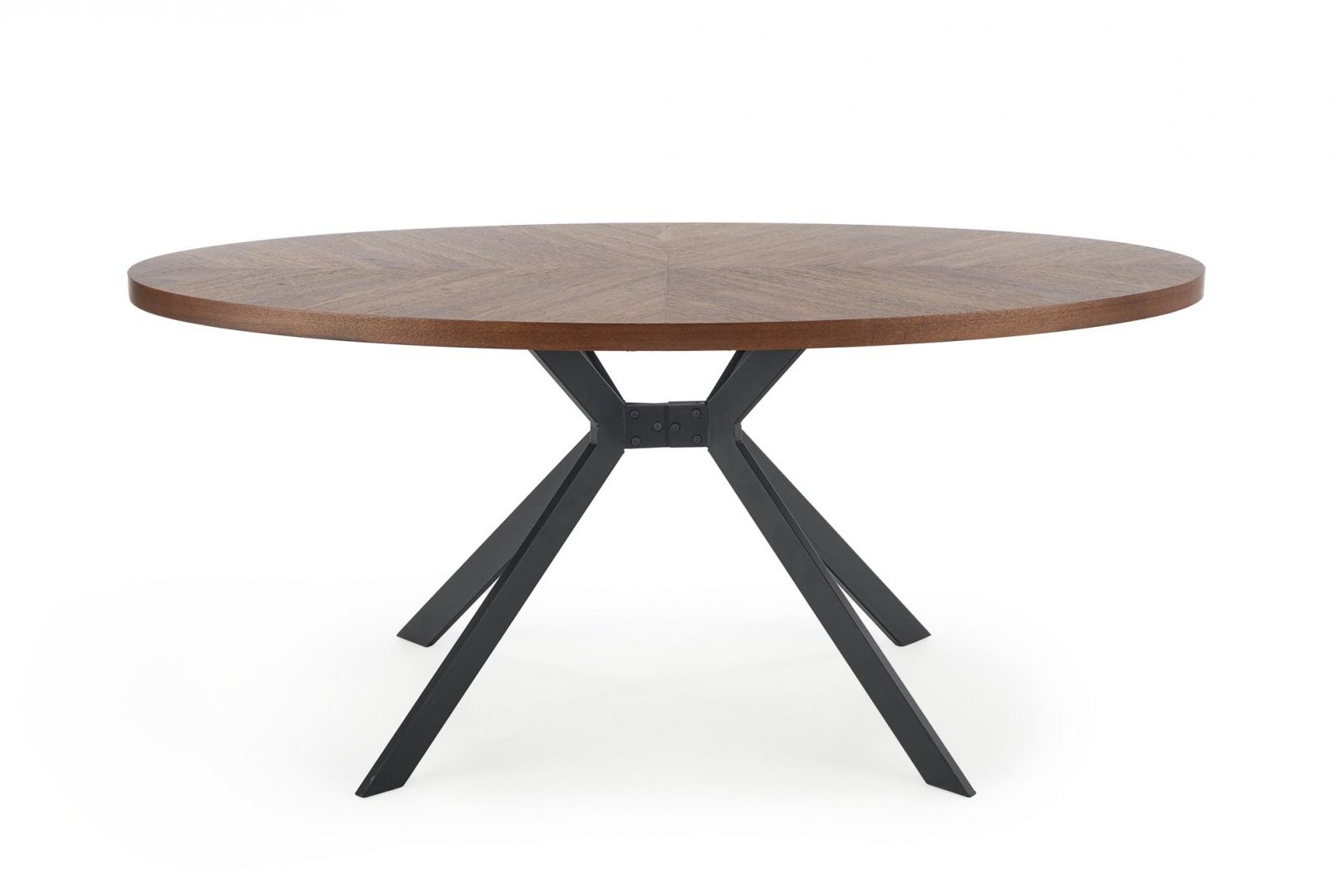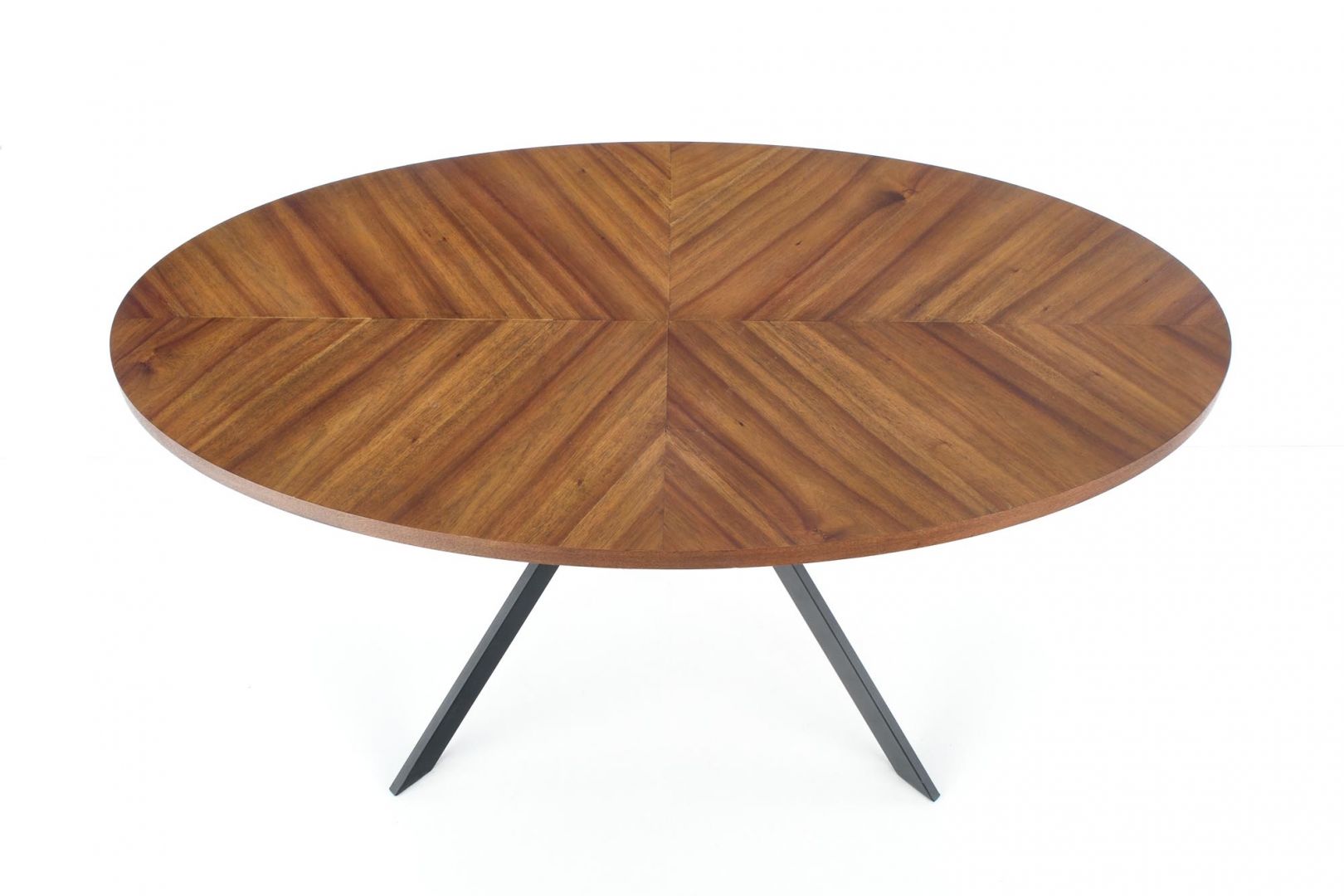 Jídelní stůl LOCARNO - je oválný jídelní stůl vyrobený z vysoce kvalitní MDF desky potažené přírodní dýhou v barevném provedení ořech. Stabilní podnož je vyrobena z černé lakované oceli.
