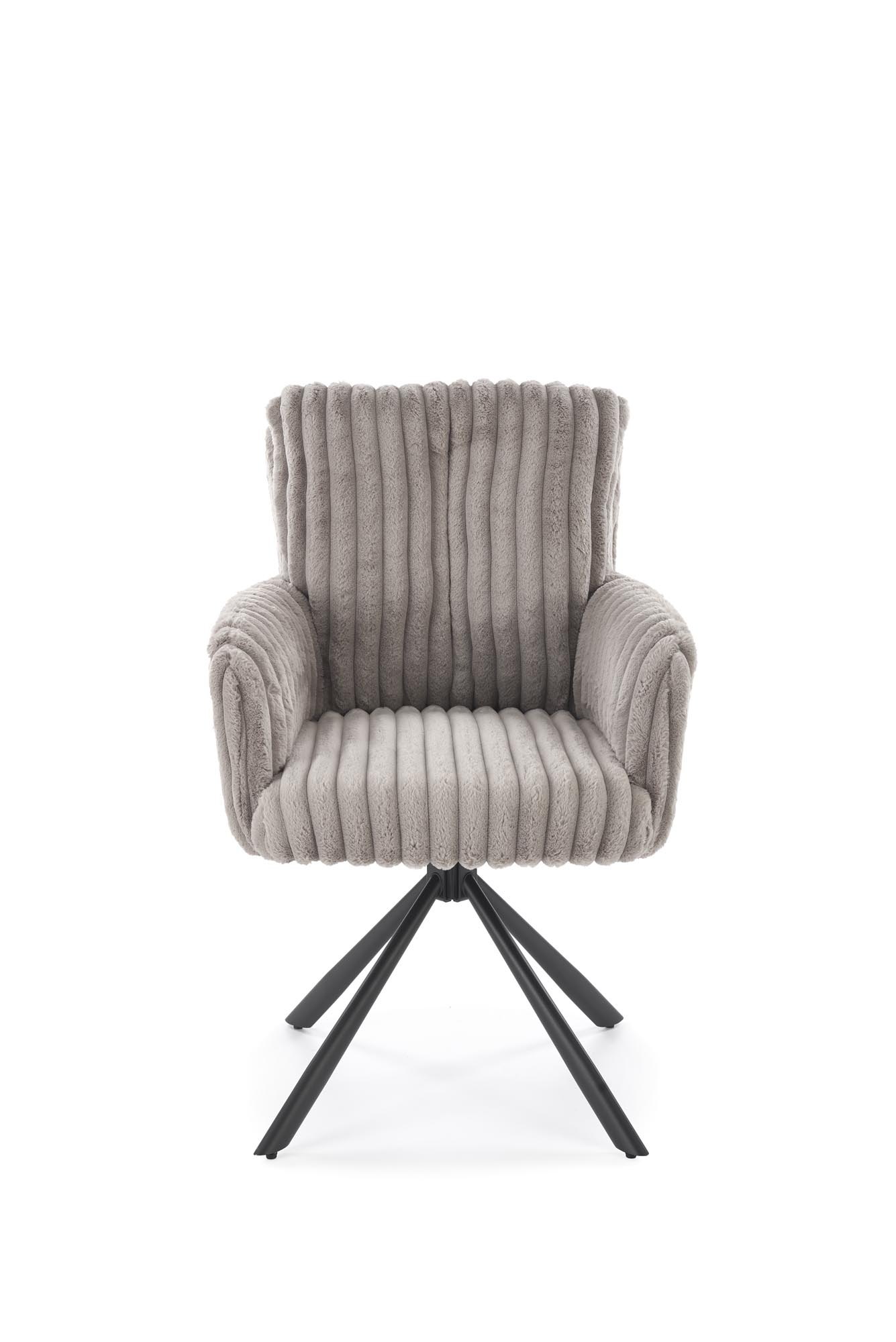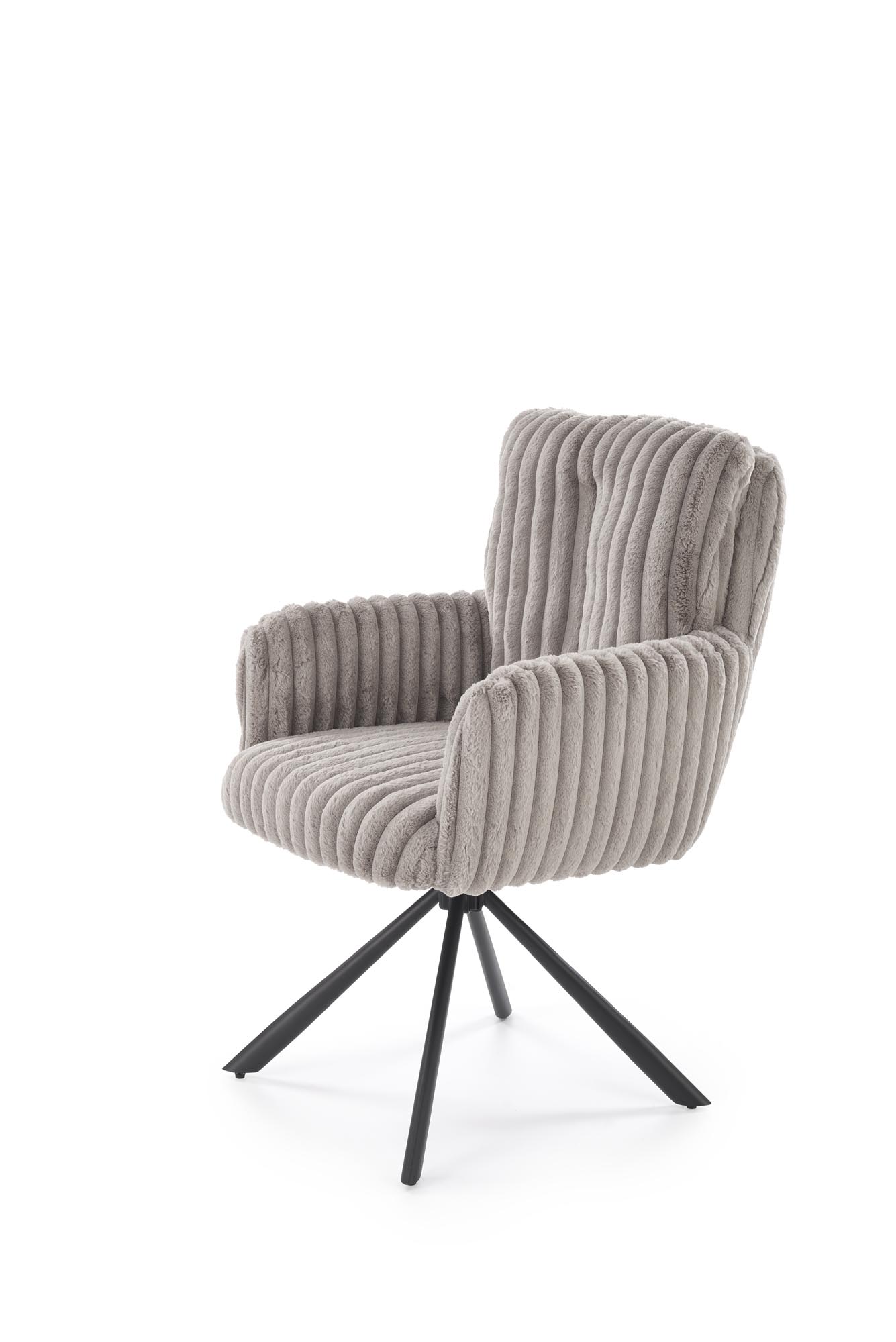 Jídelní židle K572 - je elegantní otočná židle vyrobena v kombinaci lakované oceli a sedáku čalouněném v šedé, potahové látce VITO.