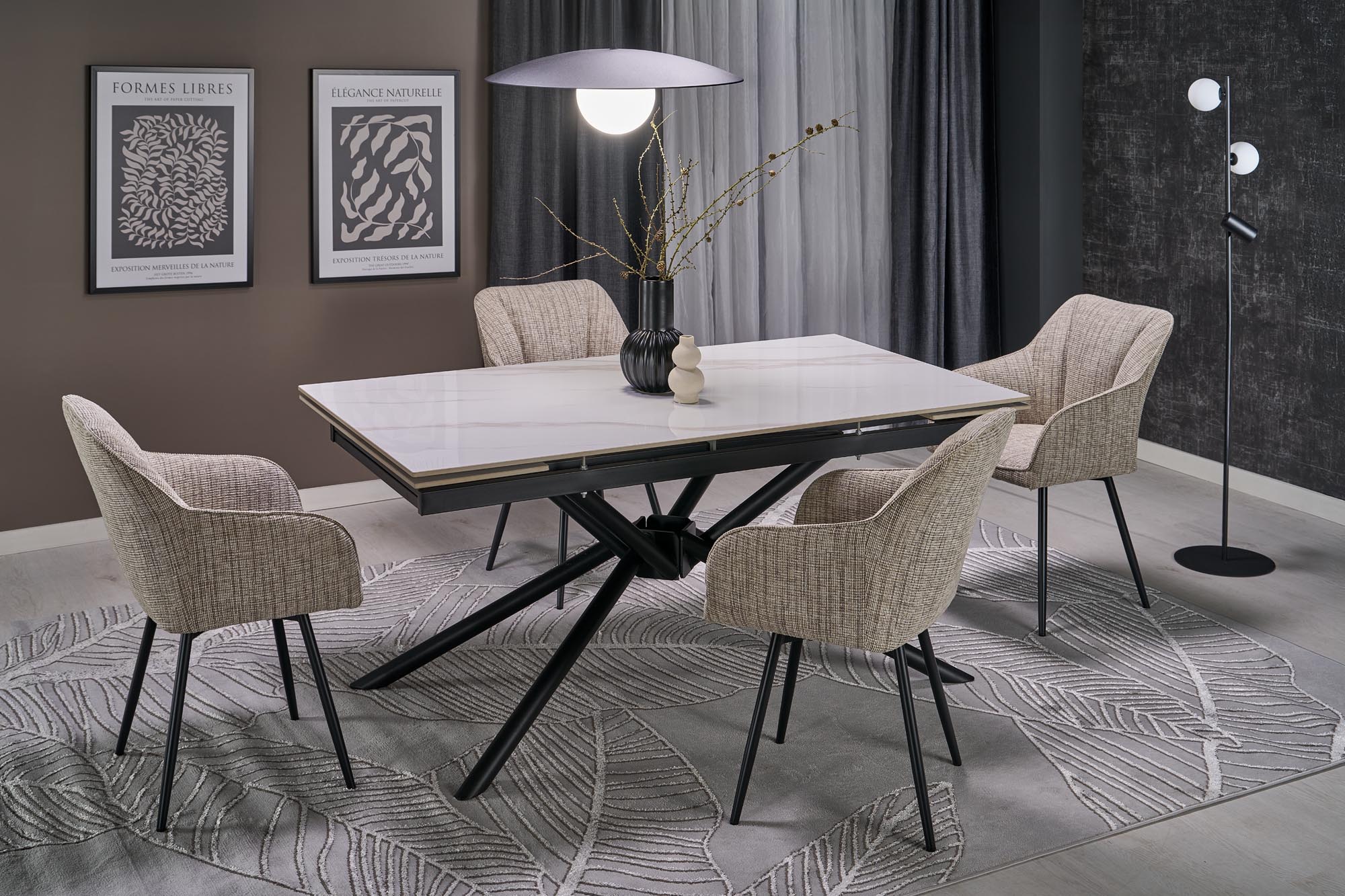 Jídelní židle K576 - je elegantní otočná židle vyrobena v kombinaci práškově lakované oceli a sedáku čalouněném v béžové potahové látce.