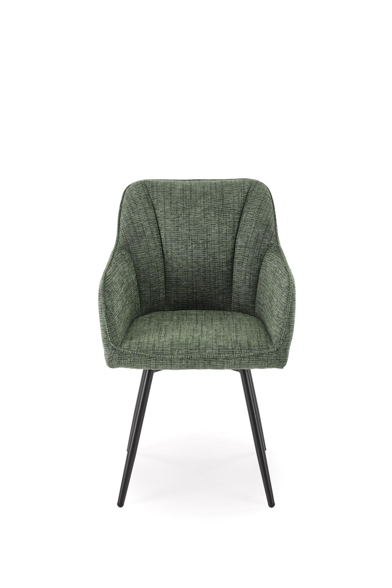 Jídelní židle K576 - je elegantní otočná židle vyrobena v kombinaci práškově lakované oceli a sedáku čalouněném v olivové potahové látce.
