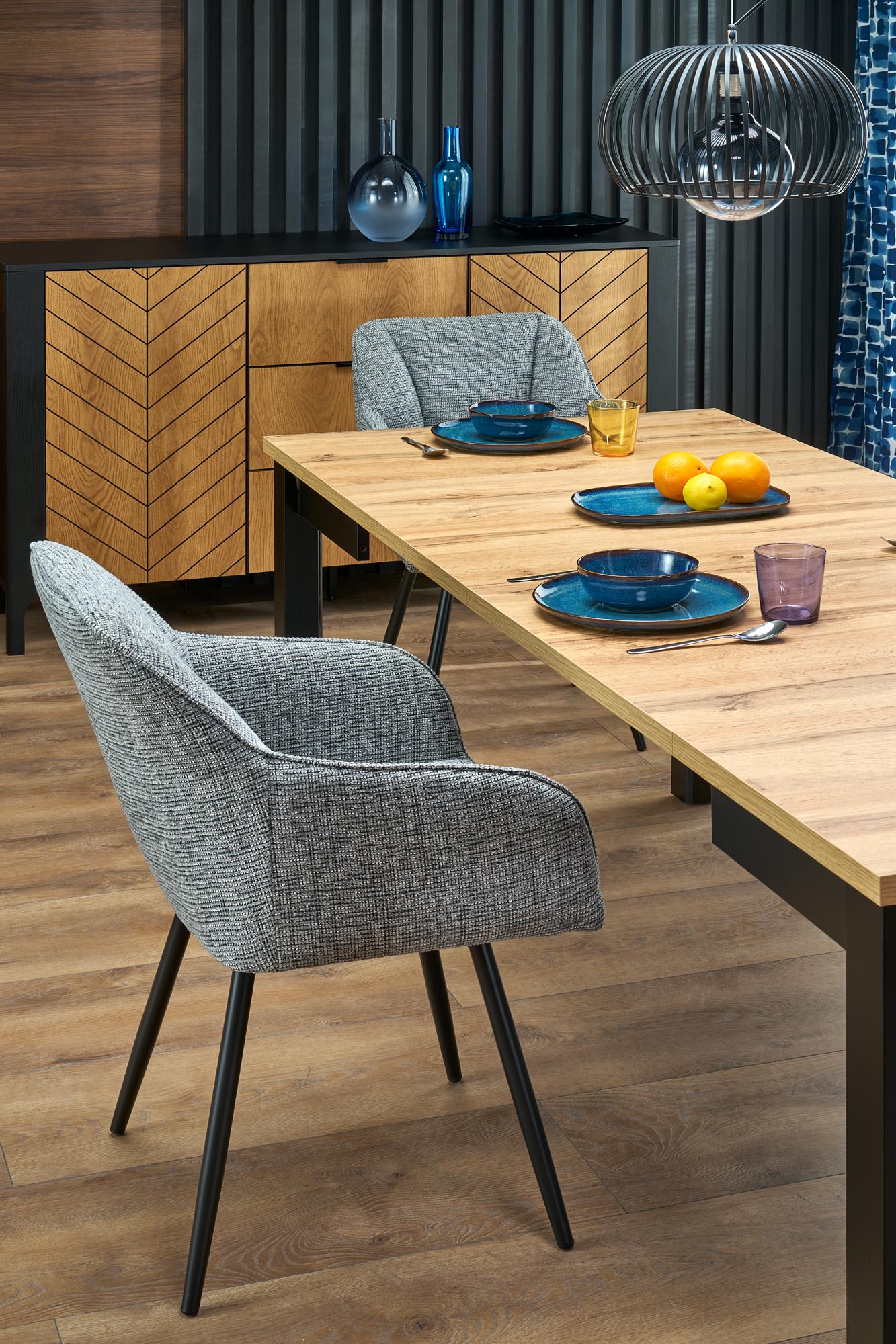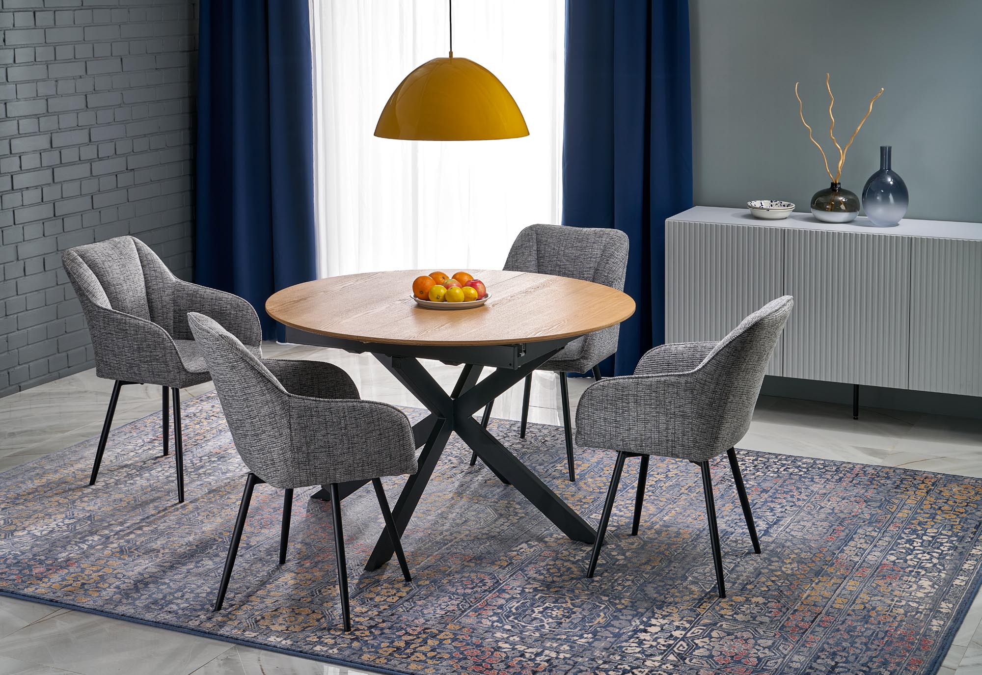 Otočná židle K576 spojuje moderní design s vysokým komfortem a stává se tak výrazným prvkem každého interiéru. Díky otočné funkci 360 stupňů poskytuje volnost pohybu, ať už u jídelního stolu, při práci nebo během chvílí odpočinku. Sedák a opěrák jsou potaženy měkkou látkou, která nejen potěší svým vzhledem, ale také zajistí příjemný zážitek při sezení. Stabilitu zajišťuje pevná ocelová podnož s práškovým nástřikem, která navíc přispívá k celkovému modernímu dojmu.