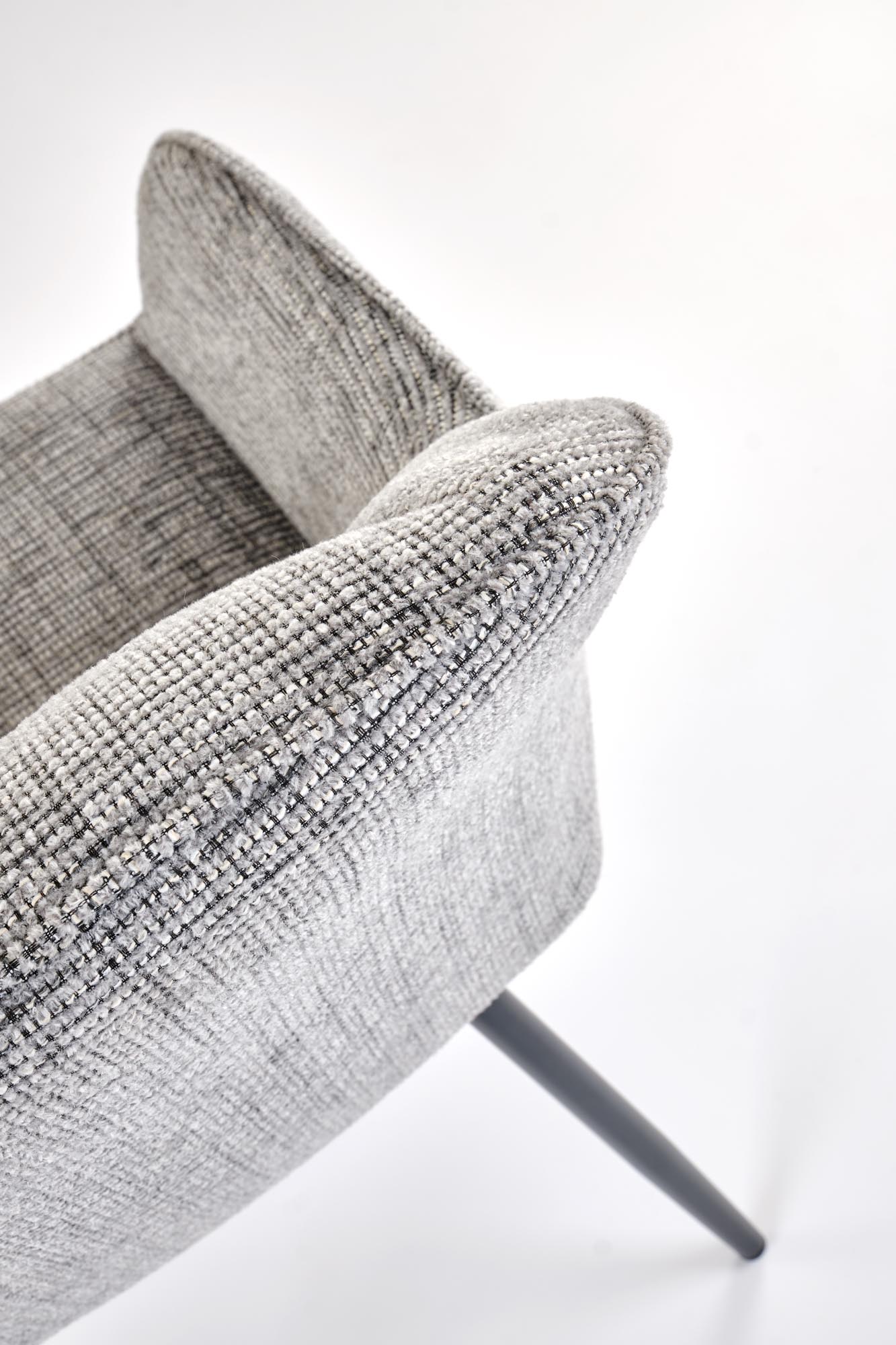 Jídelní židle K576 - je elegantní otočná židle vyrobena v kombinaci práškově lakované oceli a sedáku čalouněném v šedé potahové látce.