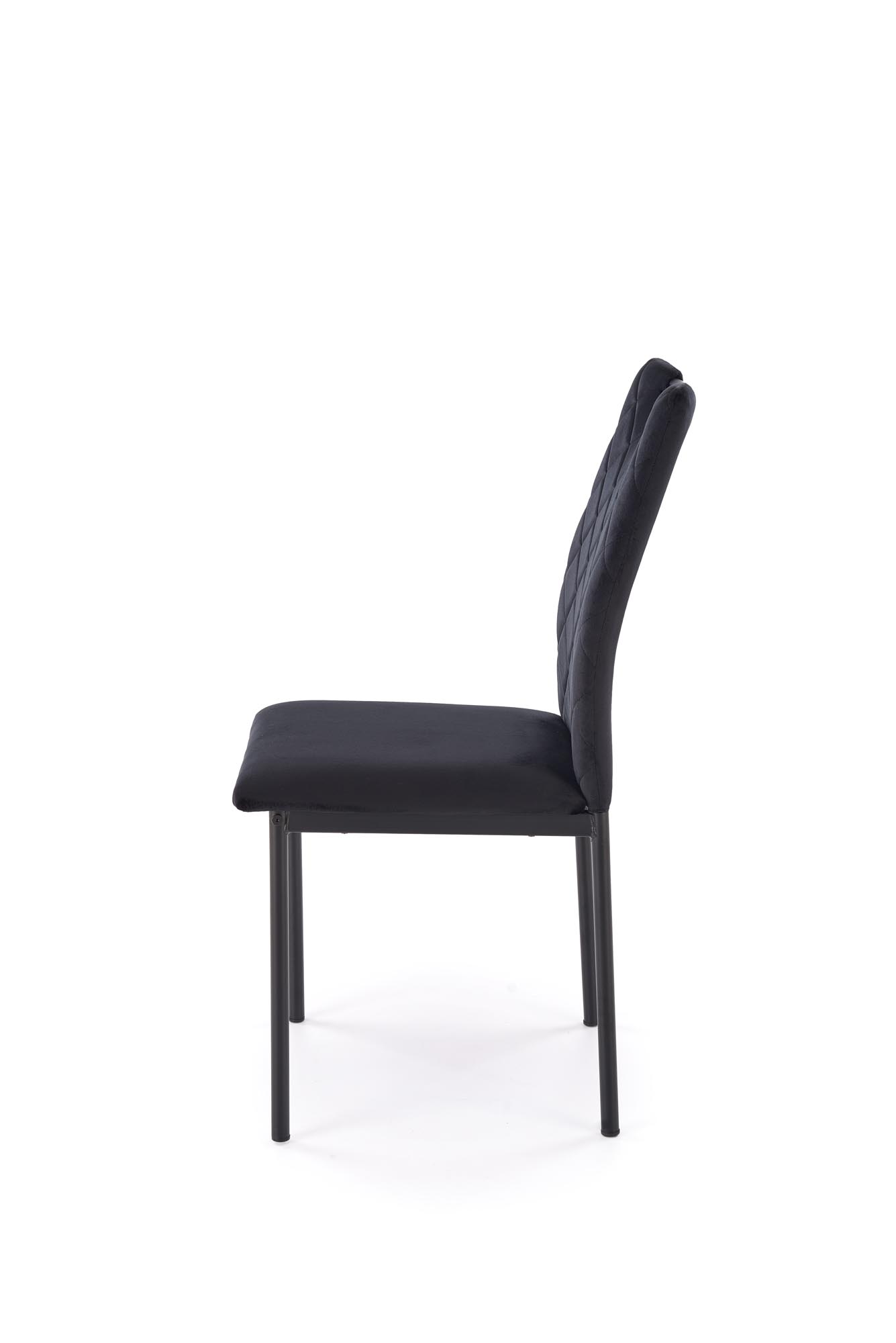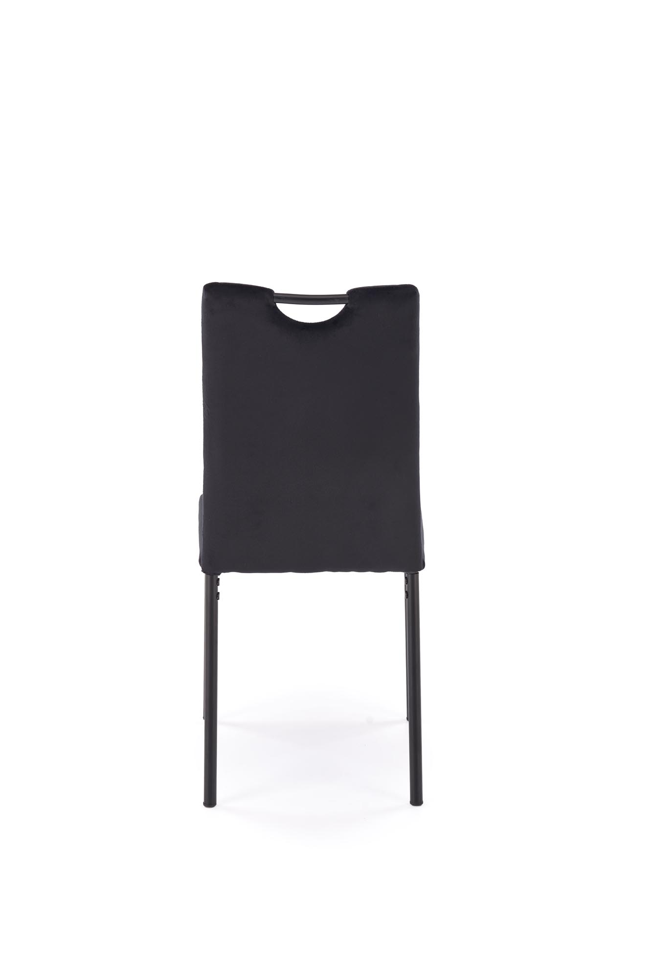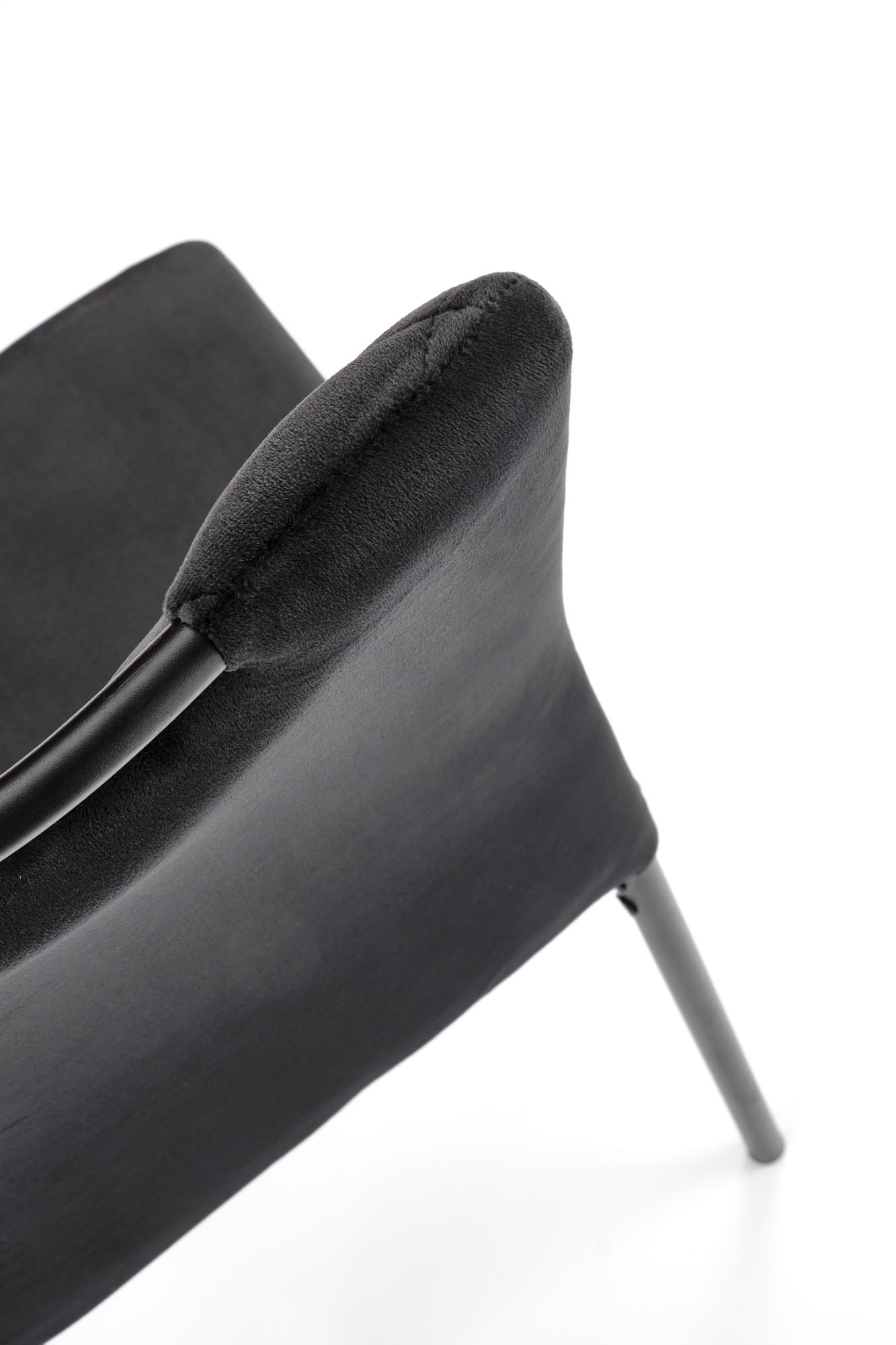 Jídelní židle K577 - je elegantní židle vyrobena v kombinaci lakované oceli v černé barvě a pohodlného sedáku a opěráku čalouněným v černé, na dotek sametové látky HLR 66.