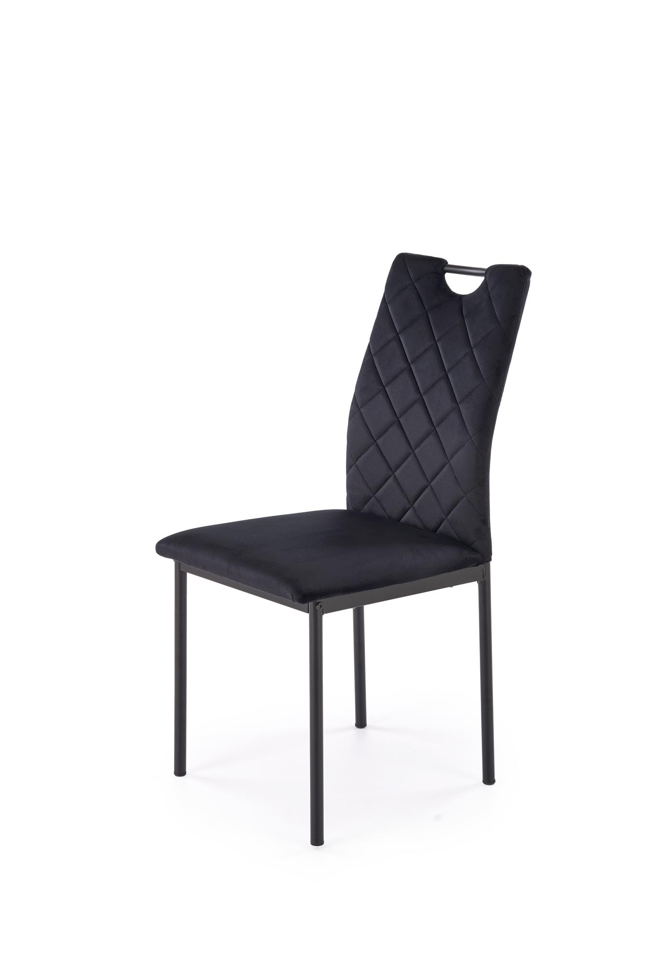 U jídelního stolu trávíte někdy i hodiny a proto najít pohodlnou a zároveň praktickou jídelní židli je nezbytnost. Ať už se jedná o rodinnou večeři nebo večírek s přáteli, je vhodné vyhovět všem a zajistit maximální pohodlí. Jídelní židle K577 je elegantní židle s vysokým opěradlem vhodná do jídelen, obývacích pokojů nebo konferenčních místností. Sedák je velmi pohodlný díky polstrování a kvalitnímu čalounění. Potah z mimořádně odolné velvet látky je v elegantním černém barevném provedení. Konstrukce jídelní židle je vyrobená z lakované oceli v černé povrchové úpravě.