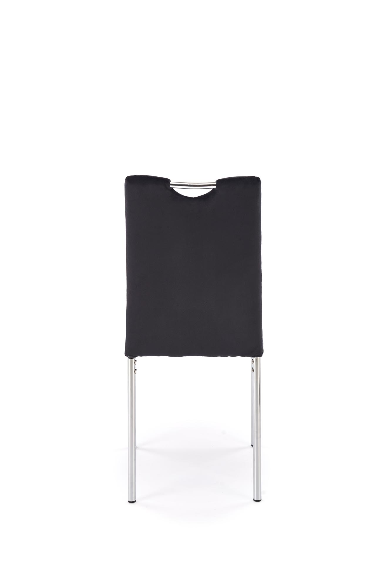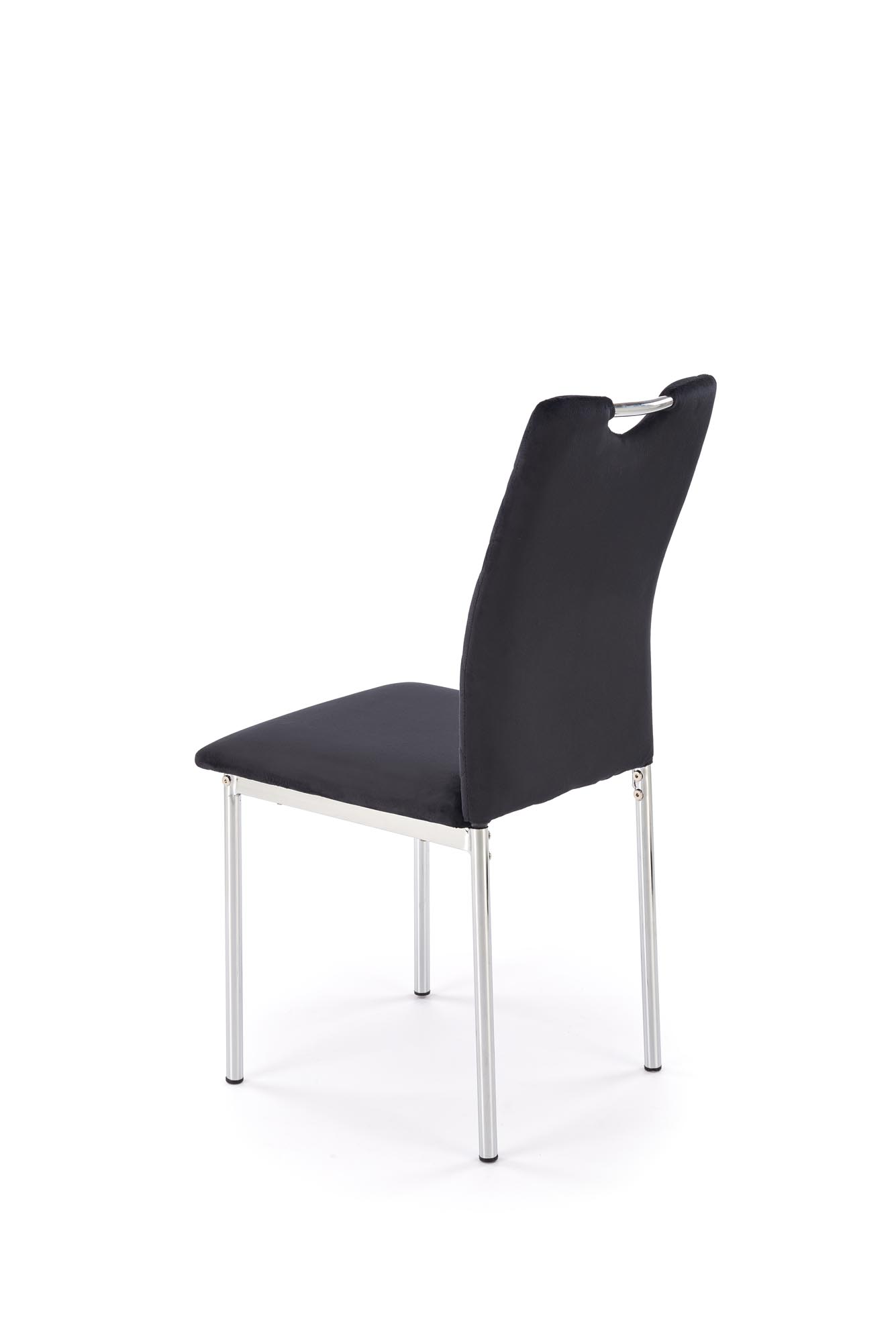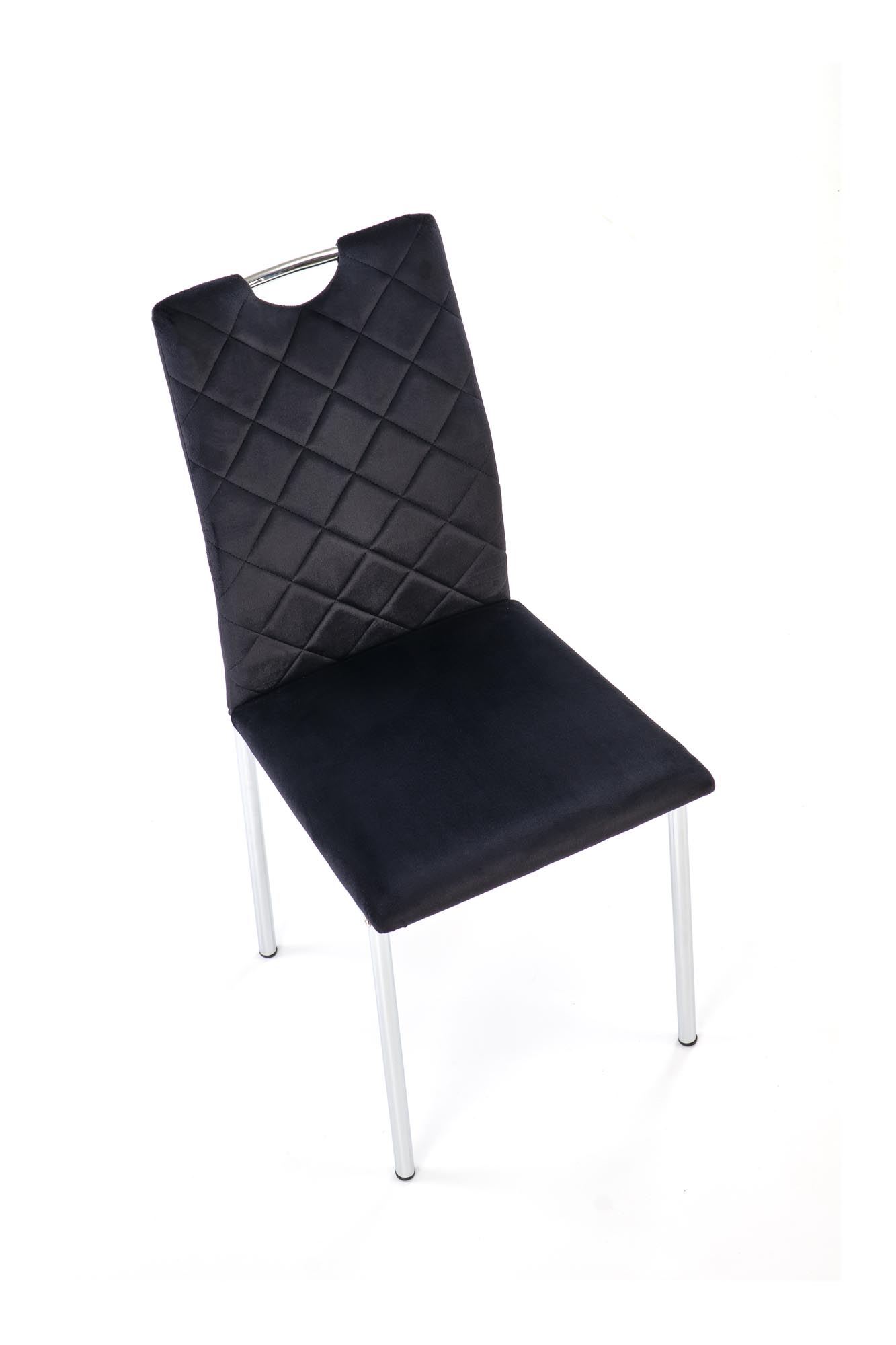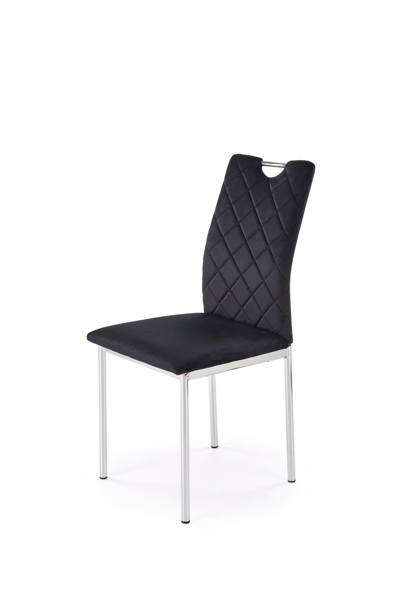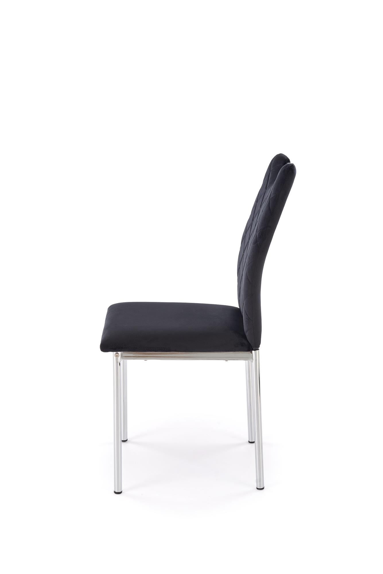Jídelní židle K578 - je elegantní židle vyrobena v kombinaci chromované oceli a pohodlného sedáku a opěráku čalouněným v černé, na dotek sametové látky HLR 66.