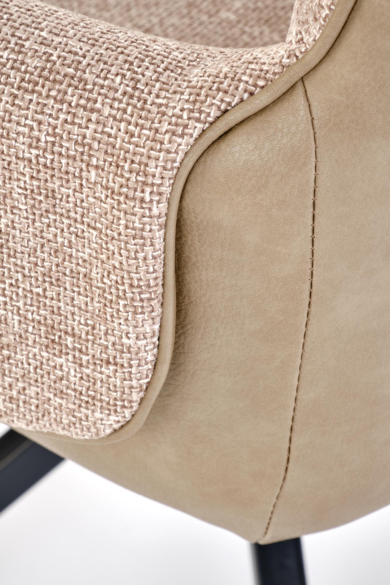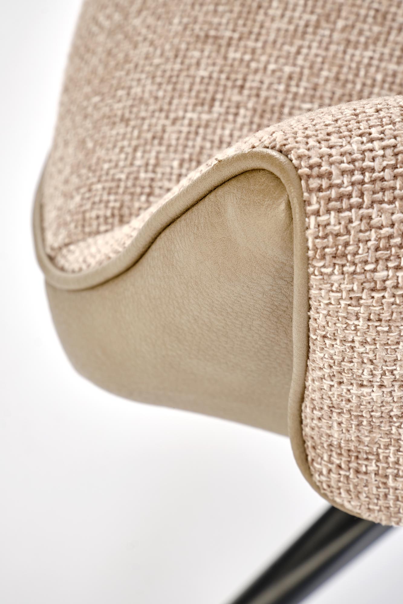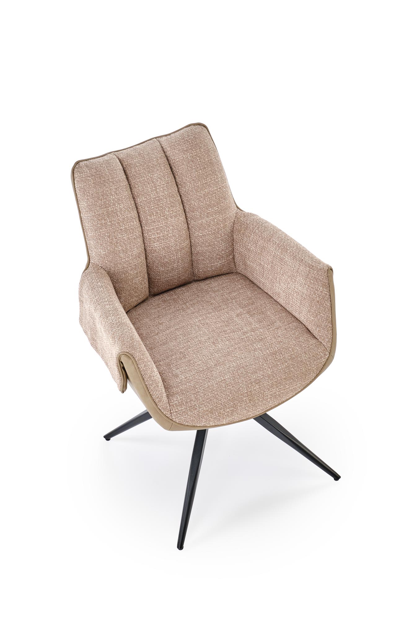 Jídelní židle K579 - je elegantní otočná židle vyrobena v kombinaci práškově lakované oceli a sedáku čalouněném v hnědé, potahové látce a eko kůže.