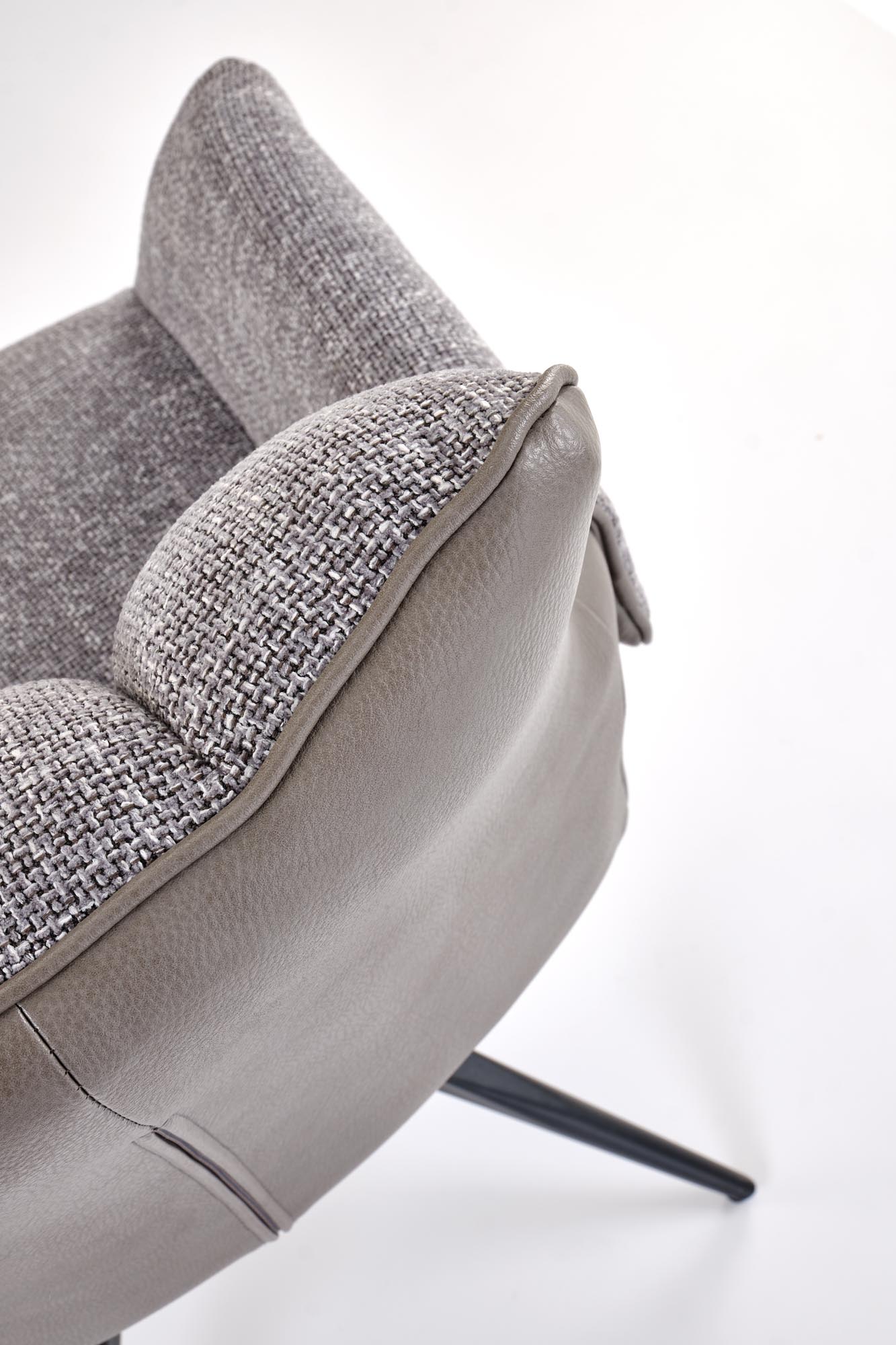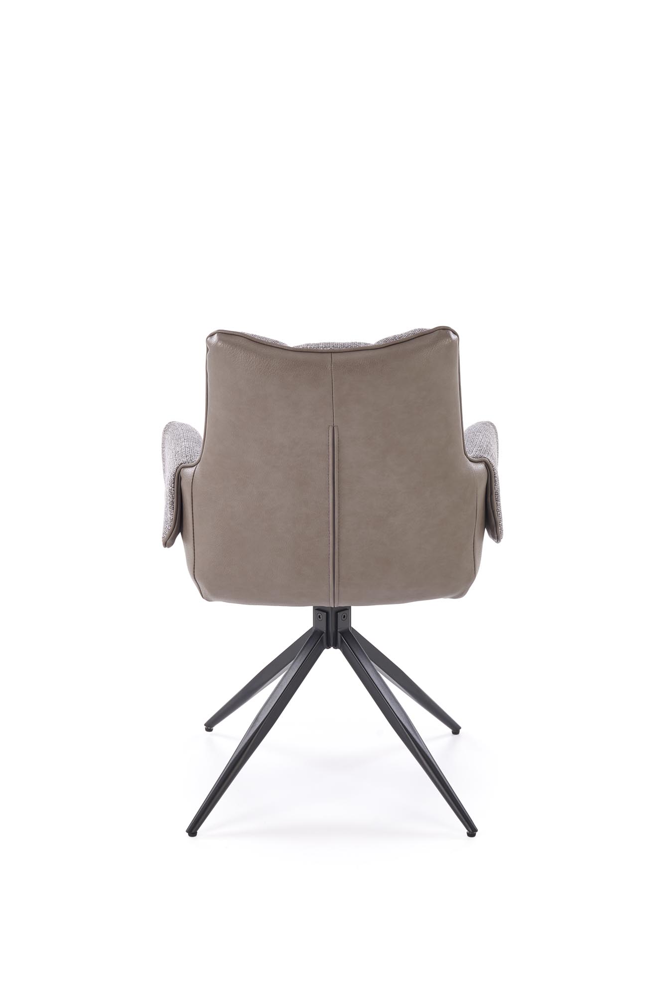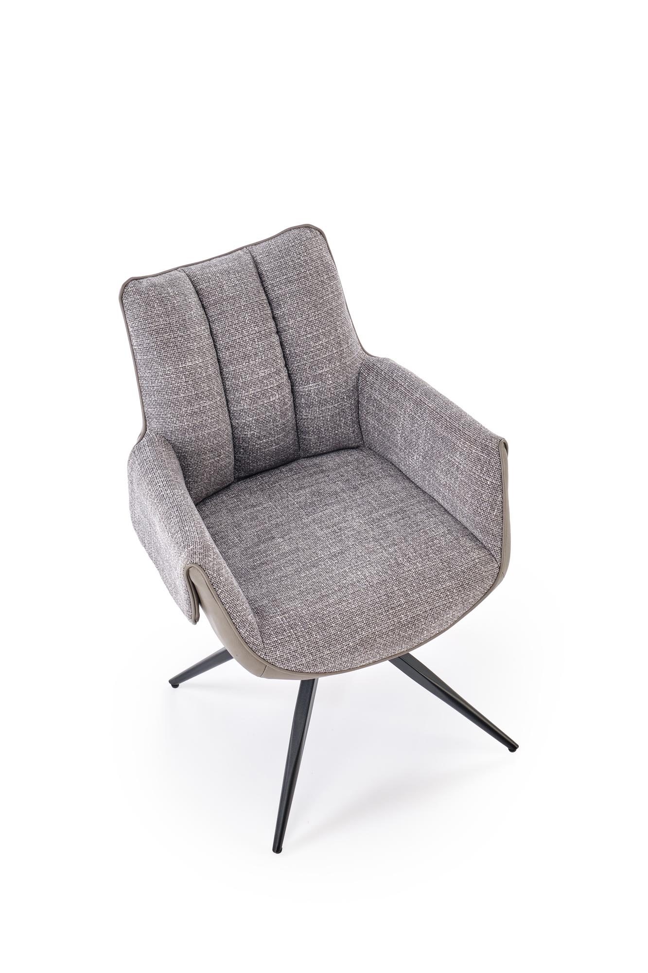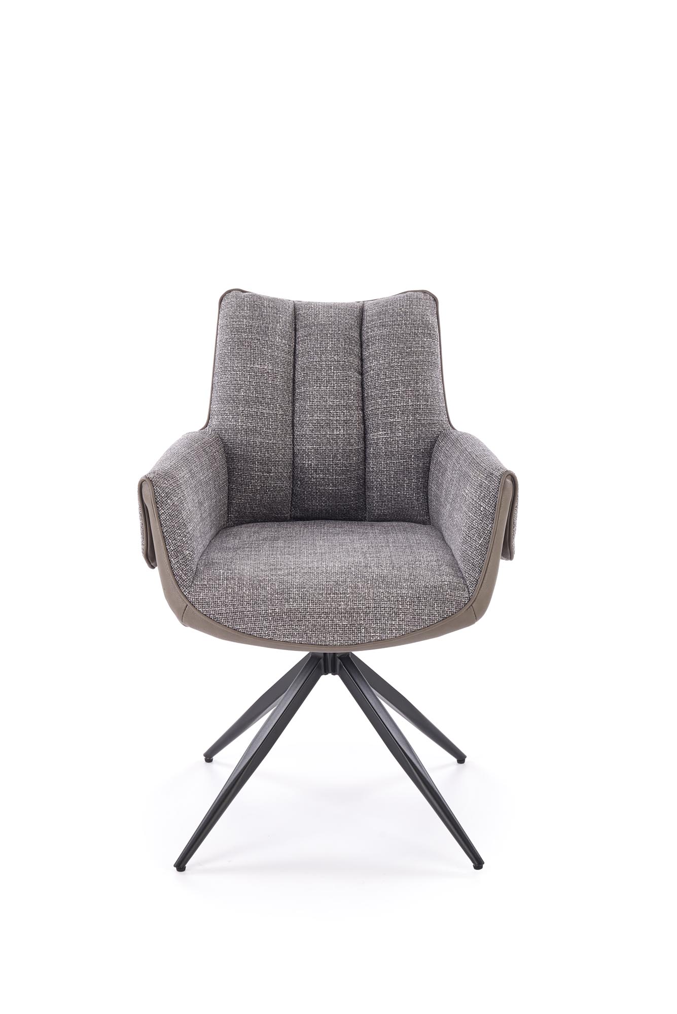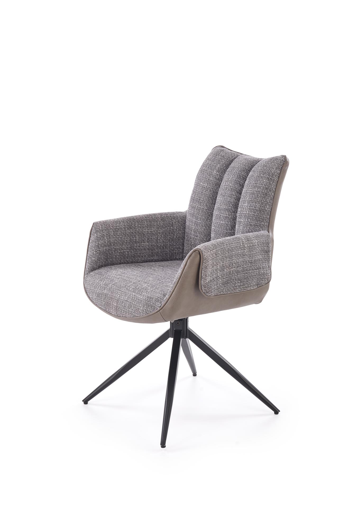 Jídelní židle K579 - je elegantní otočná židle vyrobena v kombinaci práškově lakované oceli a sedáku čalouněném v šedé, potahové látce a eko kůže.