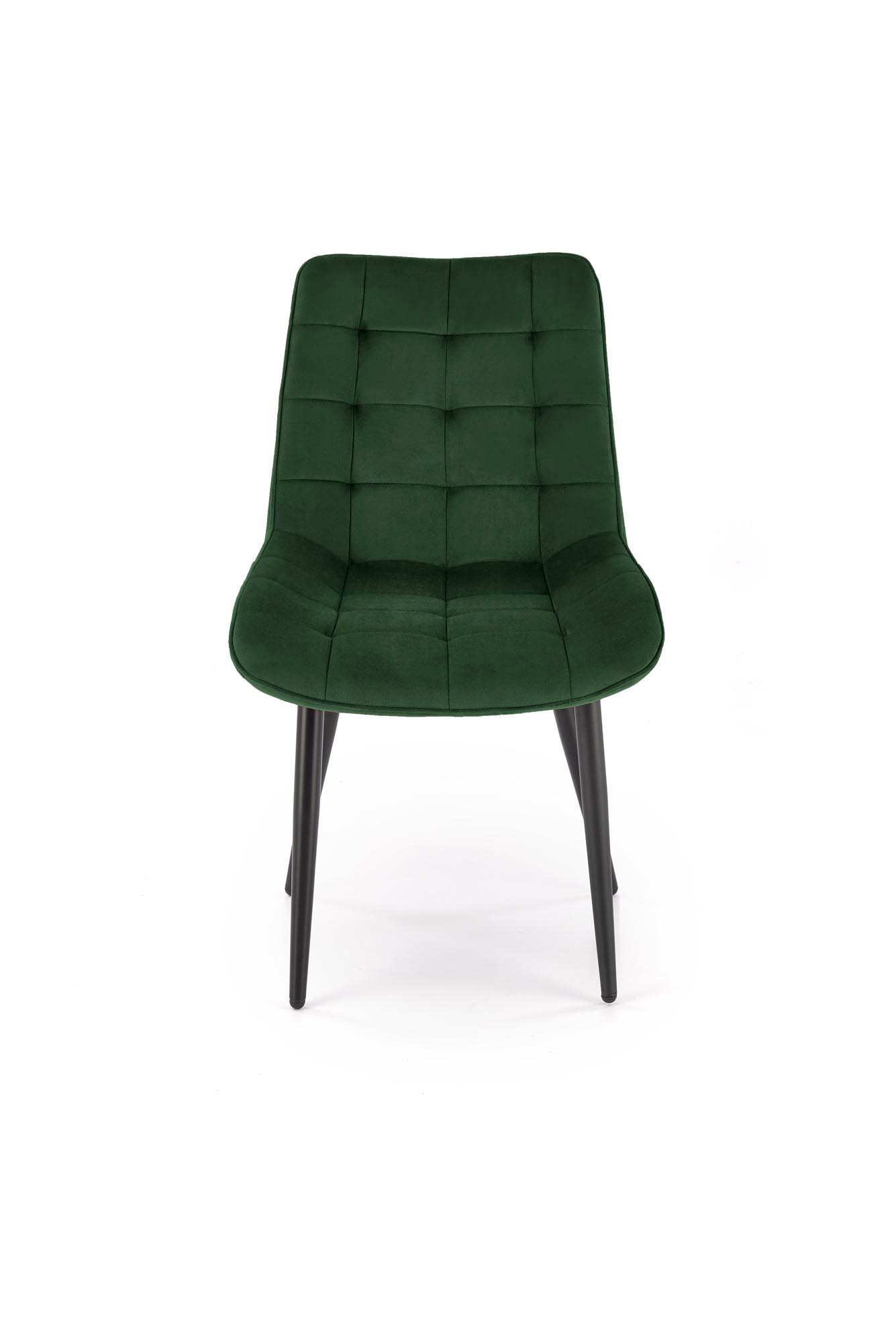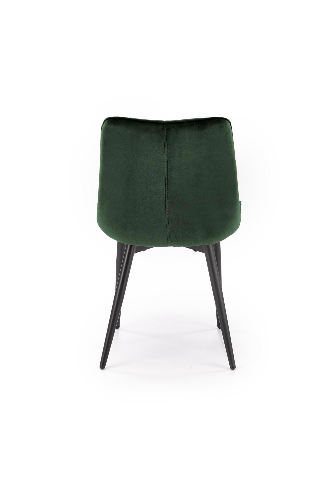 Jídelní židle K580 - je elegantní židle vyrobena v kombinaci lakované oceli v černé barvě a pohodlného sedáku a opěráku čalouněným v tmavě zelené, na dotek sametové látky HLR 57.