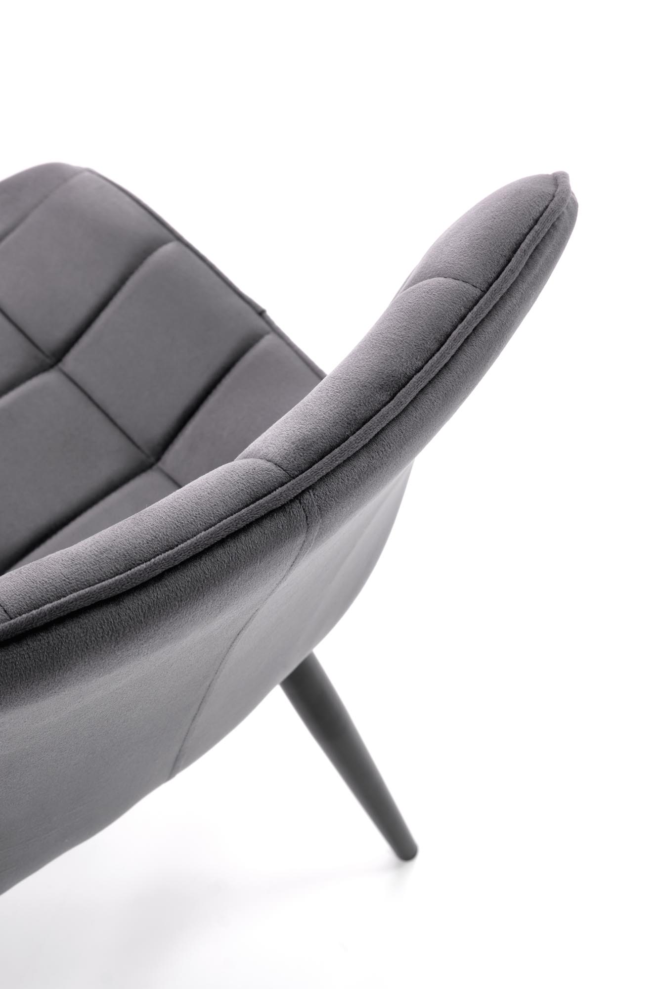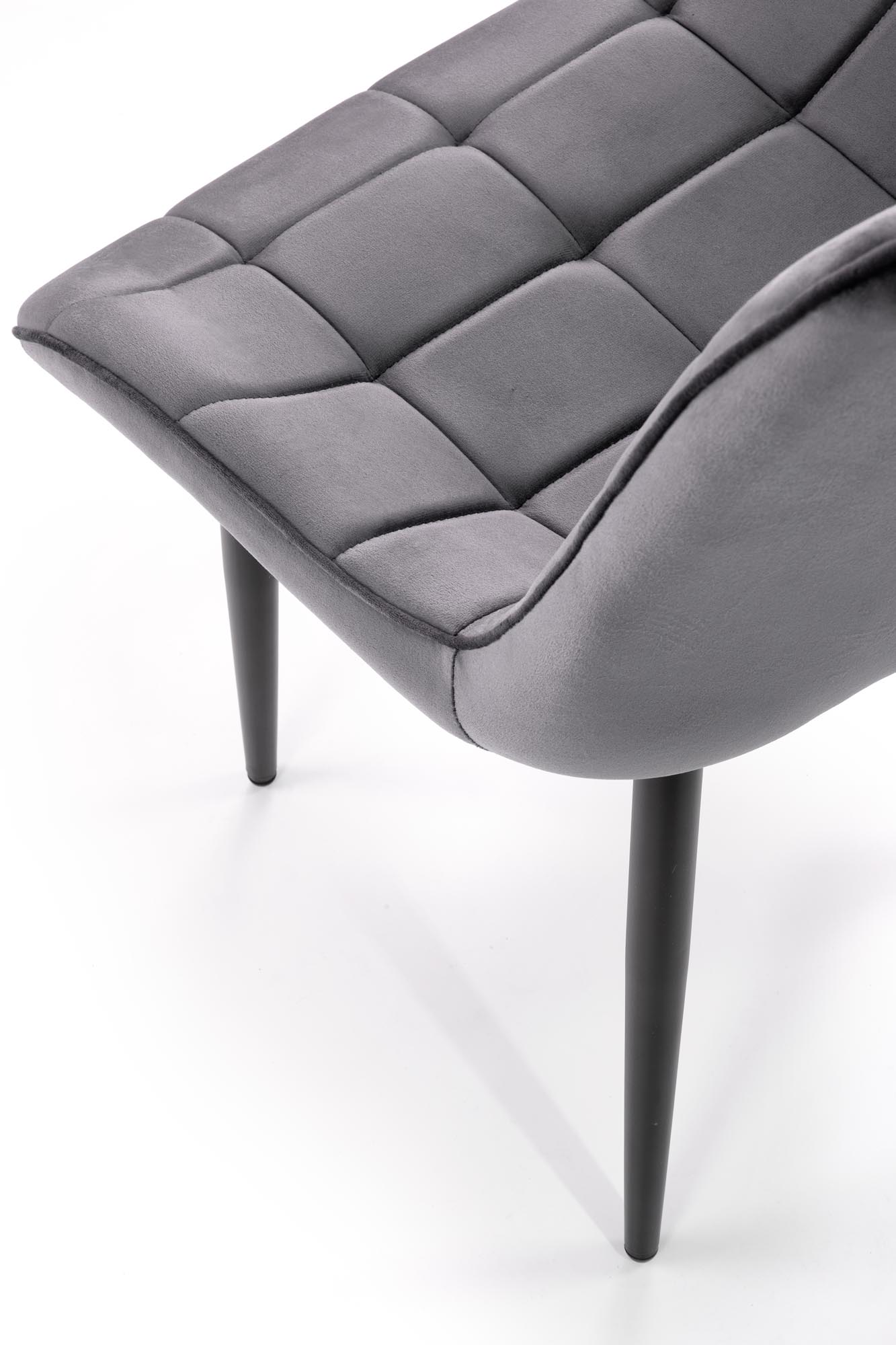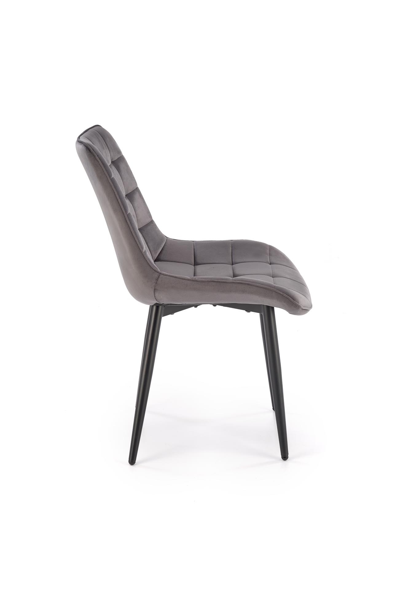 Jídelní židle K580 - je elegantní židle vyrobena v kombinaci lakované oceli v černé barvě a pohodlného sedáku a opěráku čalouněným v šedé, na dotek sametové látky HLR 21.