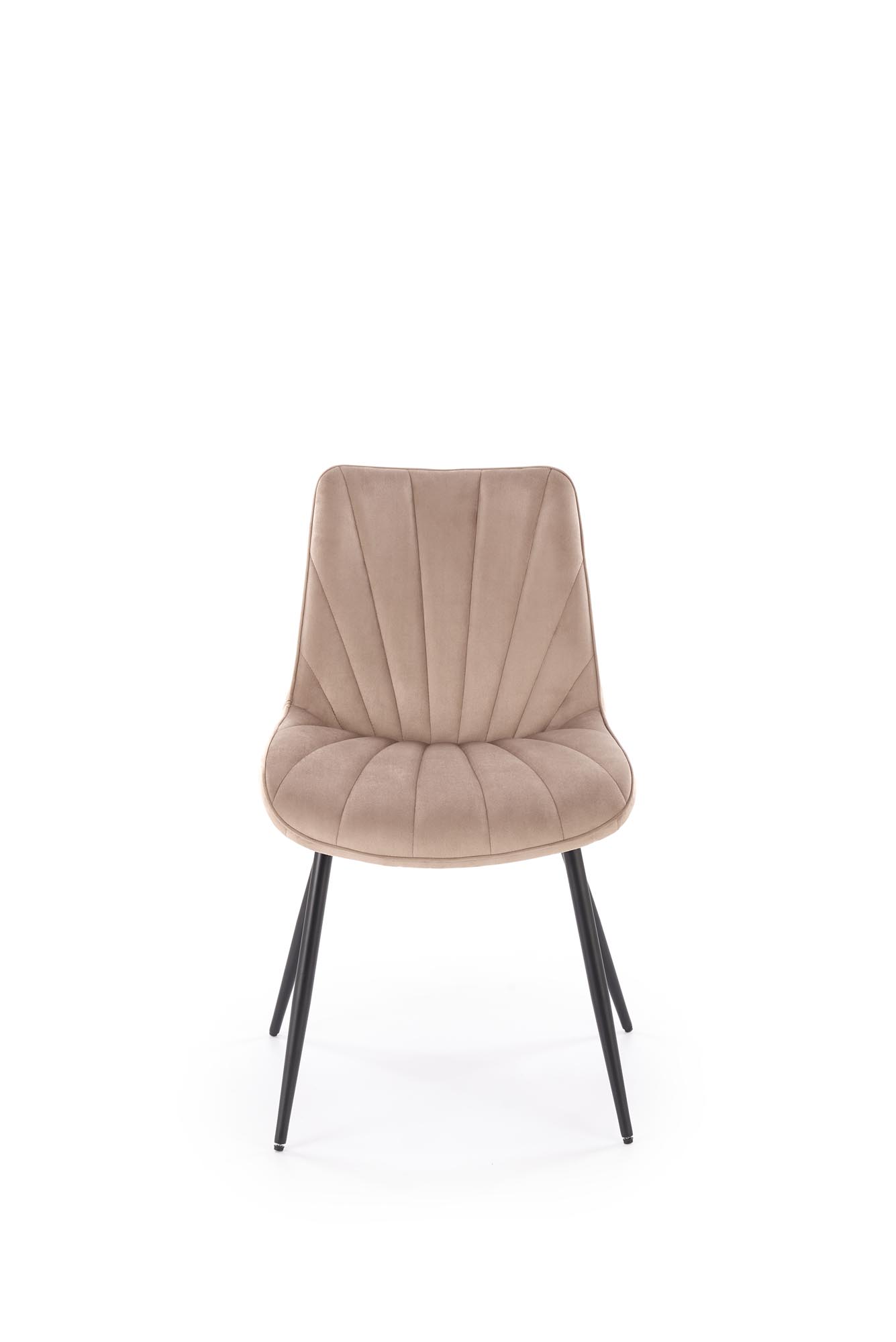 Jídelní židle K589 - je elegantní židle vyrobena v kombinaci lakované oceli v černé barvě a pohodlného sedáku a opěráku čalouněným v béžové, na dotek sametové látky BLUVEL 40.