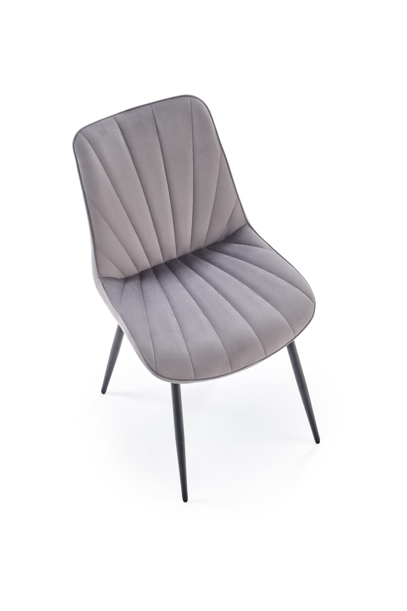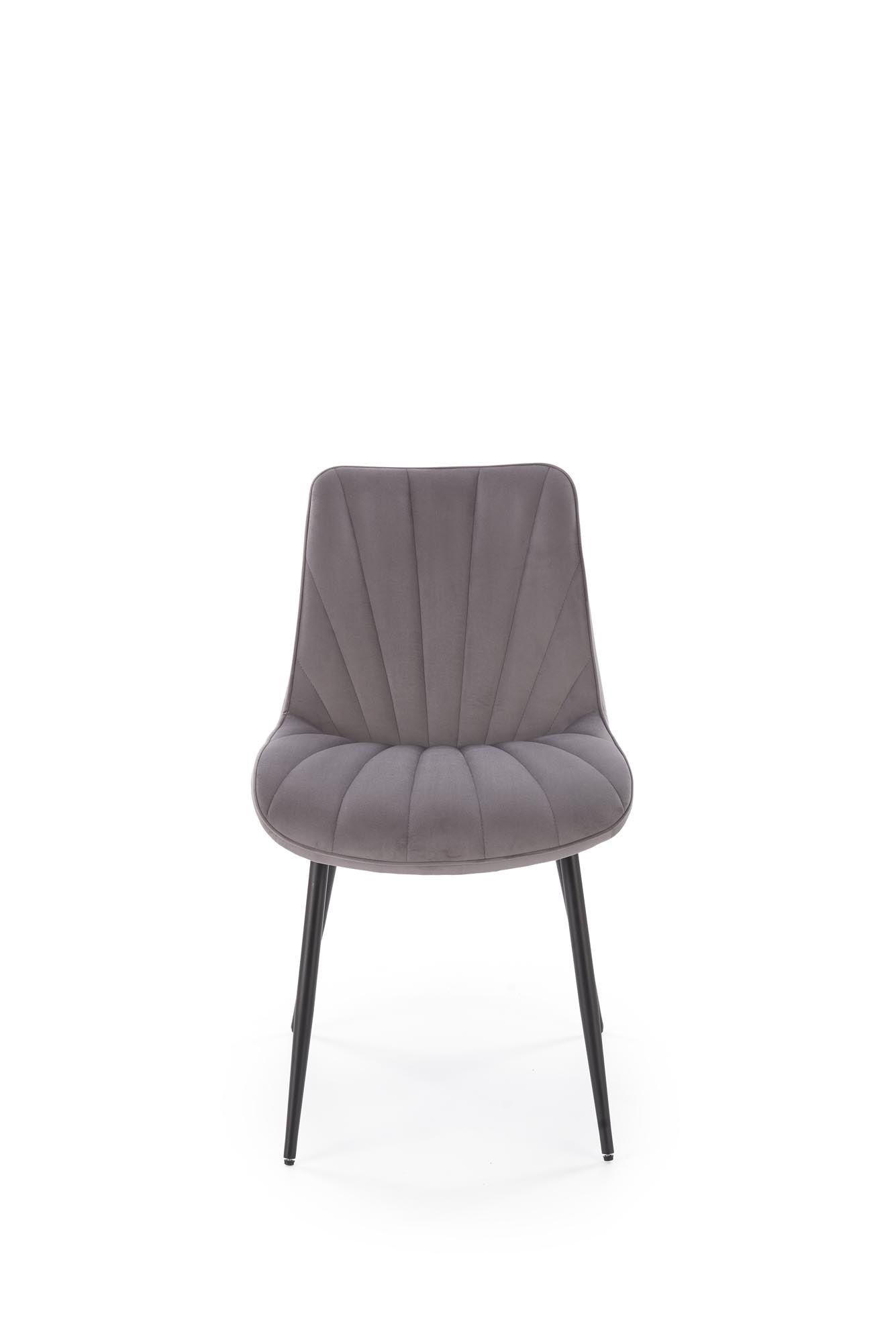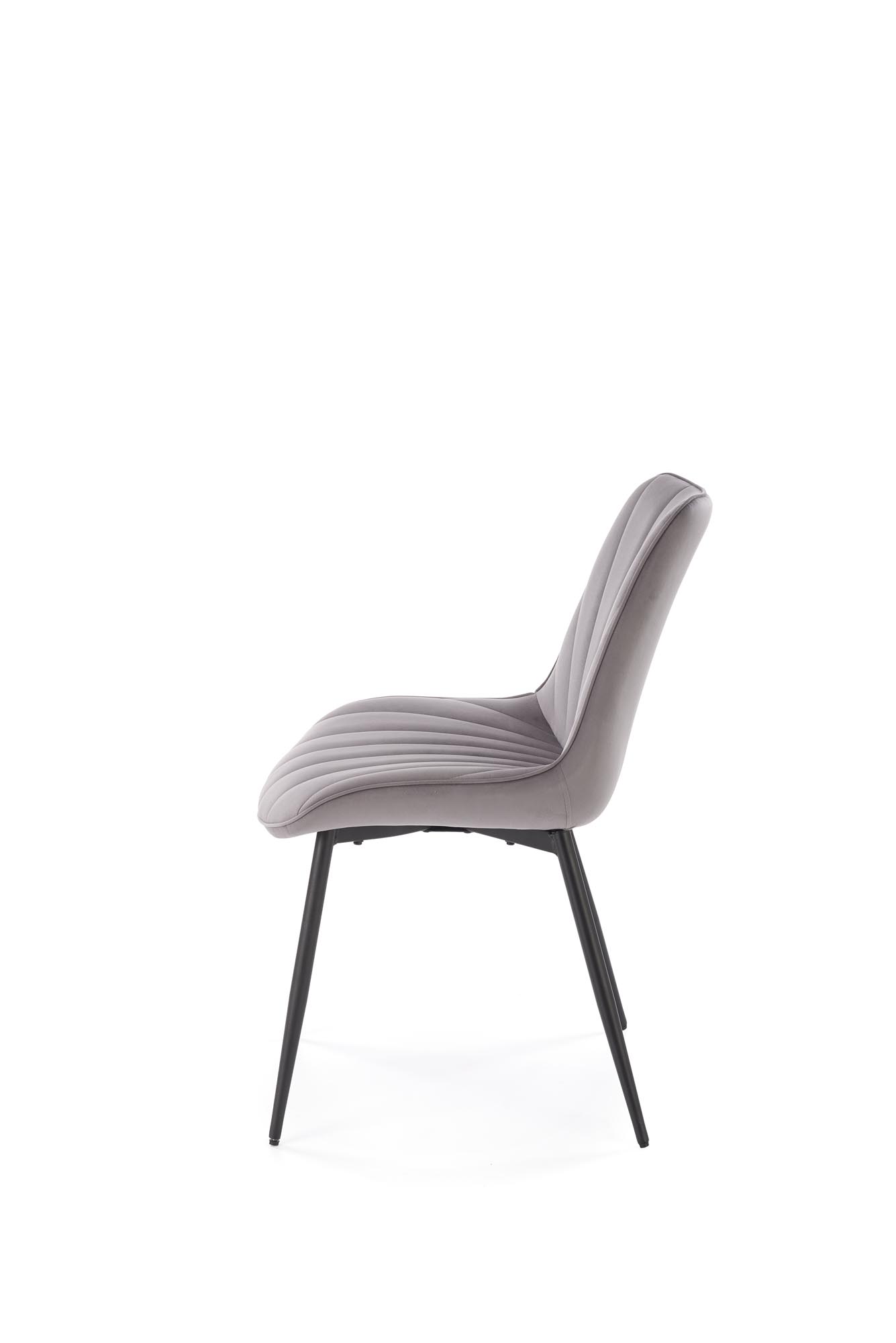 Jídelní židle K589 - je elegantní židle vyrobena v kombinaci lakované oceli v černé barvě a pohodlného sedáku a opěráku čalouněným v šedé, na dotek sametové látky BLUVEL 14.