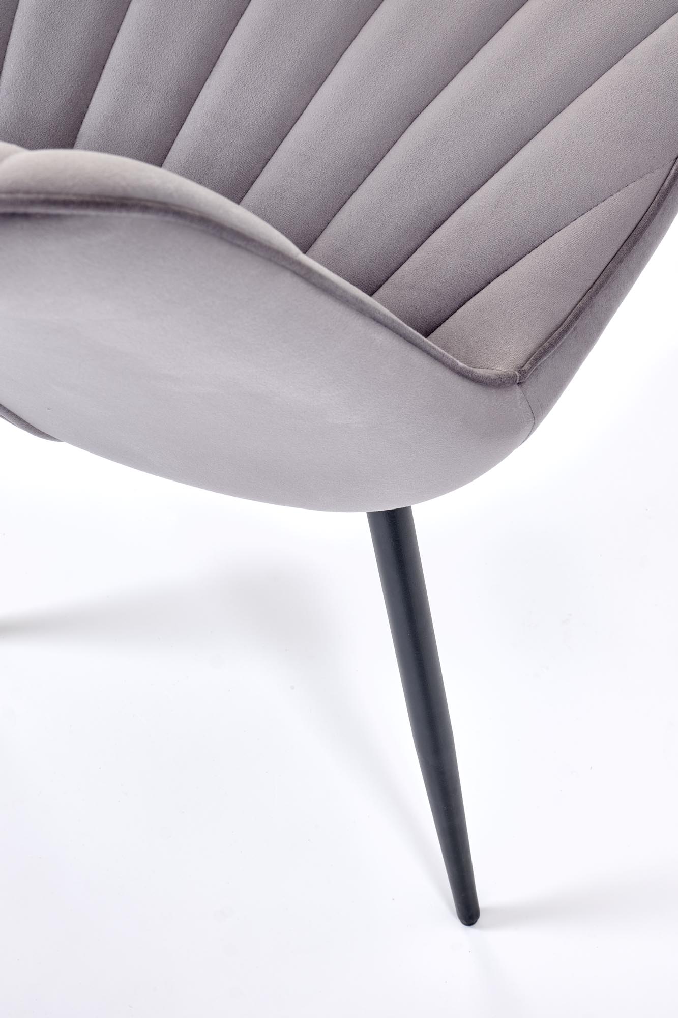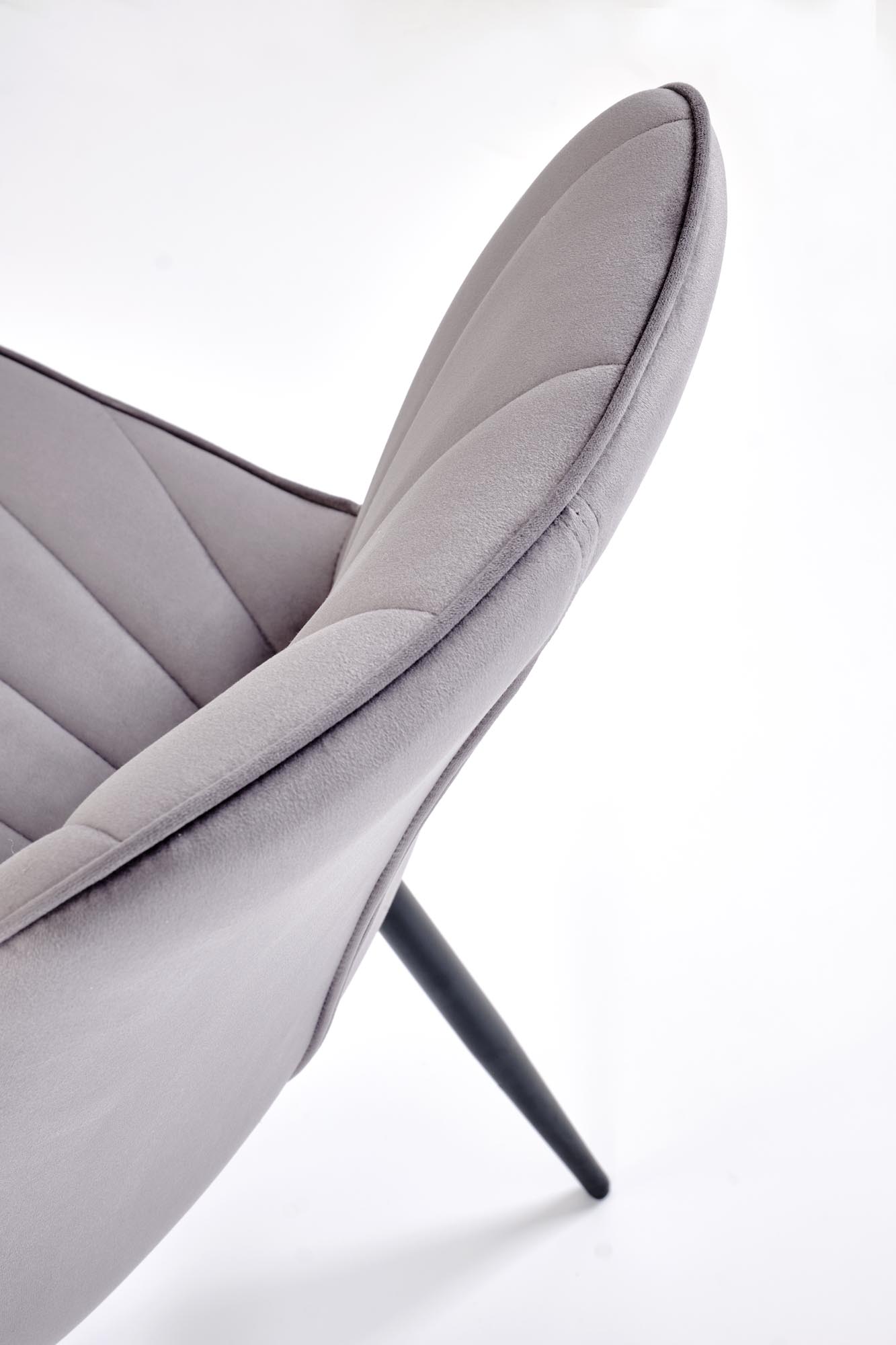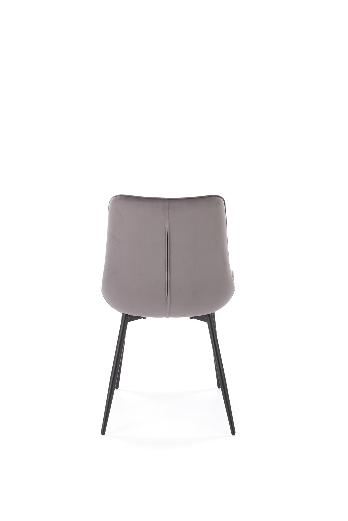 Jídelní židle K589 - je elegantní židle vyrobena v kombinaci lakované oceli v černé barvě a pohodlného sedáku a opěráku čalouněným v šedé, na dotek sametové látky BLUVEL 14.