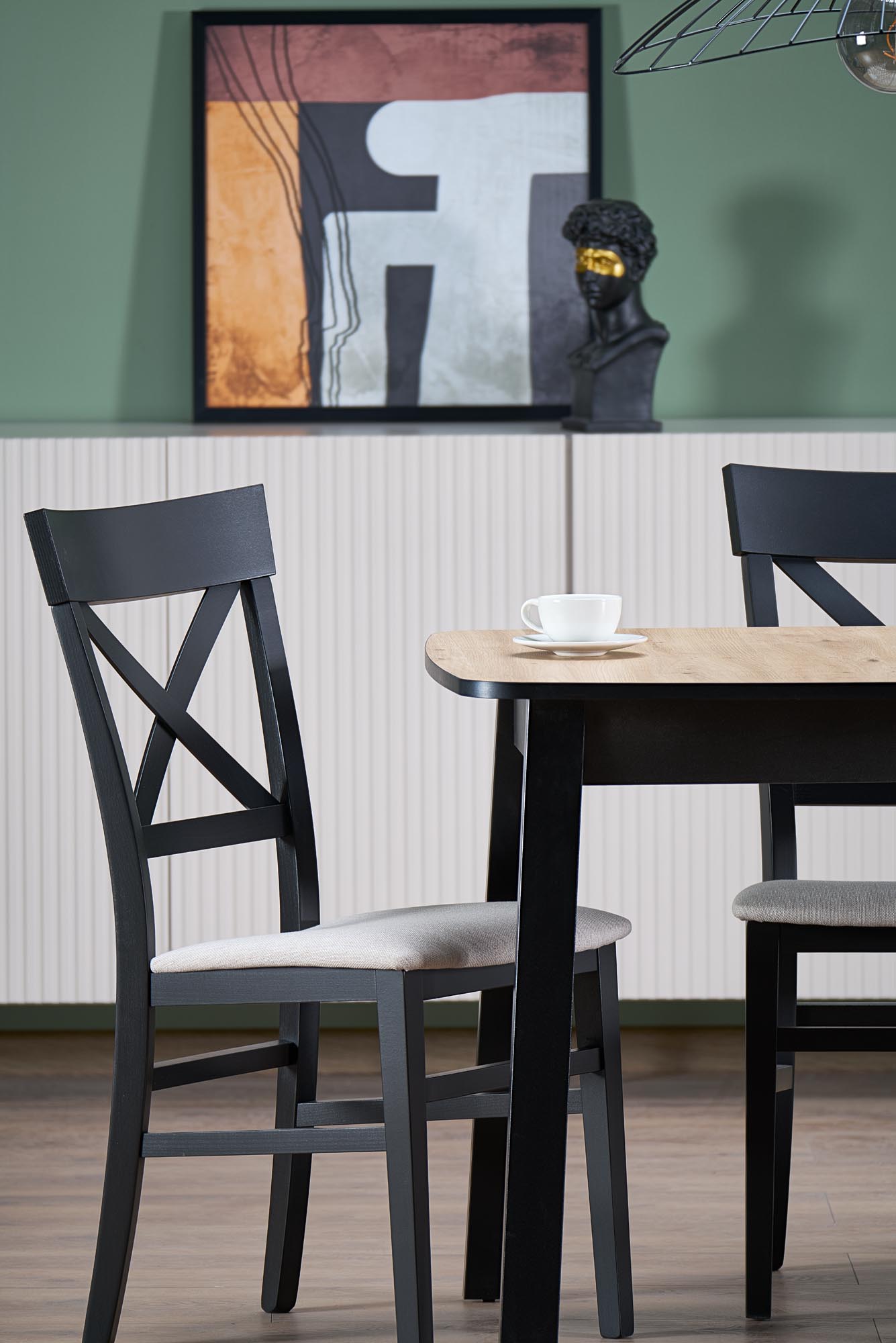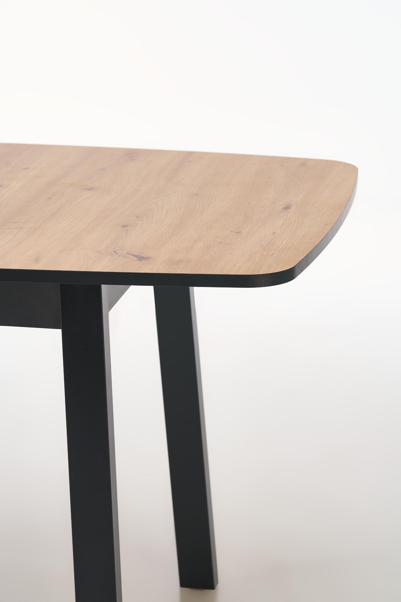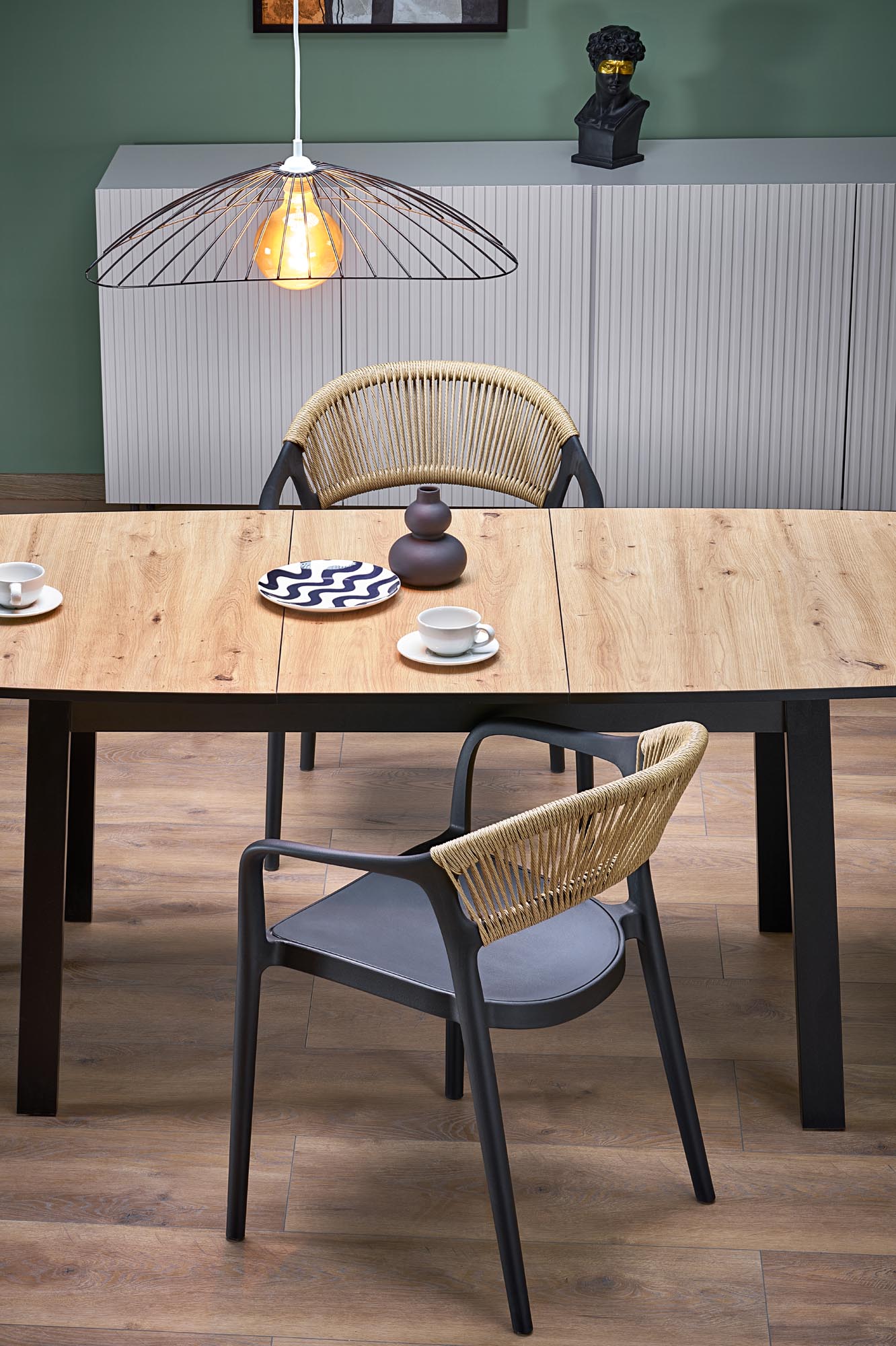 Jídelní stůl BARRIL - rozkládací jídelní stůl s deskou z laminované nábytkové desky v dekoru dubu artisan a nohami z MDF v černé dýze, který spojuje styl, praktičnost a moderní design.