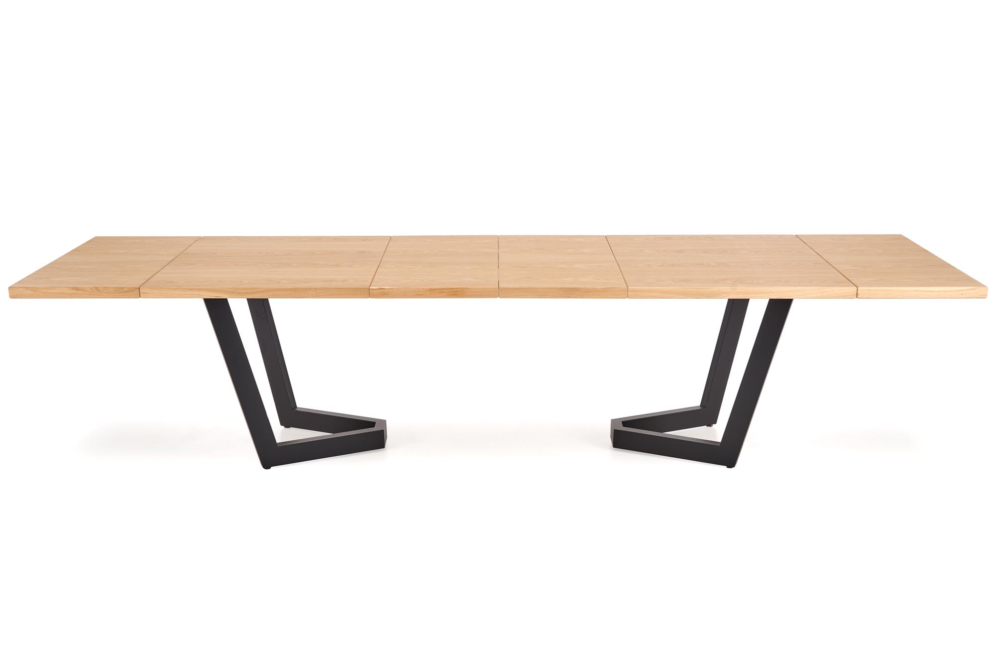 Jídelní stůl MASSIVE 2 - je moderní jídelní stůl vyroben v kombinaci dýhované desky s okraji v masivu a ocelovými černými nohami. Stůl je rozkládací a s přídavnými deskami 2 x 45 cm ho lze rozložit až na 340 x 90 cm.
