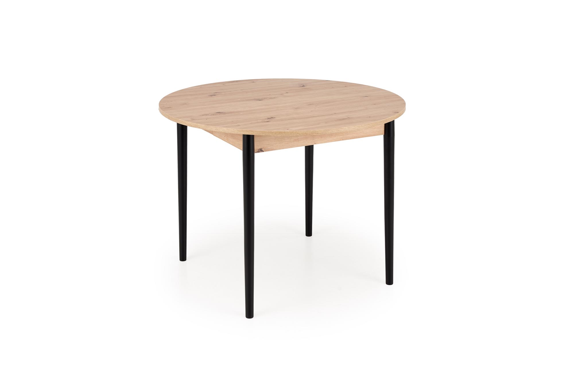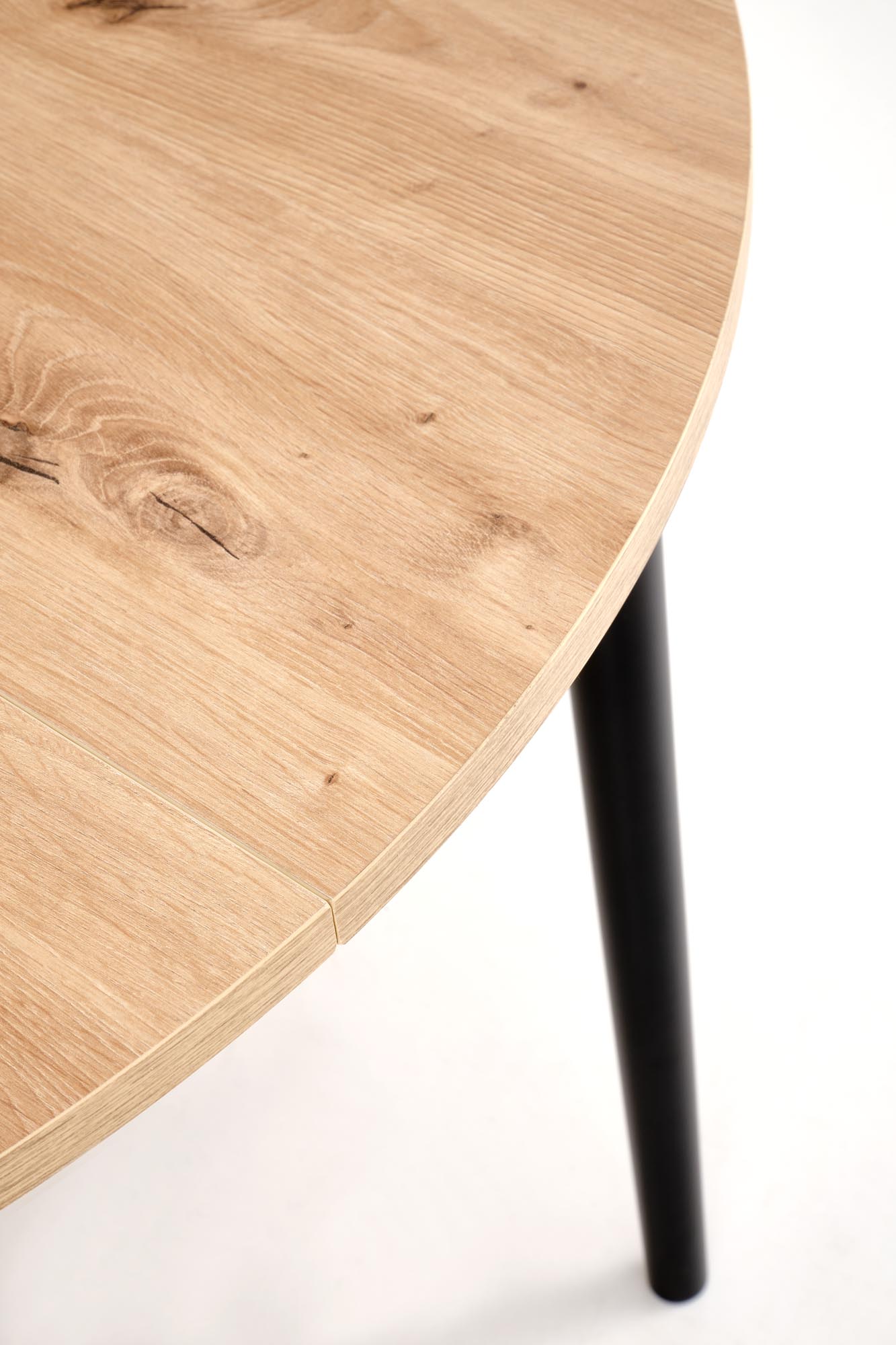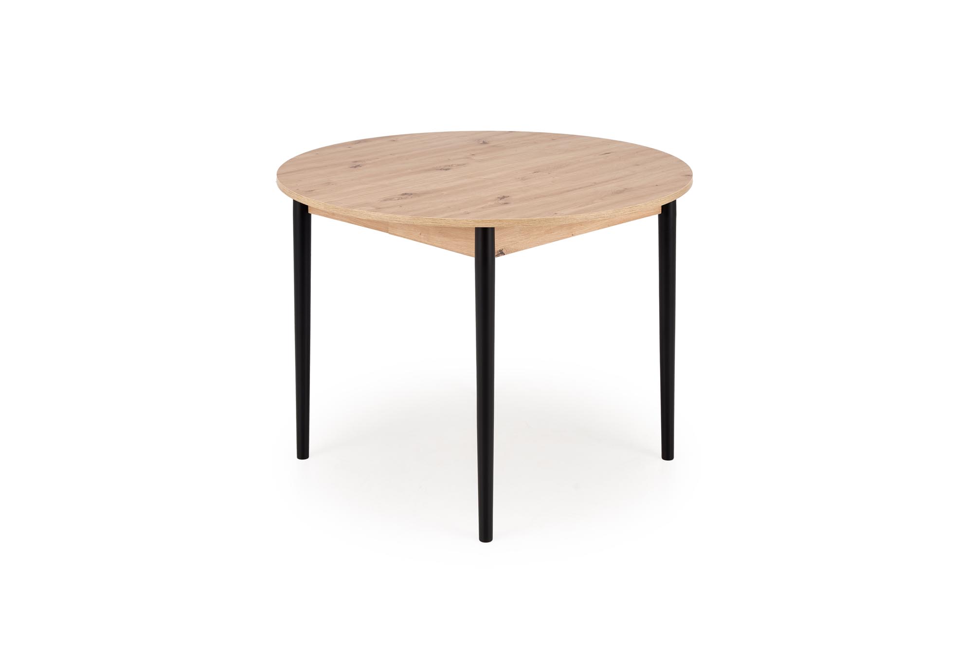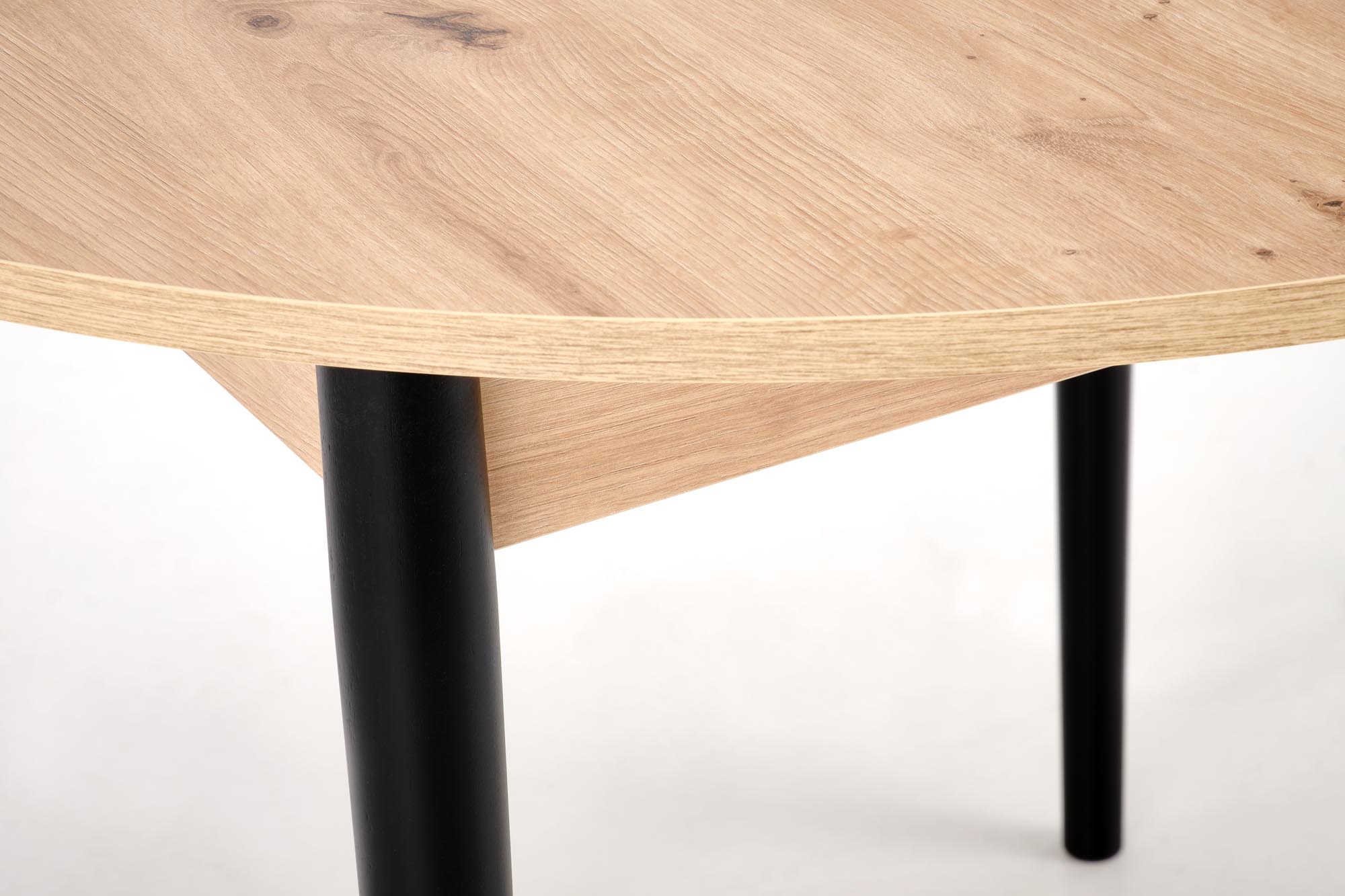 Jídelní stůl PIVOT - deska je vyrobena z laminované nábytkové desky v dekoru dub artisan, která nabízí moderní vzhled a snadnou údržbu. Stabilní nohy z masivního bukového dřeva v černém provedení dodávají stolu pevnost a elegantní kontrast.