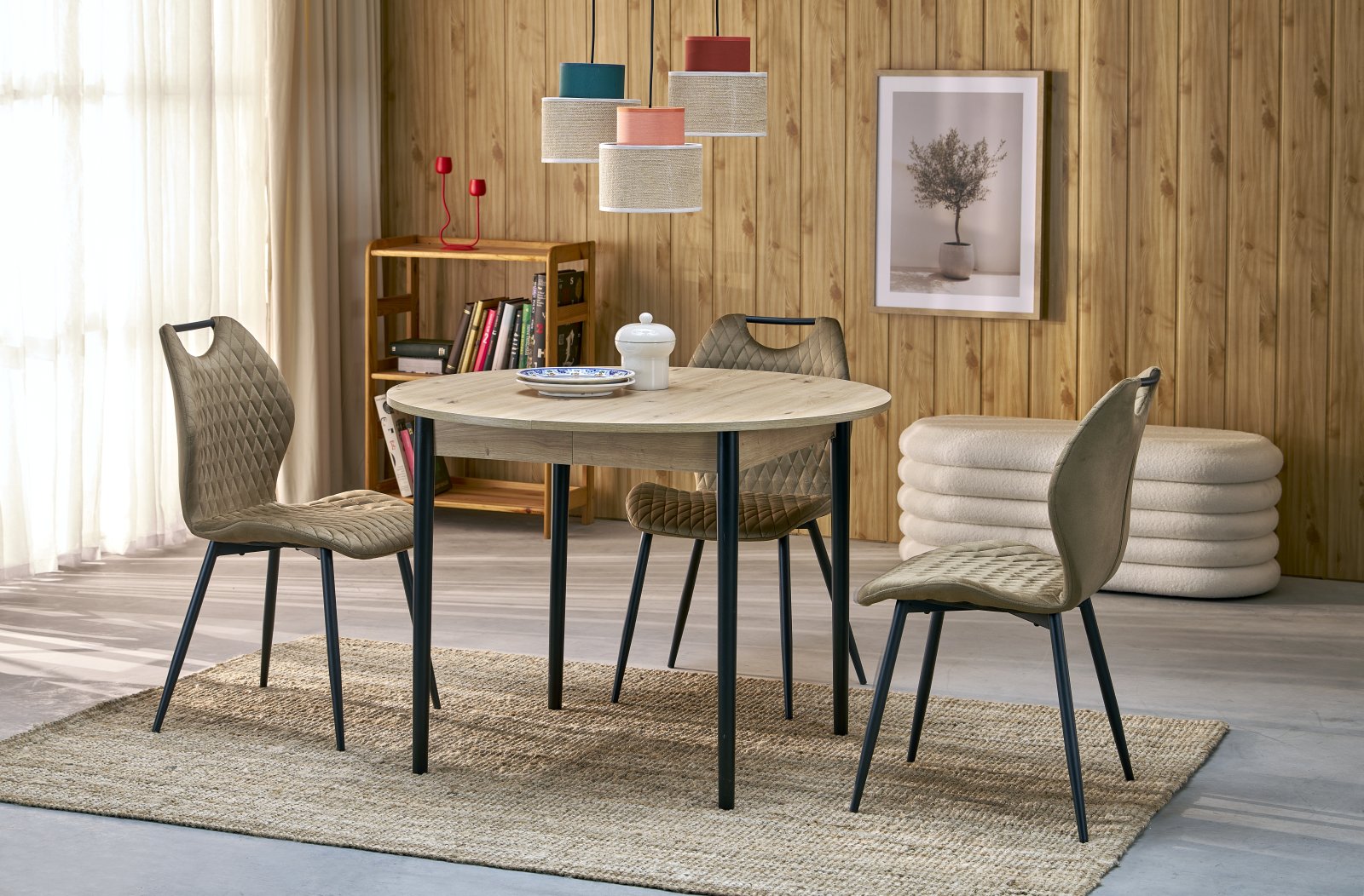 Jídelna je důležitým bodem domova, ve kterém se setkává celá rodina a přátelé, stojí za to věnovat se výběru vhodného stolu a investovat do něj. Kromě toho, že se jedná především o praktický kus nábytku, moderní jídelní stůl určuje celkový styl interiéru. Tento stůl je ideální do jídelny ale také do zasedacích místností. Moderní a čistý design mu dává elegantní a sofistikovaný vzhled. Jídelní stůl je vyrobený v dekoru dub artisan a nohy z masivního bukového dřeva černé barvy. Užijte si krásu bydlení bez kompromisu ohledně funkce.