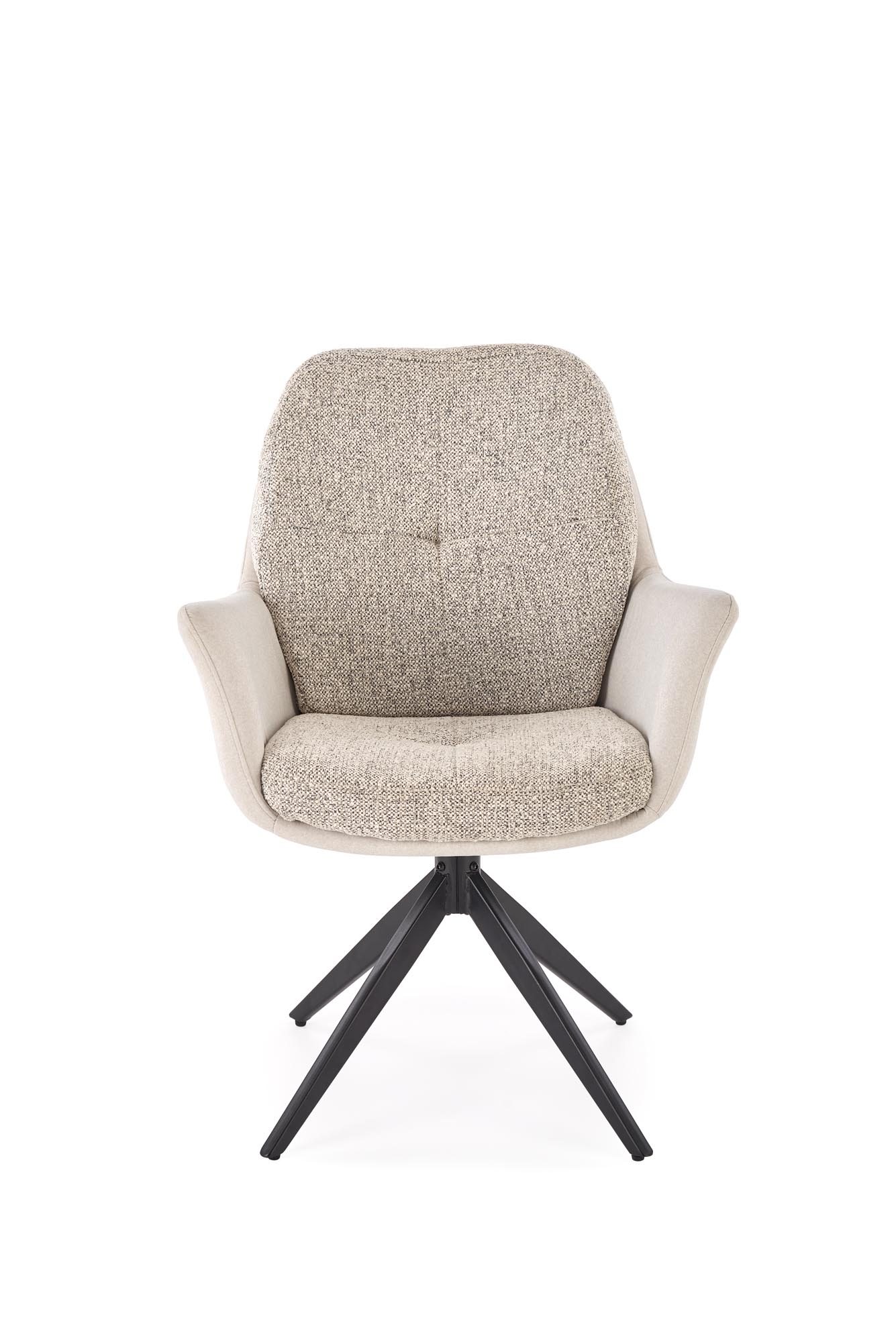 Otočná židle K591 spojuje moderní design s vysokým komfortem a stává se tak výrazným prvkem každého interiéru. Díky otočné funkci 180 stupňů poskytuje volnost pohybu, ať už u jídelního stolu, při práci nebo během chvílí odpočinku. Sedák a opěrák jsou potaženy měkkou látkou, která nejen potěší svým vzhledem, ale také zajistí příjemný zážitek při sezení. Stabilitu zajišťuje pevná ocelová podnož s práškovým nástřikem, která navíc přispívá k celkovému modernímu dojmu.