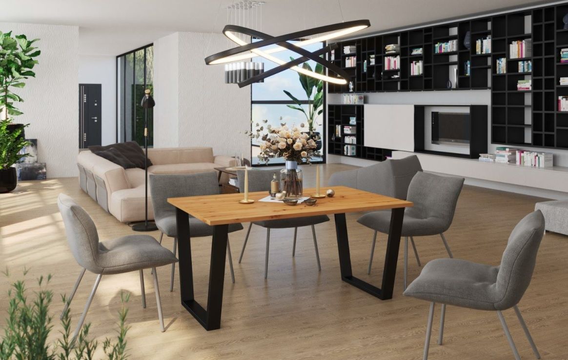 Jídelna je důležitým bodem domova, ve kterém se setkává celá rodina a přátelé, stojí za to věnovat se výběru vhodného stolu a investovat do něj. Kromě toho, že se jedná především o praktický kus nábytku, moderní jídelní stůl určuje celkový styl interiéru. Moderní a čistý design mu dává elegantní a sofistikovaný vzhled. Tento stůl je ideální do jídelny, ale také do zasedacích místností. U jídelního stolu můžou pohodlně stolovat 4 až 6 osob. Jídelní stůl je vyrobený z kombinaci černé lakované podnože v matném provedení a desky stolu vyrobené z kvalitního lamina v moderním barevném dekoru DUB ARTISAN. Užijte si krásnu bydlení bez kompromisu ohledně funkce.