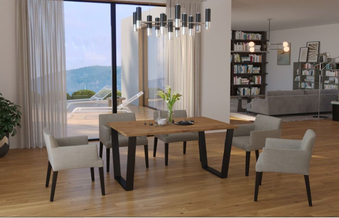 Jídelna je důležitým bodem domova, ve kterém se setkává celá rodina a přátelé, stojí za to věnovat se výběru vhodného stolu a investovat do něj. Kromě toho, že se jedná především o praktický kus nábytku, moderní jídelní stůl určuje celkový styl interiéru. Moderní a čistý design mu dává elegantní a sofistikovaný vzhled. Tento stůl je ideální do jídelny, ale také do zasedacích místností. U jídelního stolu můžou pohodlně stolovat 4 až 6 osob. Jídelní stůl je vyrobený z kombinaci černé lakované podnože v matném provedení a desky stolu vyrobené z kvalitního lamina v moderním barevném dekoru DUB LANCELOT. Užijte si krásnu bydlení bez kompromisu ohledně funkce.