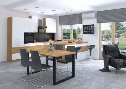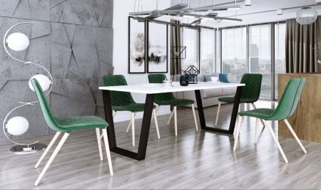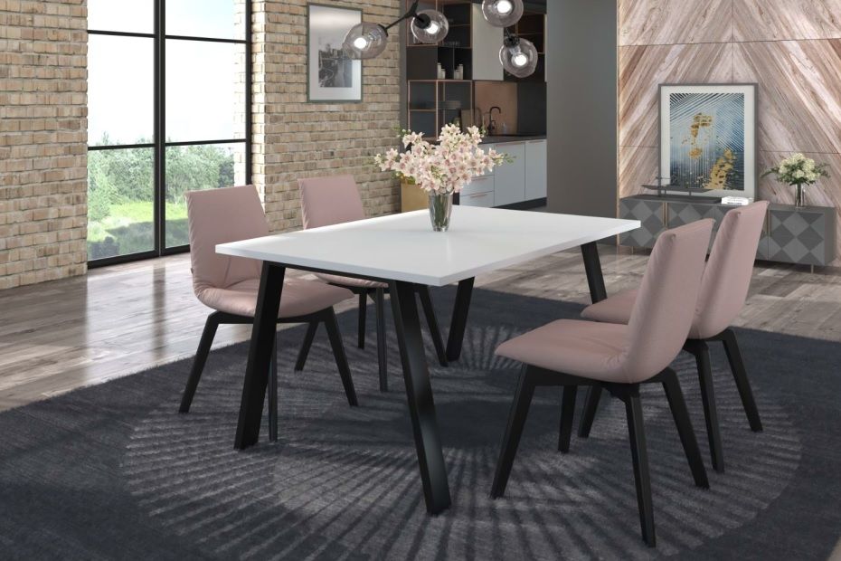 Jídelna je důležitým bodem domova, ve kterém se setkává celá rodina a přátelé, stojí za to věnovat se výběru vhodného stolu a investovat do něj. Kromě toho, že se jedná především o praktický kus nábytku, moderní jídelní stůl určuje celkový styl interiéru. Moderní a čistý design mu dává elegantní a sofistikovaný vzhled. Tento stůl je ideální do jídelny, ale také do zasedacích místností. U jídelního stolu můžou pohodlně stolovat až 4 osoby. Jídelní stůl je vyrobený z kombinaci černé lakované podnože v matném provedení a desky stolu vyrobené z kvalitního lamina v moderním bílém barevném dekoru. Užijte si krásnu bydlení bez kompromisu ohledně funkce.
