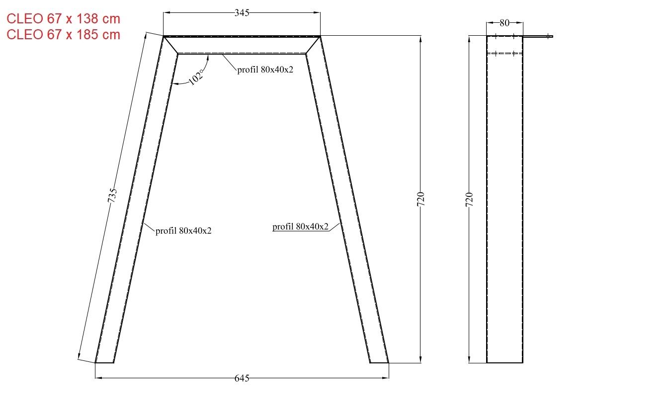 | šířka 185 cm / hloubka 67 cm / výška 75 cm | hmotnost 45 kg |