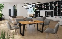 Jídelna je důležitým bodem domova, ve kterém se setkává celá rodina a přátelé, stojí za to věnovat se výběru vhodného stolu a investovat do něj. Kromě toho, že se jedná především o praktický kus nábytku, moderní jídelní stůl určuje celkový styl interiéru. Moderní a čistý design mu dává elegantní a sofistikovaný vzhled. Tento stůl je ideální do jídelny, ale také do zasedacích místností. U jídelního stolu můžou pohodlně stolovat 4 až 6 osob. Jídelní stůl je vyrobený z kombinaci černé lakované podnože v matném provedení a desky stolu vyrobené z kvalitního lamina v moderním barevném dekoru DUB ARTISAN. Užijte si krásnu bydlení bez kompromisu ohledně funkce.