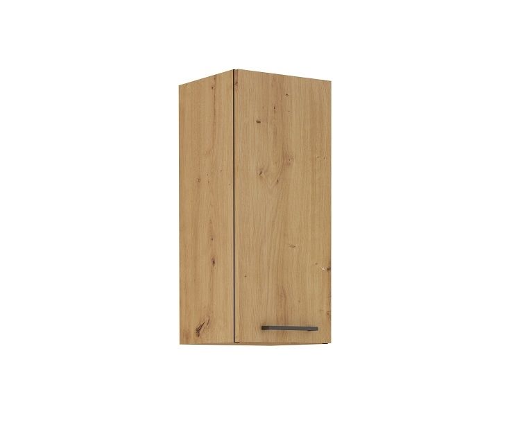 Horní otevírací skříňka ze systému MODERNA - skříňka do kuchyňské linky je uzavíratelná praktickými dvířky se širokým úchytem. Korpus i dvířka skřínky jsou provedené v moderním dekoru dub Artisan.