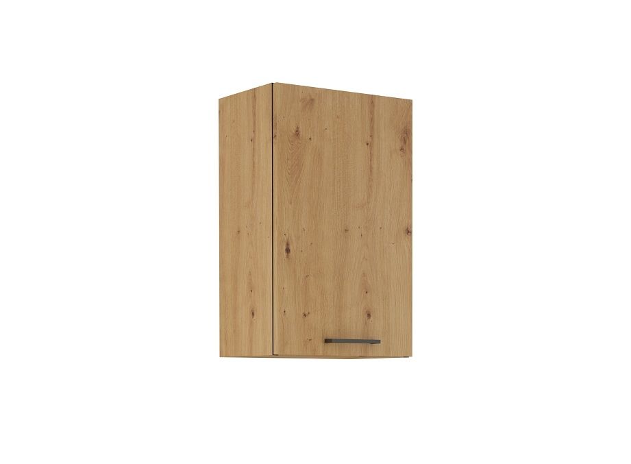 Horní otevírací skříňka ze systému MODERNA - skříňka do kuchyňské linky je uzavíratelná praktickými dvířky se širokým úchytem. Korpus i dvířka skřínky jsou provedené v moderním dekoru dub Artisan.