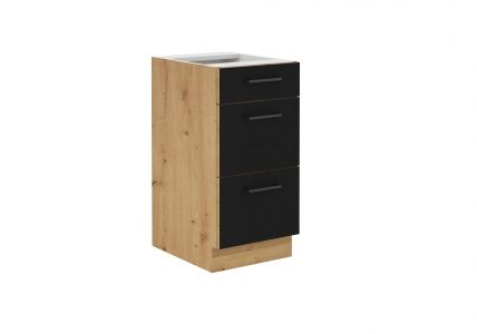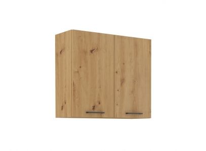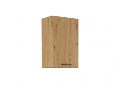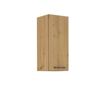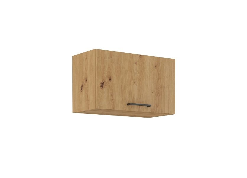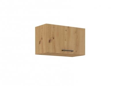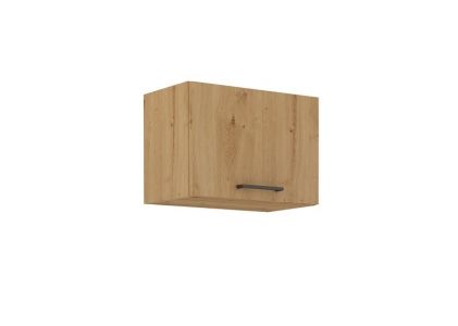 Horní otevírací skříňka na digestoř ze systému MODERNA - skříňka do kuchyňské linky je uzavíratelná praktickými dvířky se širokým plastovým úchytem. Dvířka skříněk a korpus jsou v barevném dekoru dub Artisan.