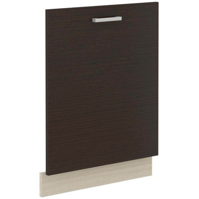 Dvířka na myčku ze systému CHAMONI - dvířka na myčku s širokým úchytem. Dvířka jsou vyrobené v moderní barevné kombinaci: sokl dub Ferrara a čelo v dekoru Legno tmavý.