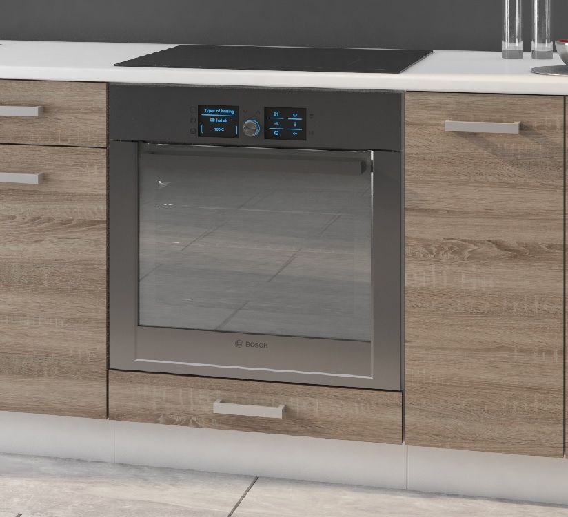Spodní skřínka na vestavnou troubu ze systému DAFE - skříňka do kuchyňské linky DFE je vyrobena v moderní kombinaci: čelo v dekoru dub sonoma trufel a bílý korpus.