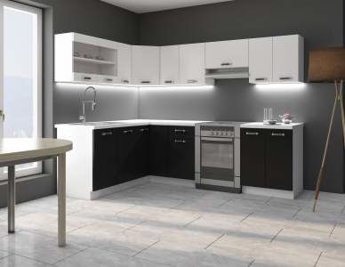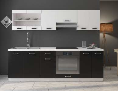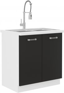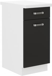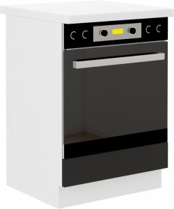 Spodní skříňka na vestavnou troubu ze systému OMEGGA - skříňka do kuchyňské linky je vyrobena v moderní barevné kombinaci: dvířka černá a korpus bílý.