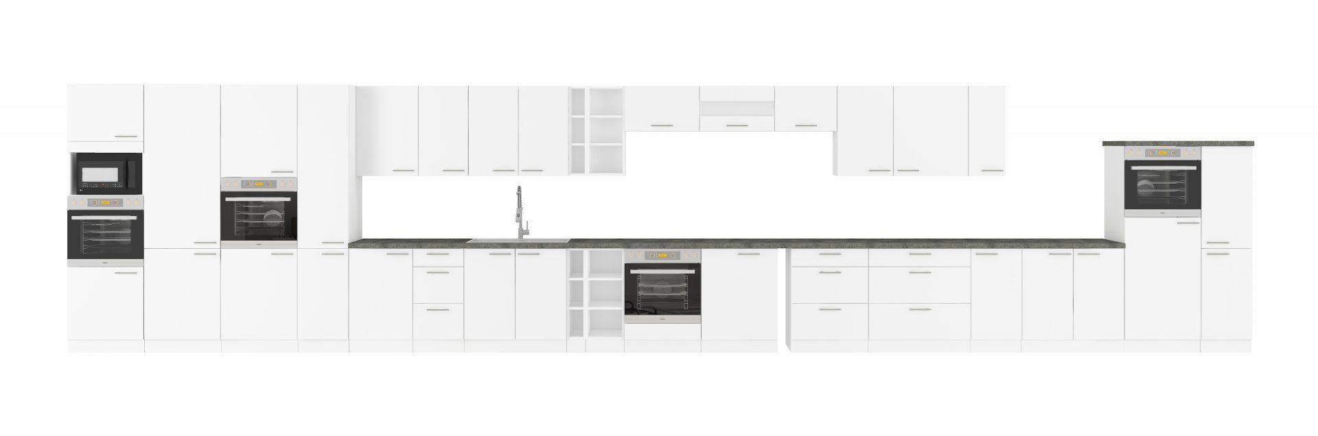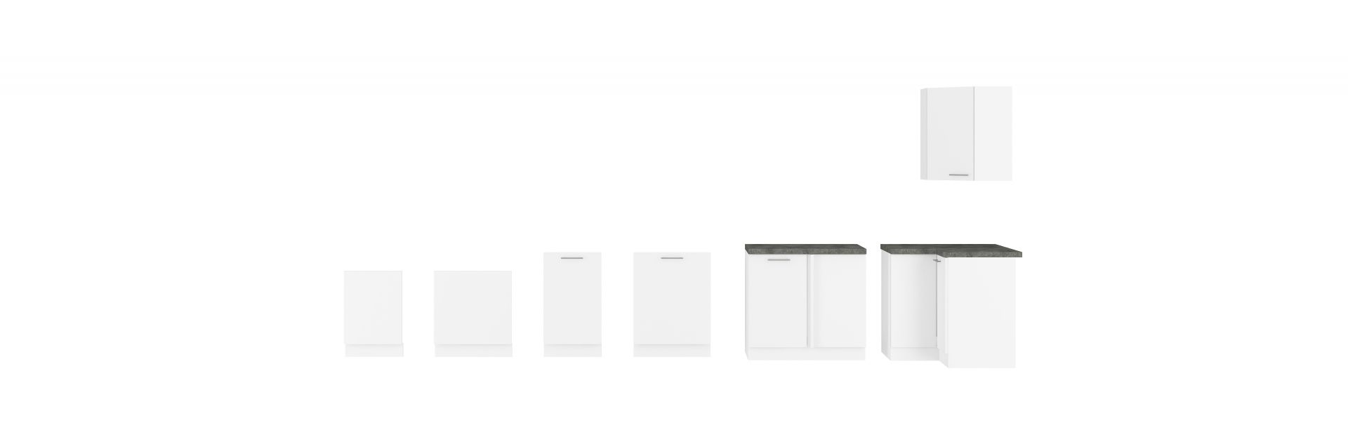 Spodní skříňka ze systému LARA WHITE - skříňka do kuchyňské linky je vybavena dvířky s širokými kovovými úchyty. Dvířka skříněk jsou vyrobeny v bílém lesklém provedení v kombinaci s bílým korpusem.