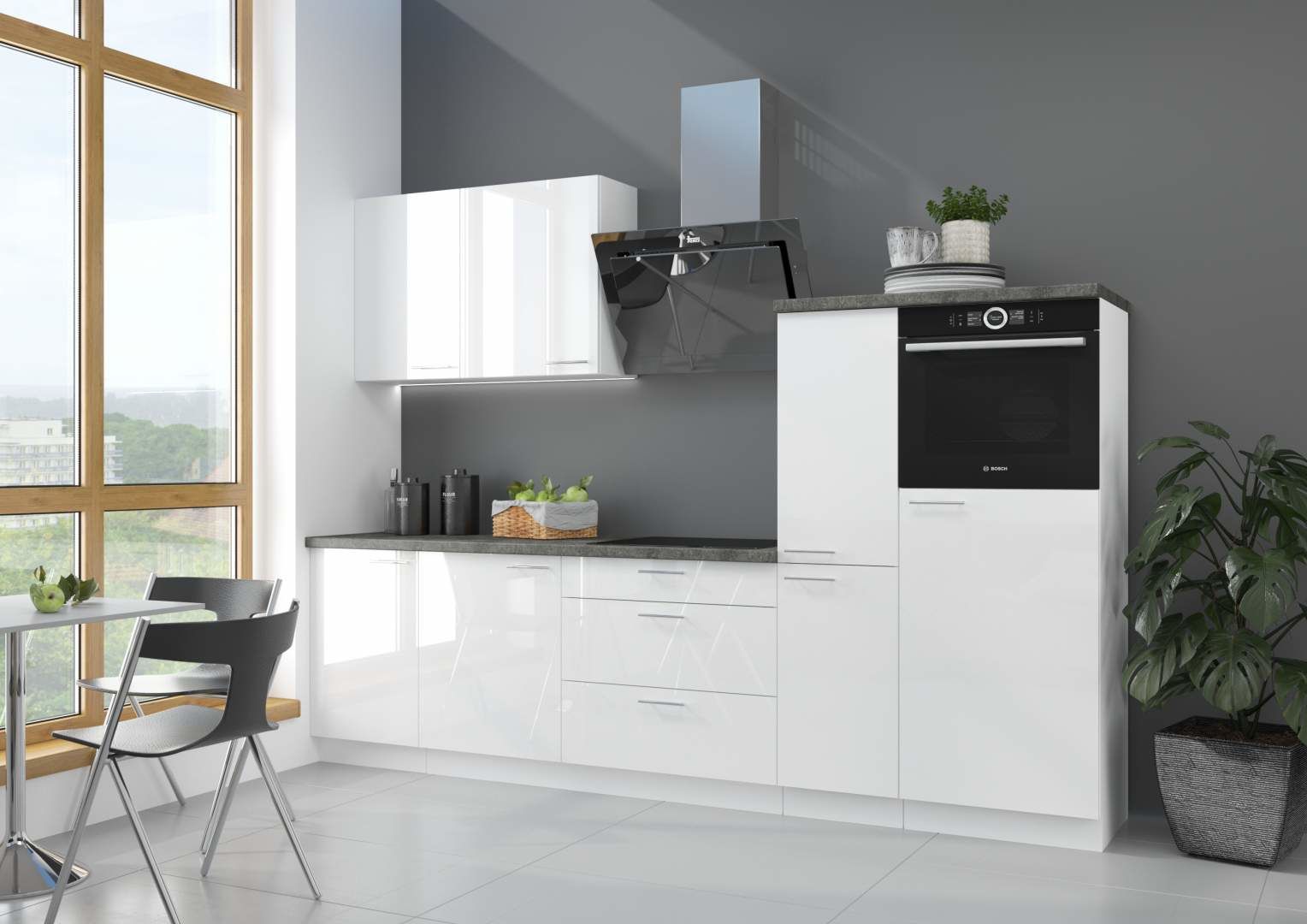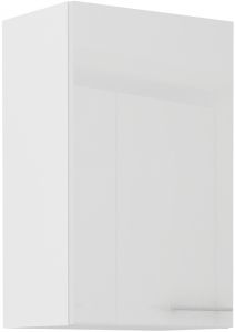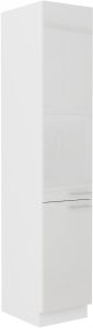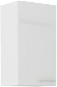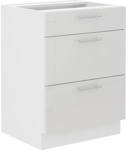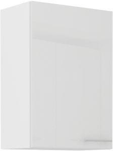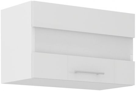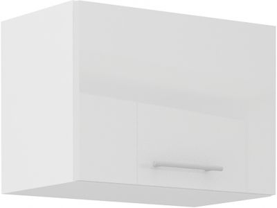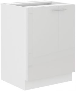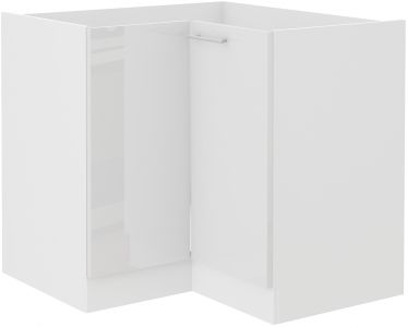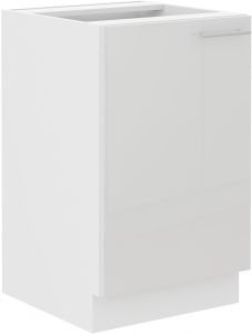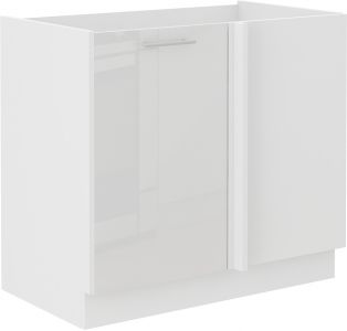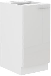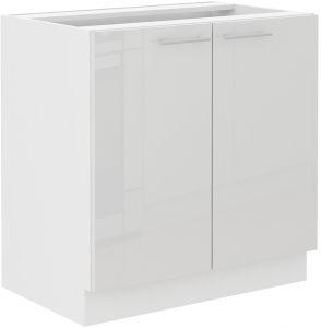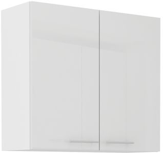 Kuchyňská linka LARA WHITE 1 ze systému LARA WHITE je vybavena dvířky s širokými kovovými úchyty. Dvířka skříněk jsou vyrobeny v bílém lesklém provedení v kombinaci s bílým korpusem.