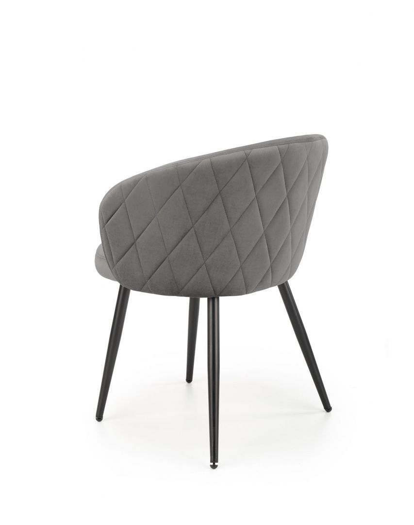 Jídelní židle K430 - je pohodlná jídelní židle vyrobena z lakované oceli, čalouněná kvalitní sametovou látkou ve žlutém, modrém, zeleném, šedém, béžovém a černém barevném provedení. Kovová lakovaná podnož je v černém provedení.