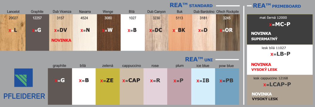 Kuchyňská sestava REA ALFA je složena z těchto jednotlivých dílů: