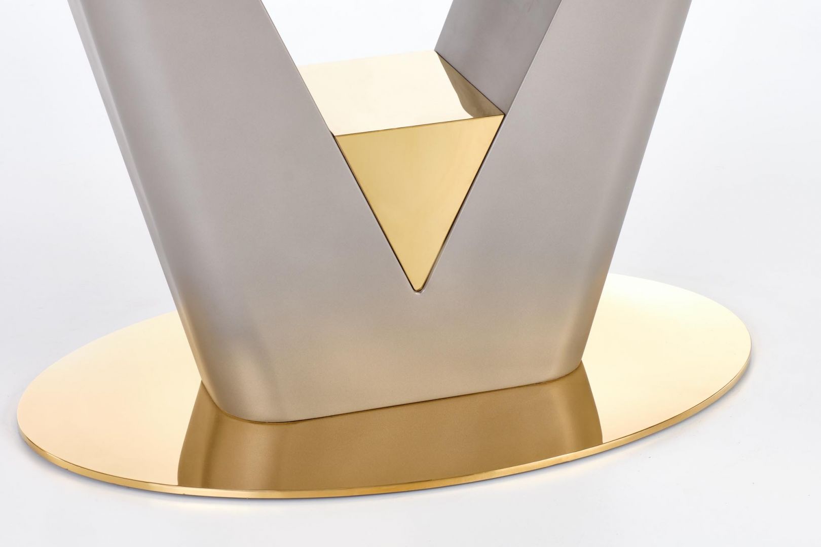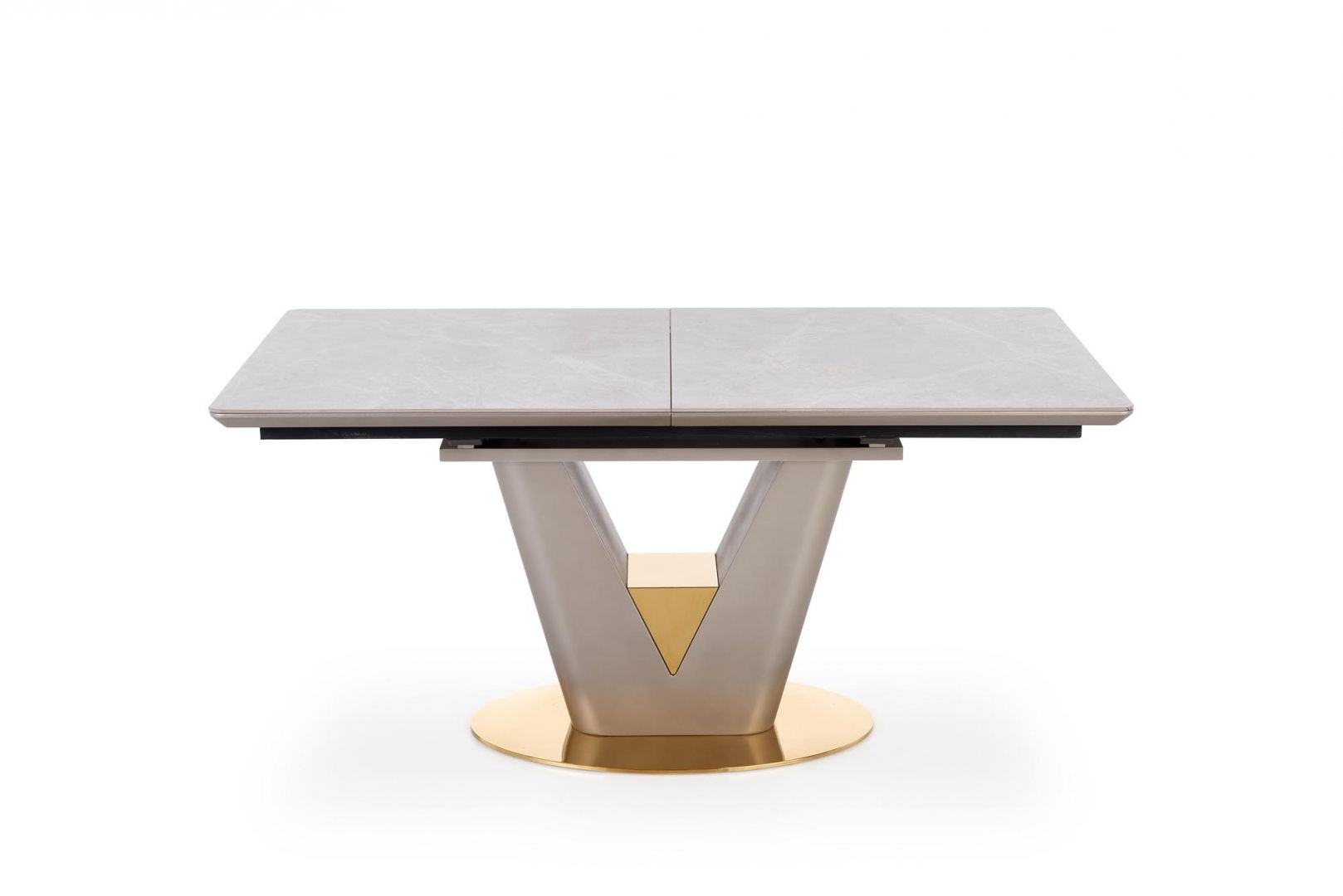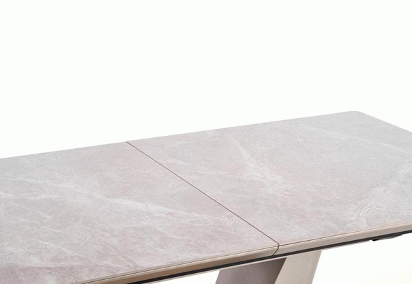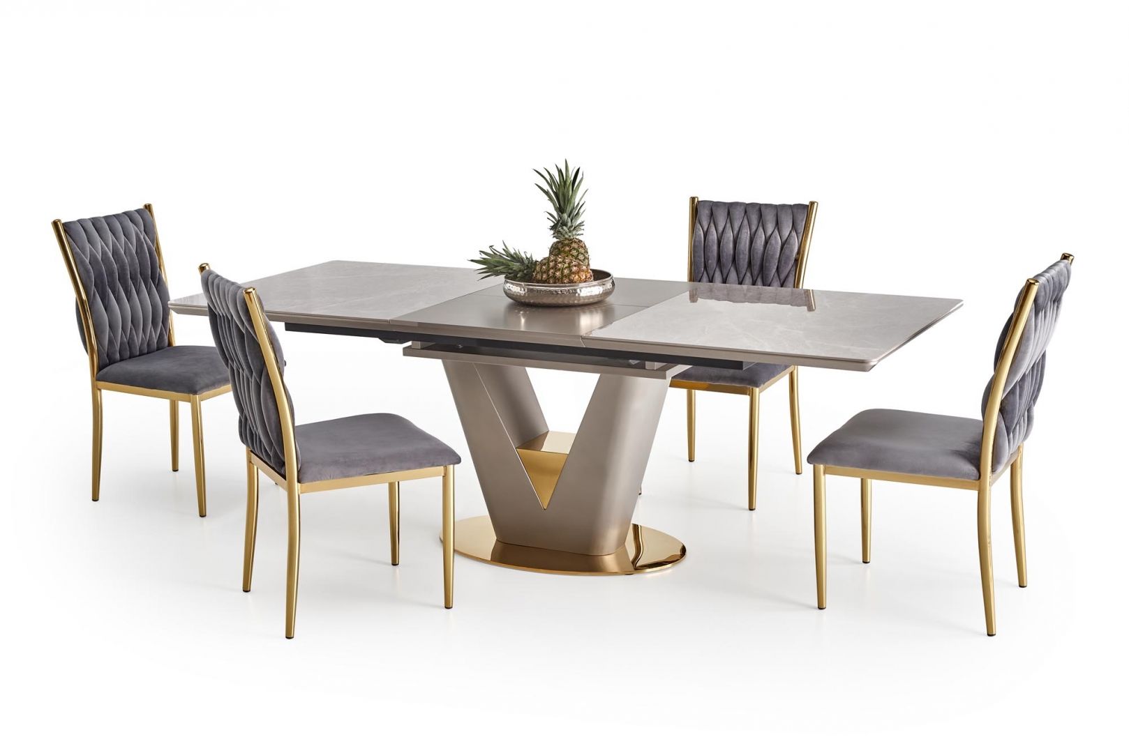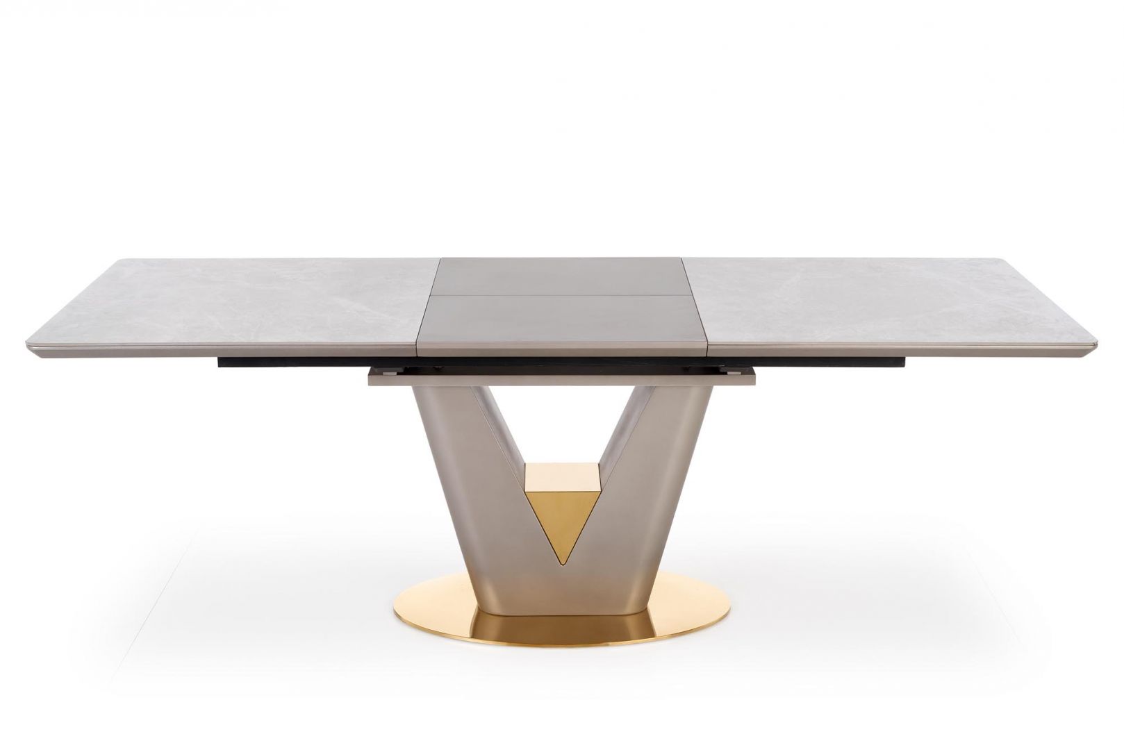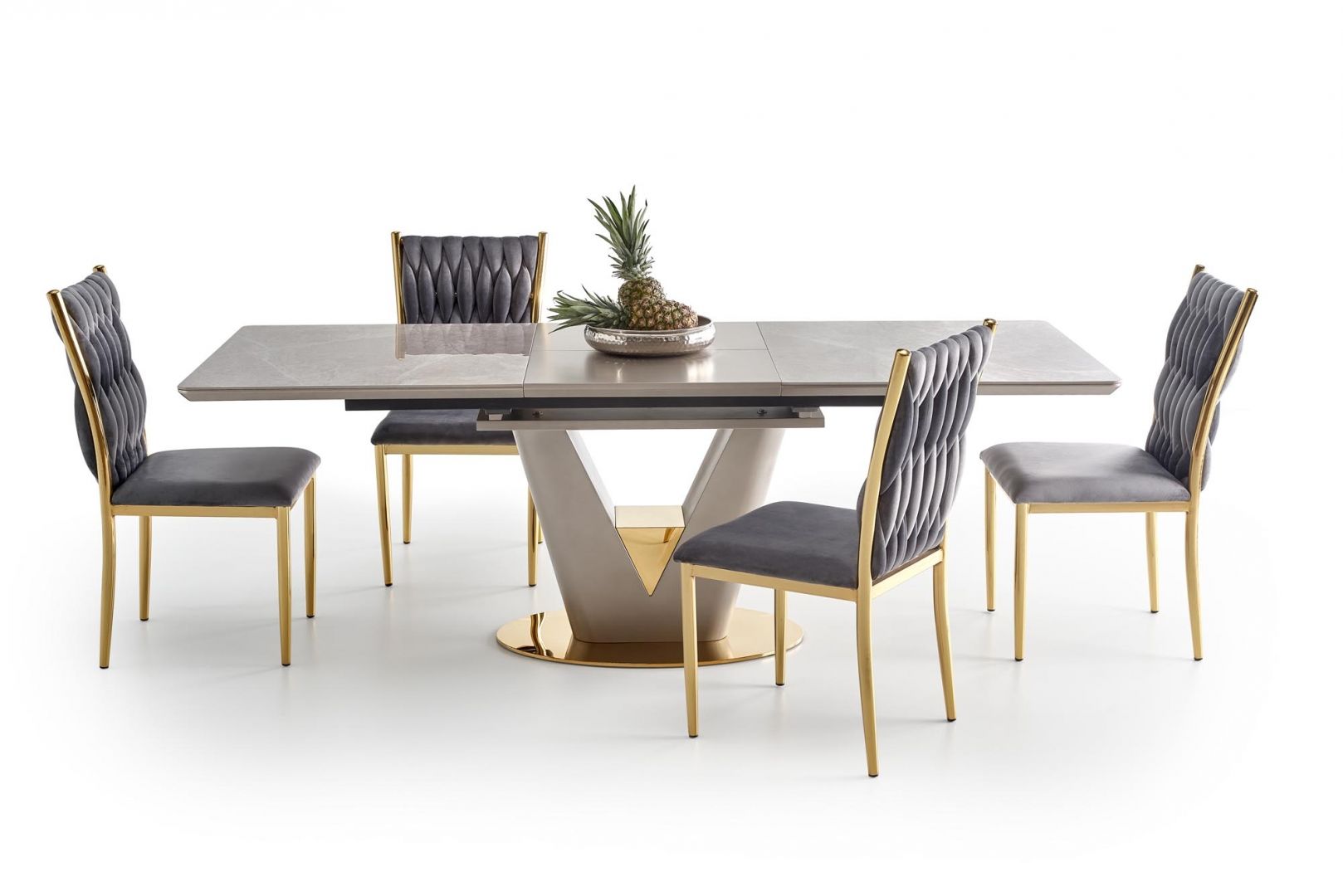 Jídelní stůl VALENTINO - je moderní rozkládací jídelní stůl vyroben v kombinaci keramické MDF desky a chromovaná ocel podnože. Tento designový kousek se skvěle hodí do moderní jídelny.