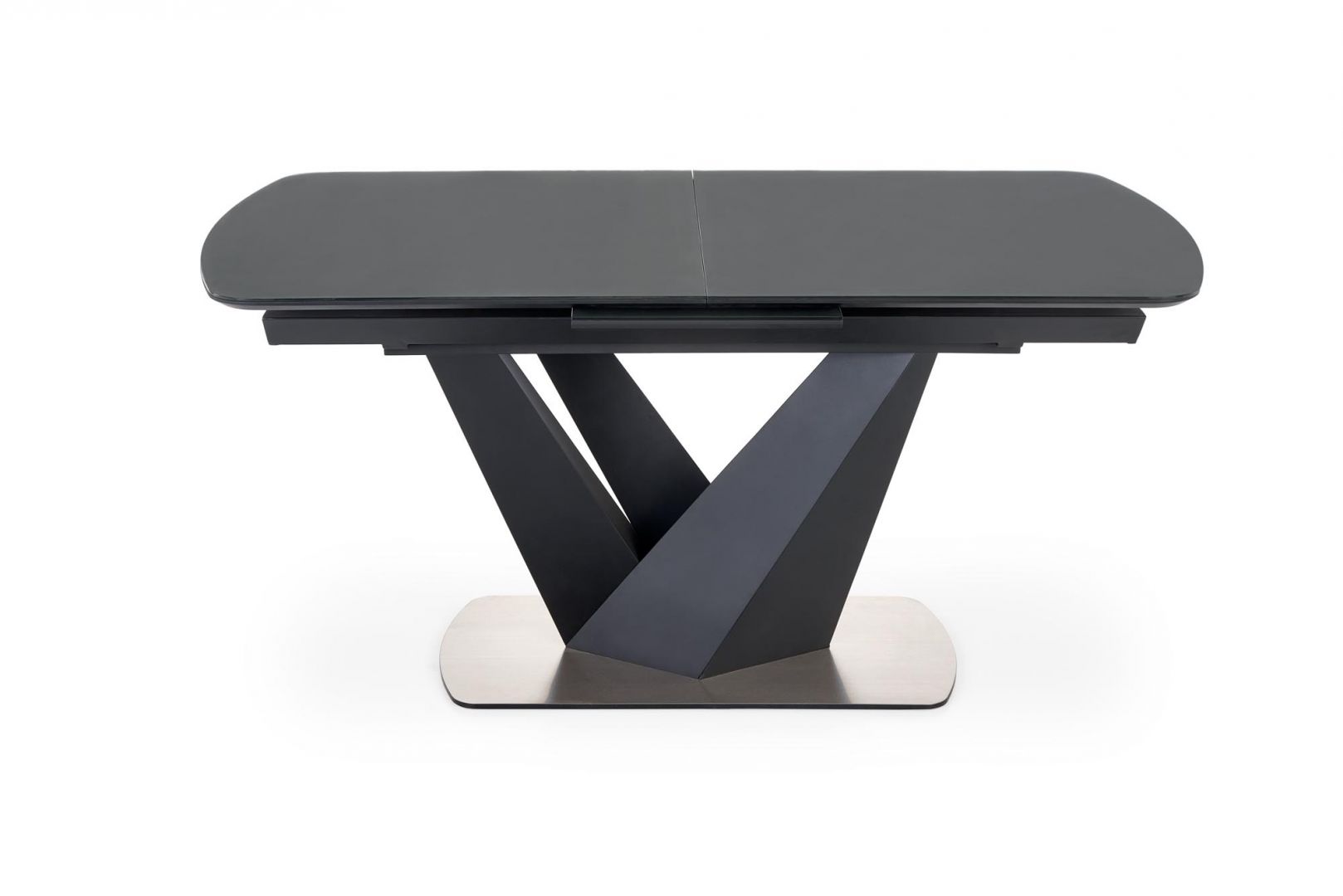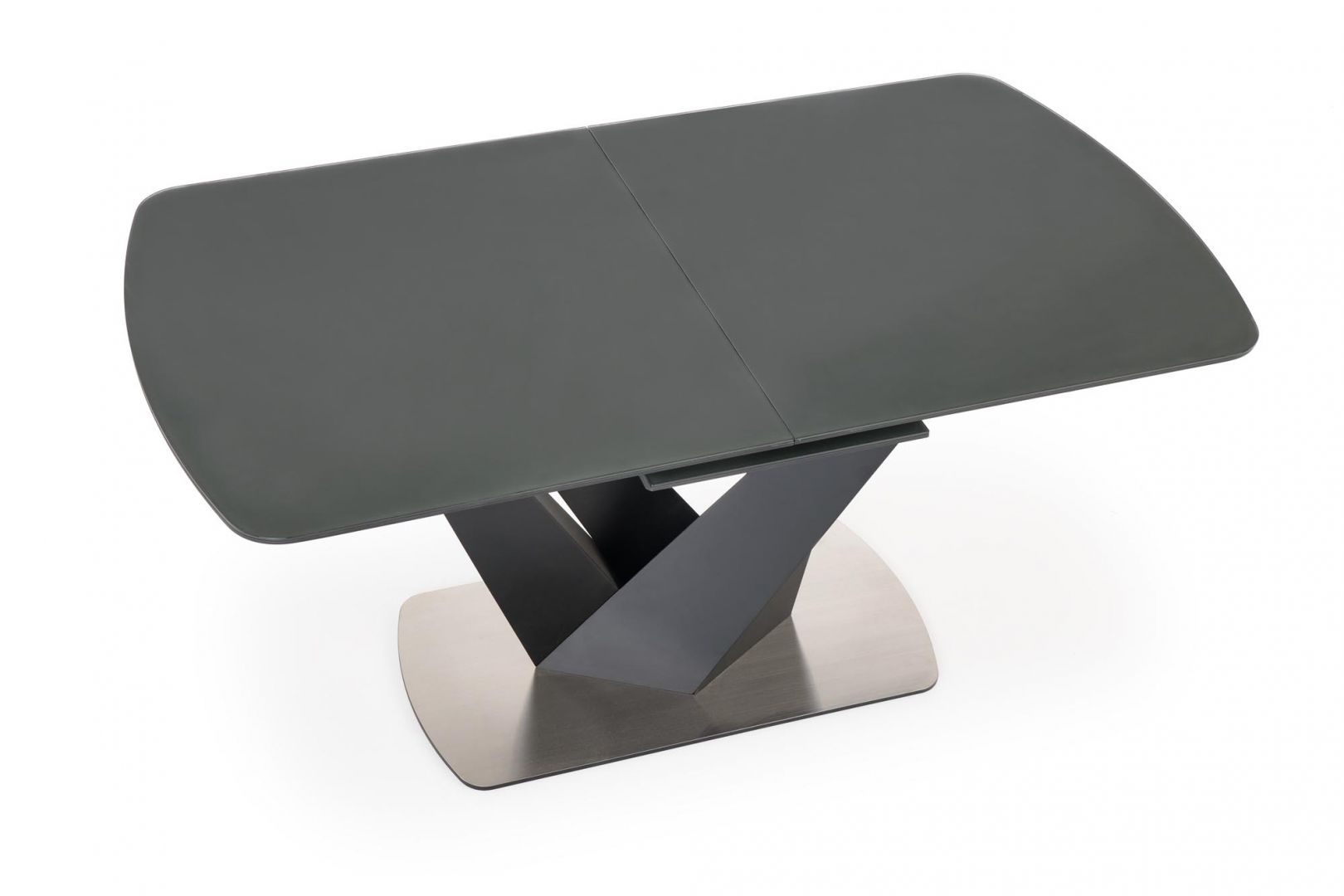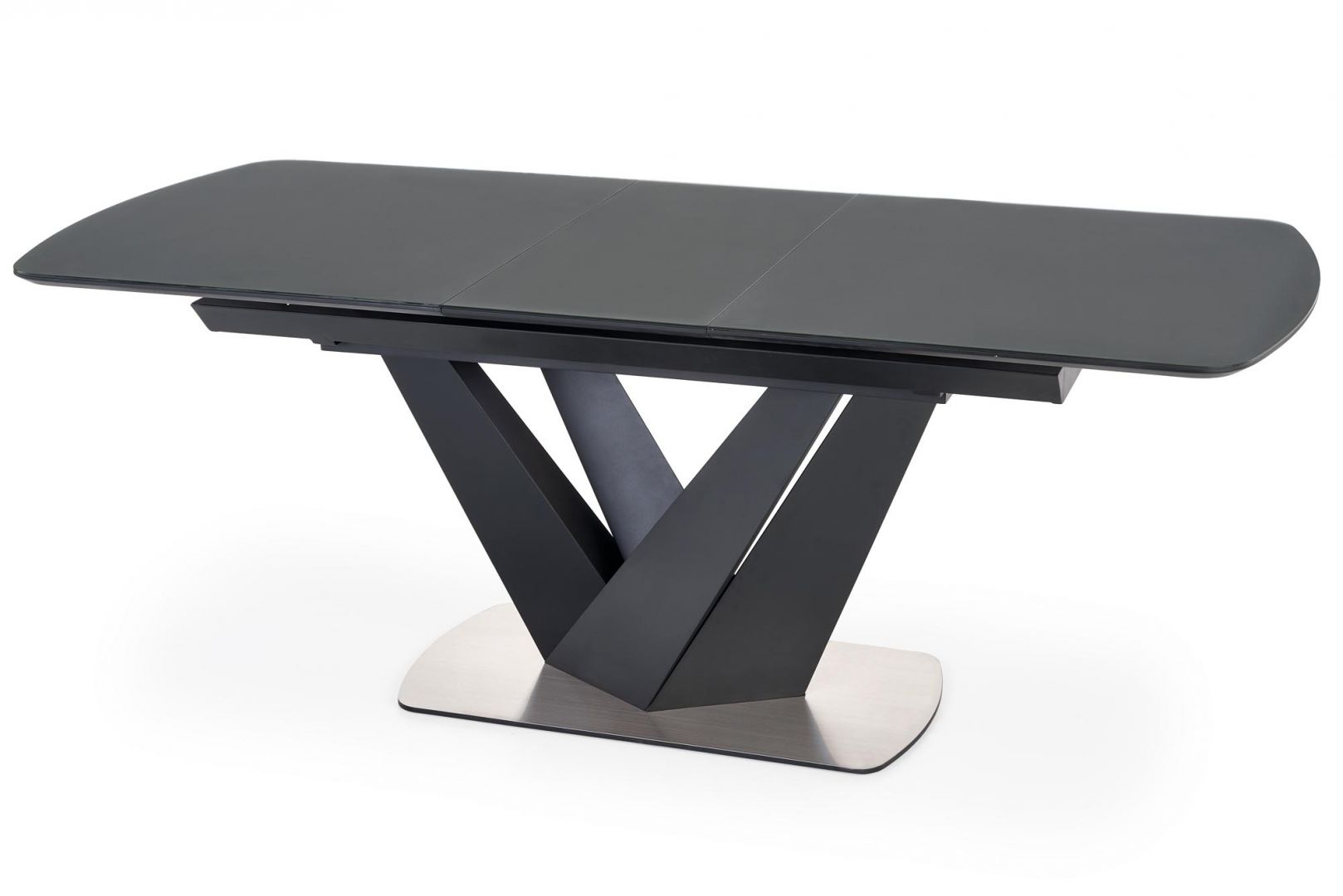 Jídelní stůl PATRIZIO - je moderní rozkládací jídelní stůl vyrobený ze skleněné desky v barvě tmavě šedé a designové podnože z černé nerezové oceli. Stůl je rozkládací a je vhodný do moderní jídelny.