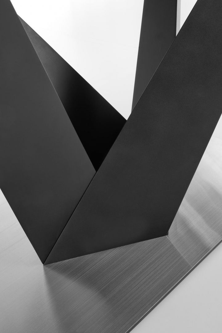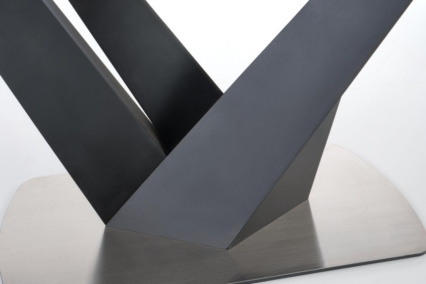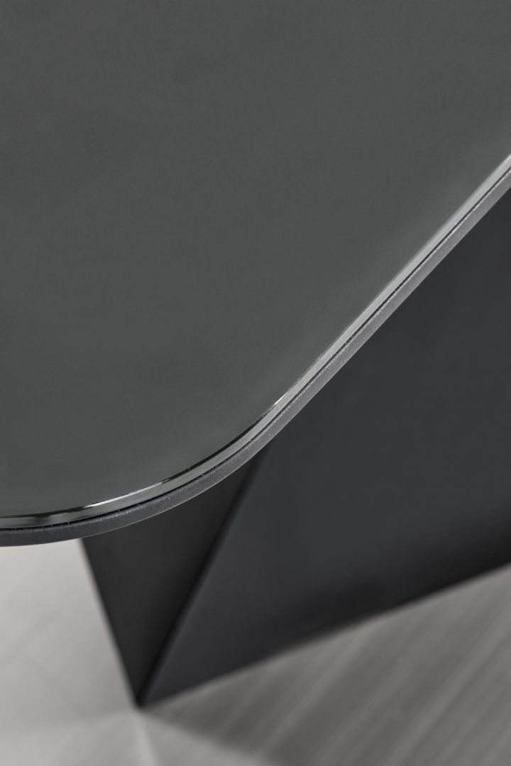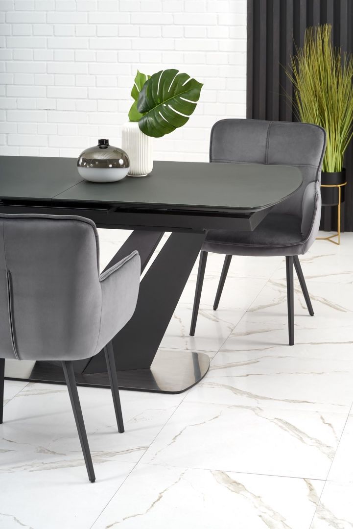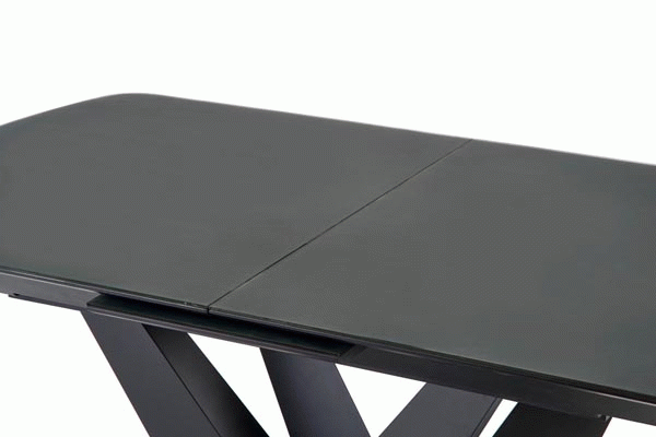 Jídelní stůl PATRIZIO - je moderní rozkládací jídelní stůl vyrobený ze skleněné desky v barvě tmavě šedé a designové podnože z černé nerezové oceli. Stůl je rozkládací a je vhodný do moderní jídelny.