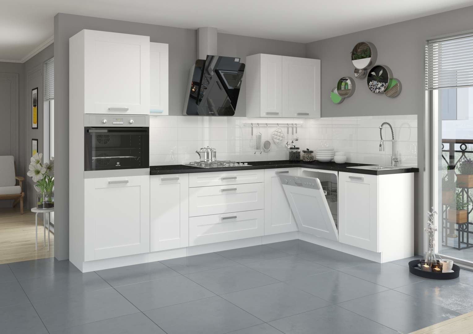 Spodní rohová skříňka ze systému LUNNA BÍLÁ - rohová skříňka do kuchyňské linky je uzavíratelná praktickými dvířky se širokým kovovým úchytem. Dvířka skříněk jsou vyrobeny v bílém matném provedení v kombinaci s bílým korpusem. Skříňka je univerzální (levá/pravá)