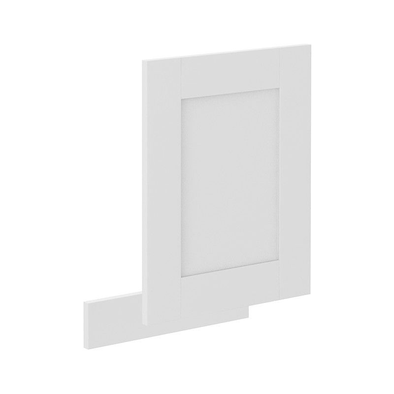 Dvířka na vestavnou myčku do kuchyně ze sektorového systému LUNNA BÍLÁ o rozměru 57 x 44,6 x 1,6 cm. Dvířka jsou vyrobena v kombinaci lamina a MDF.