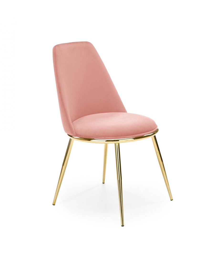 Jídelní židle K460 - je elegantní židle vyrobena v kombinaci zlaté lakované oceli a pohodlného čalouněného sedáku a opěráku v šedé, béžové, černé a růžové potahové látce.