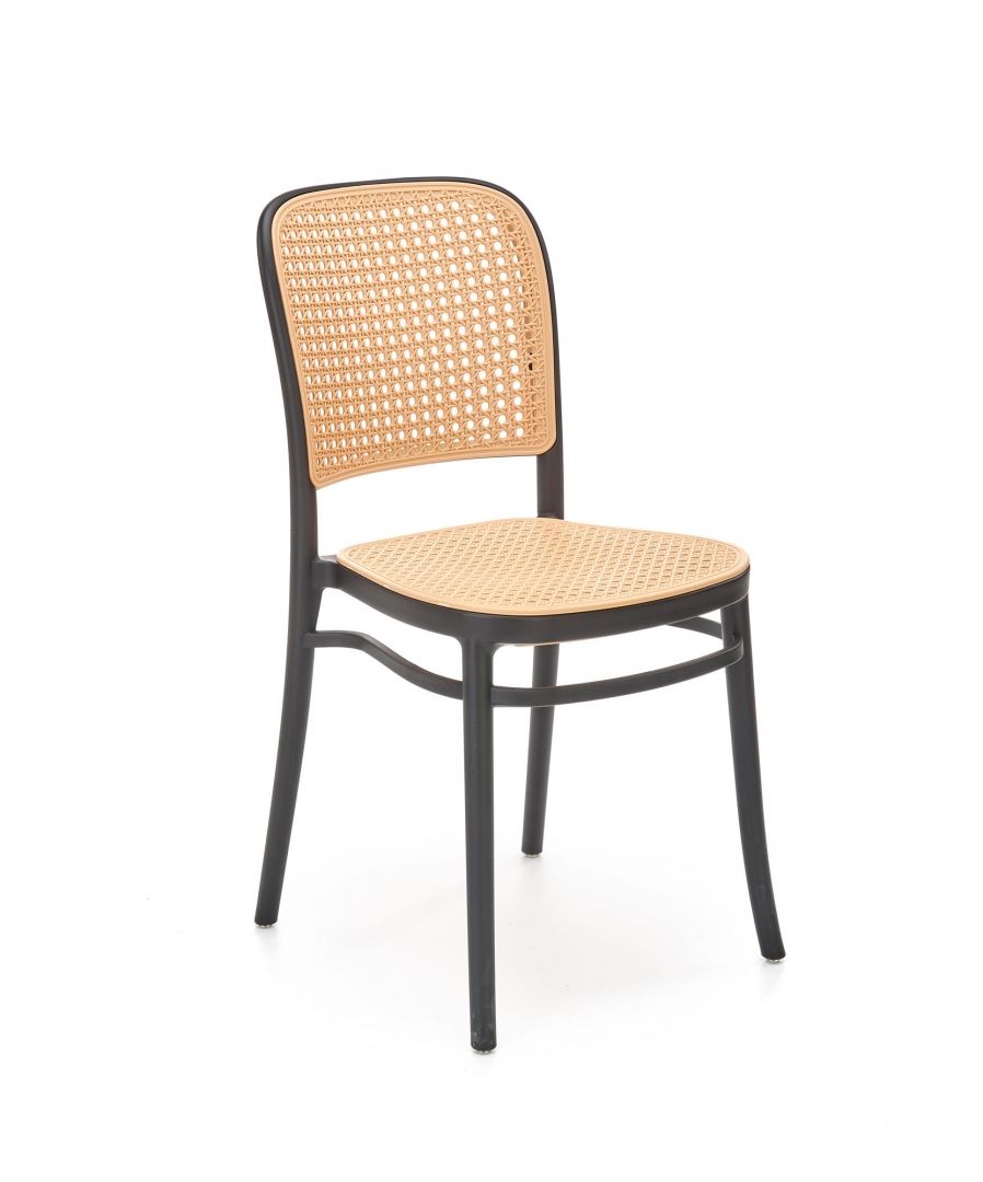 Jídelní židle K483 - je elegantní židle vyrobena z polipropylenu v černé barvě a pohodlného sedáku v přírodní barvě.